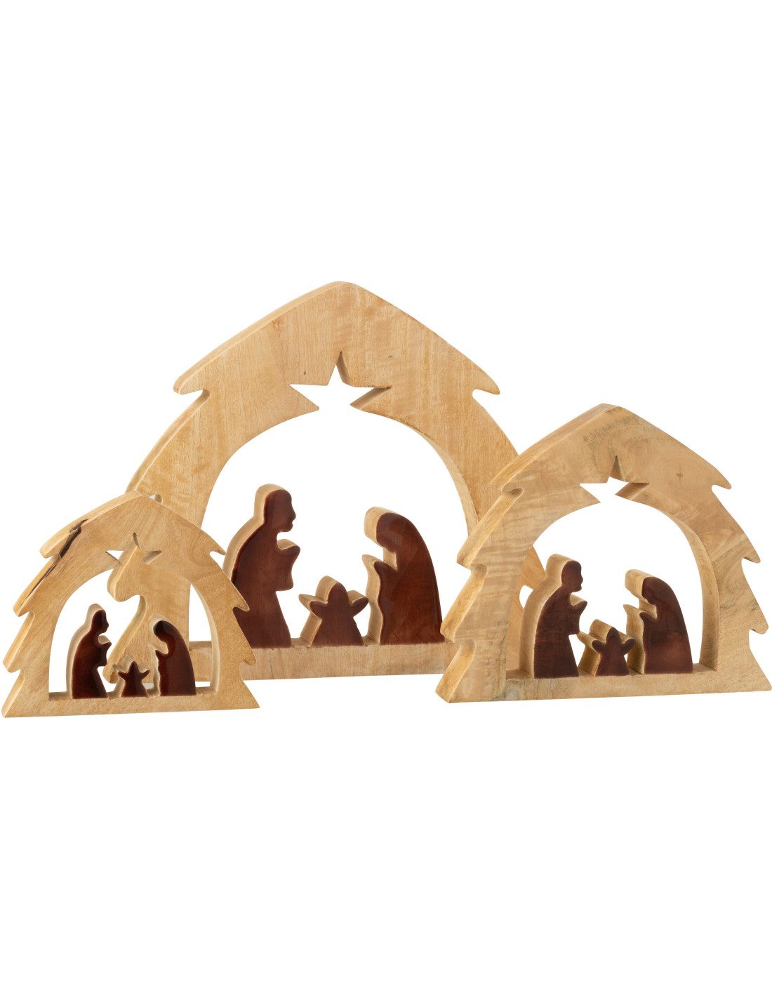 Grande Crèche de Noël minimaliste Hauteur 37 cm en Bois de manguier Naturel Marron foncé Divinia
