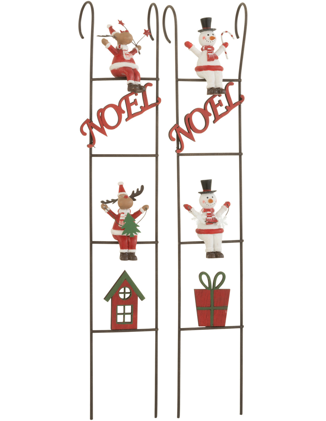 Grande Déco de Noël Échelles Hauteur 42 cm en Métal Marron Résine Morenys (Lot de 2)