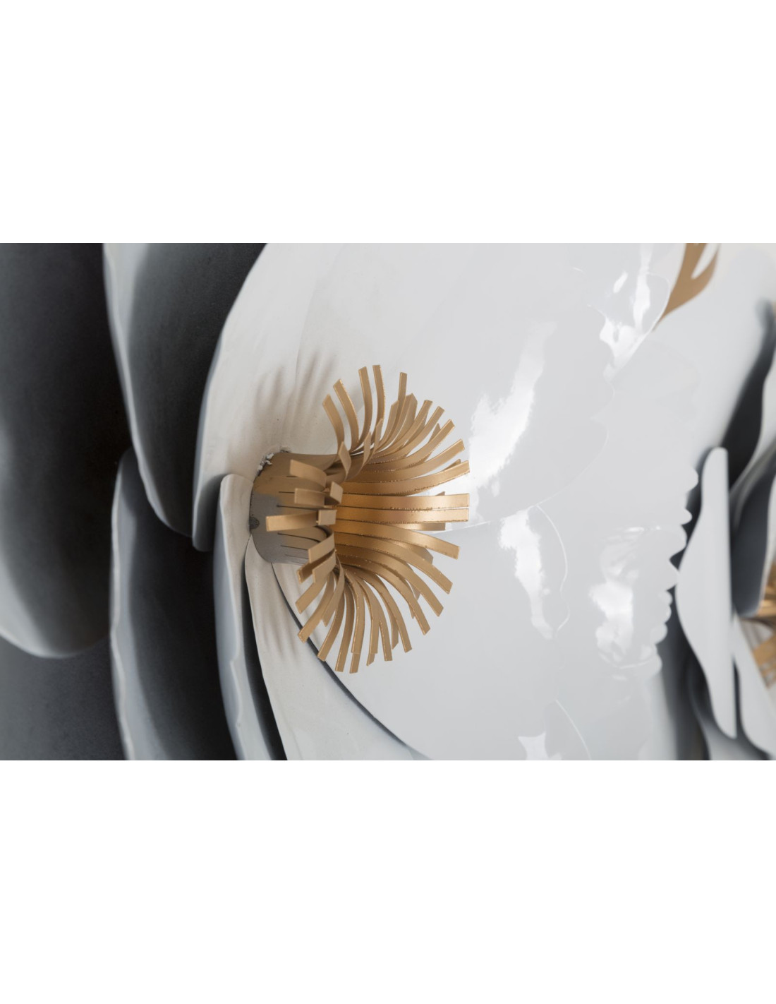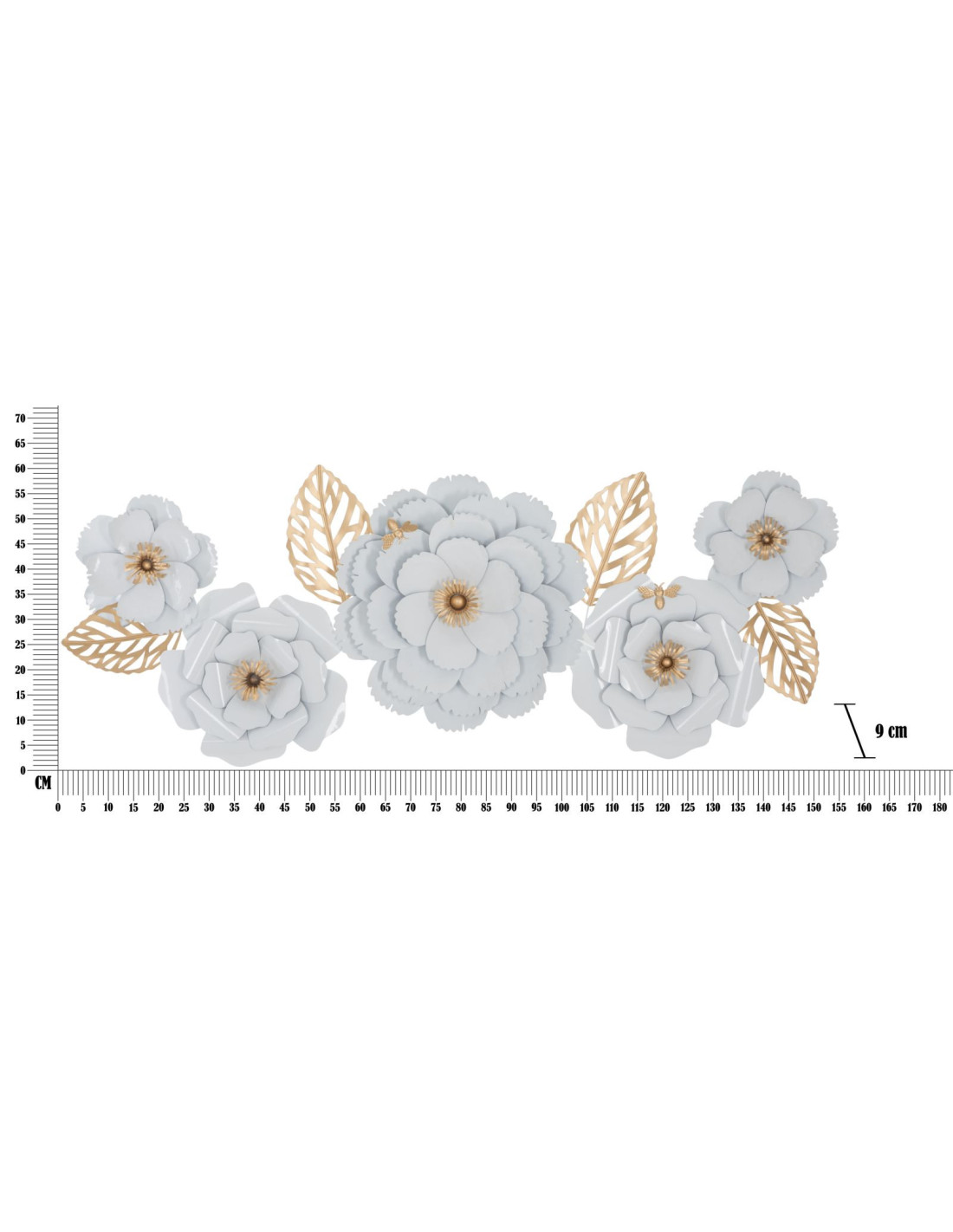 Grande Déco murale Bohème Fleurs et Feuilles 158x60 en Métal Blanc Doré Rolen