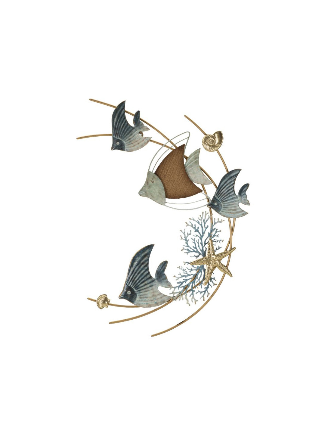 Grande déco murale bord de mer Poissons 61x77 en Métal Bois Dory