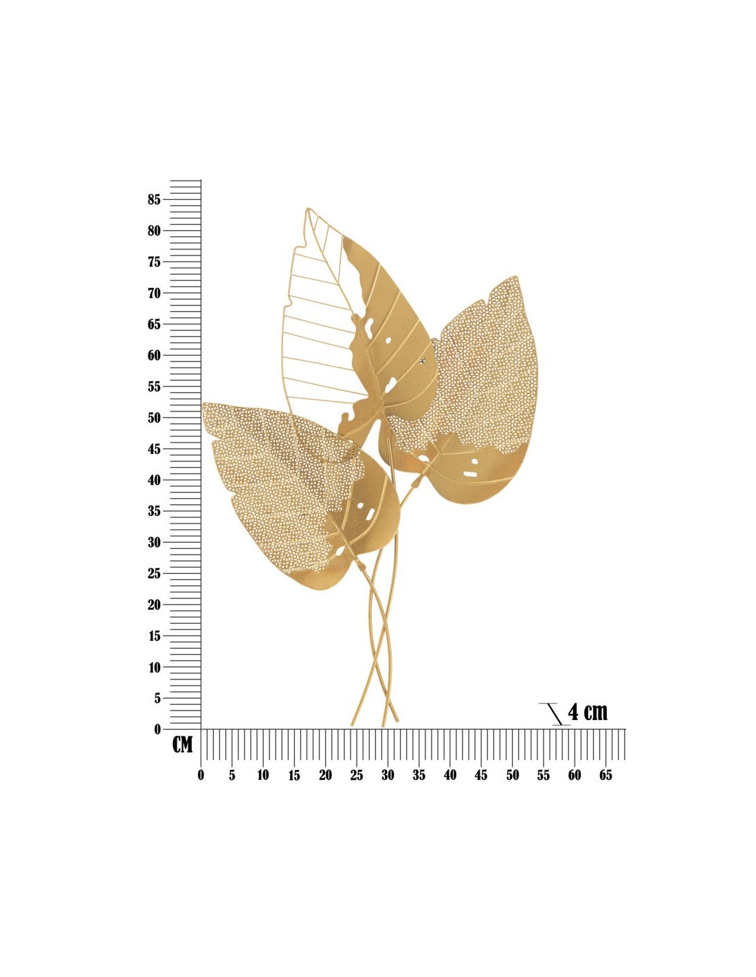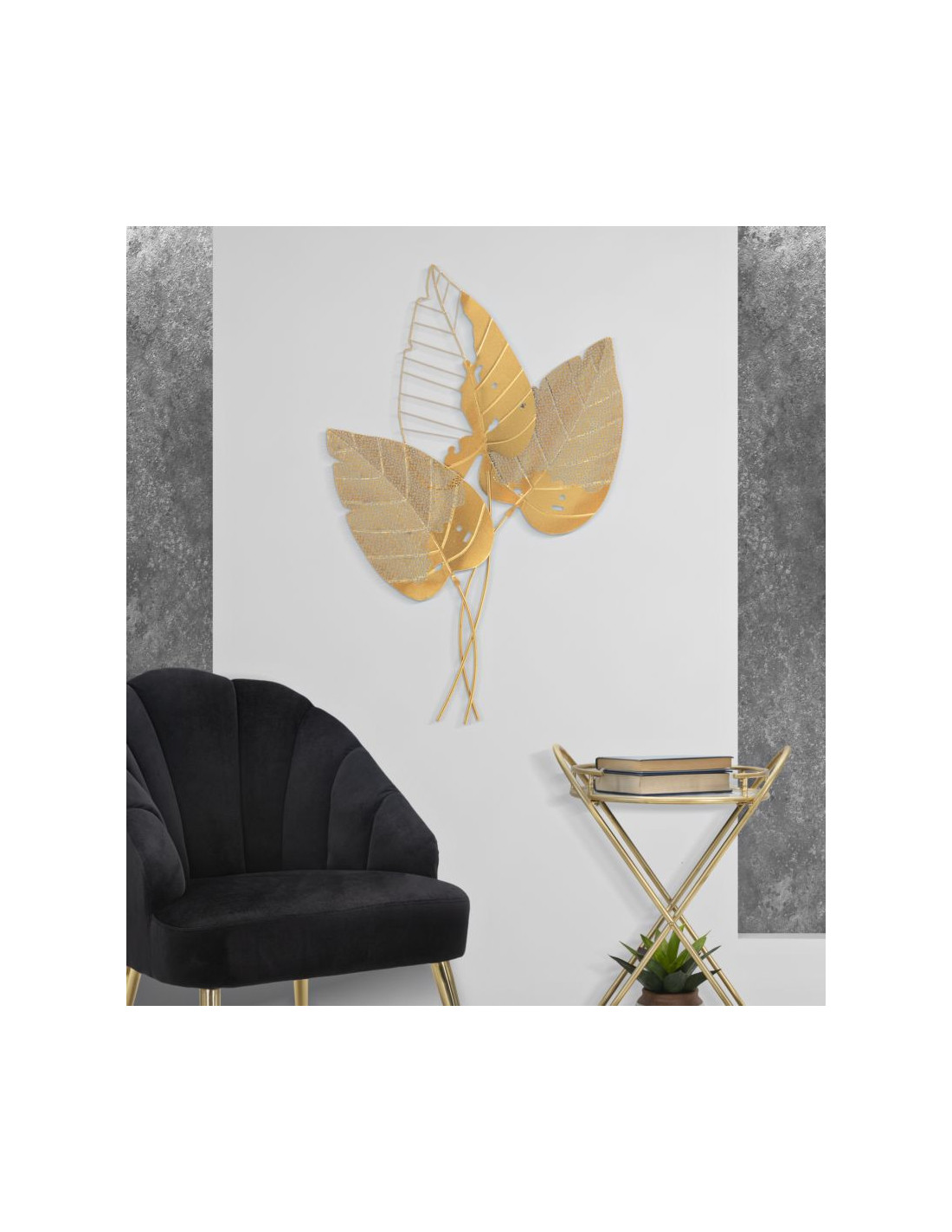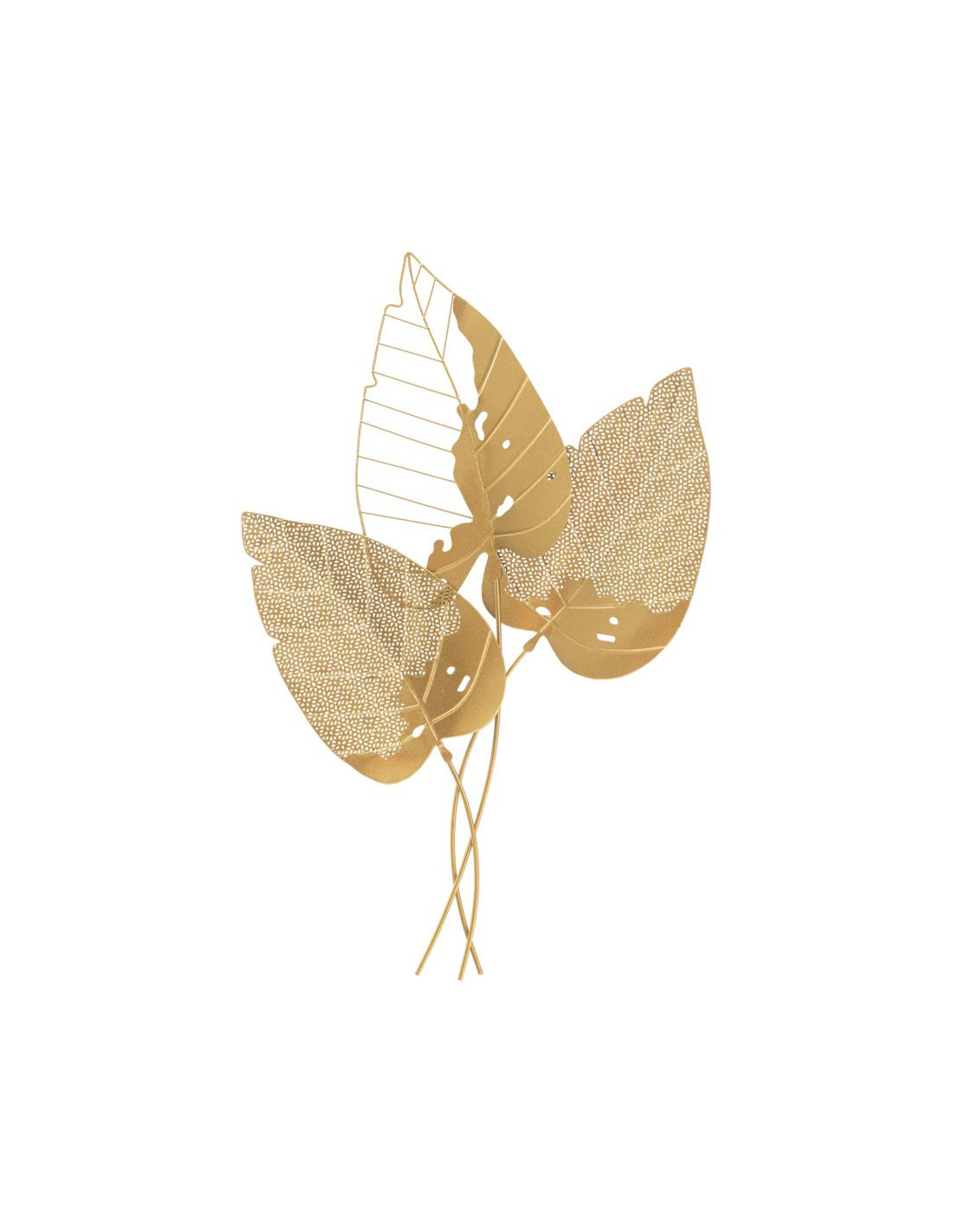 Grande Déco murale moderne 3 Feuilles 53x84 en Métal Doré Autumn