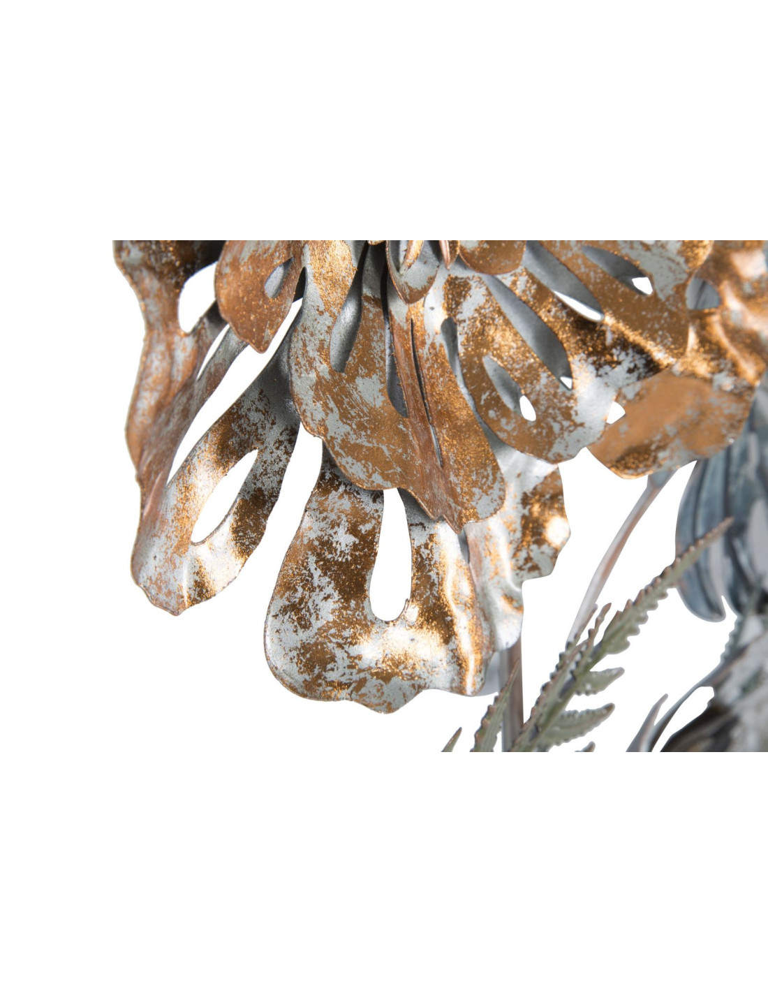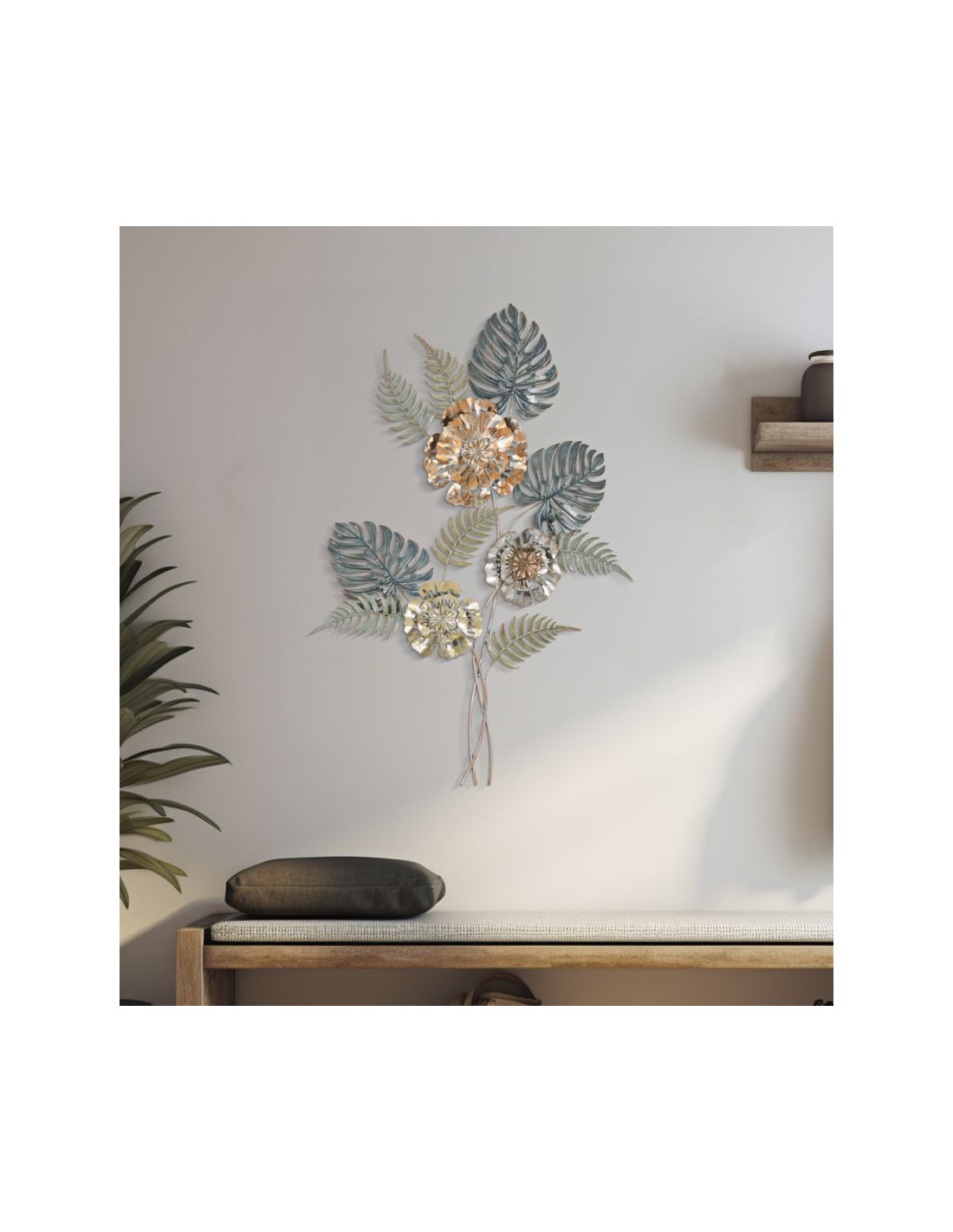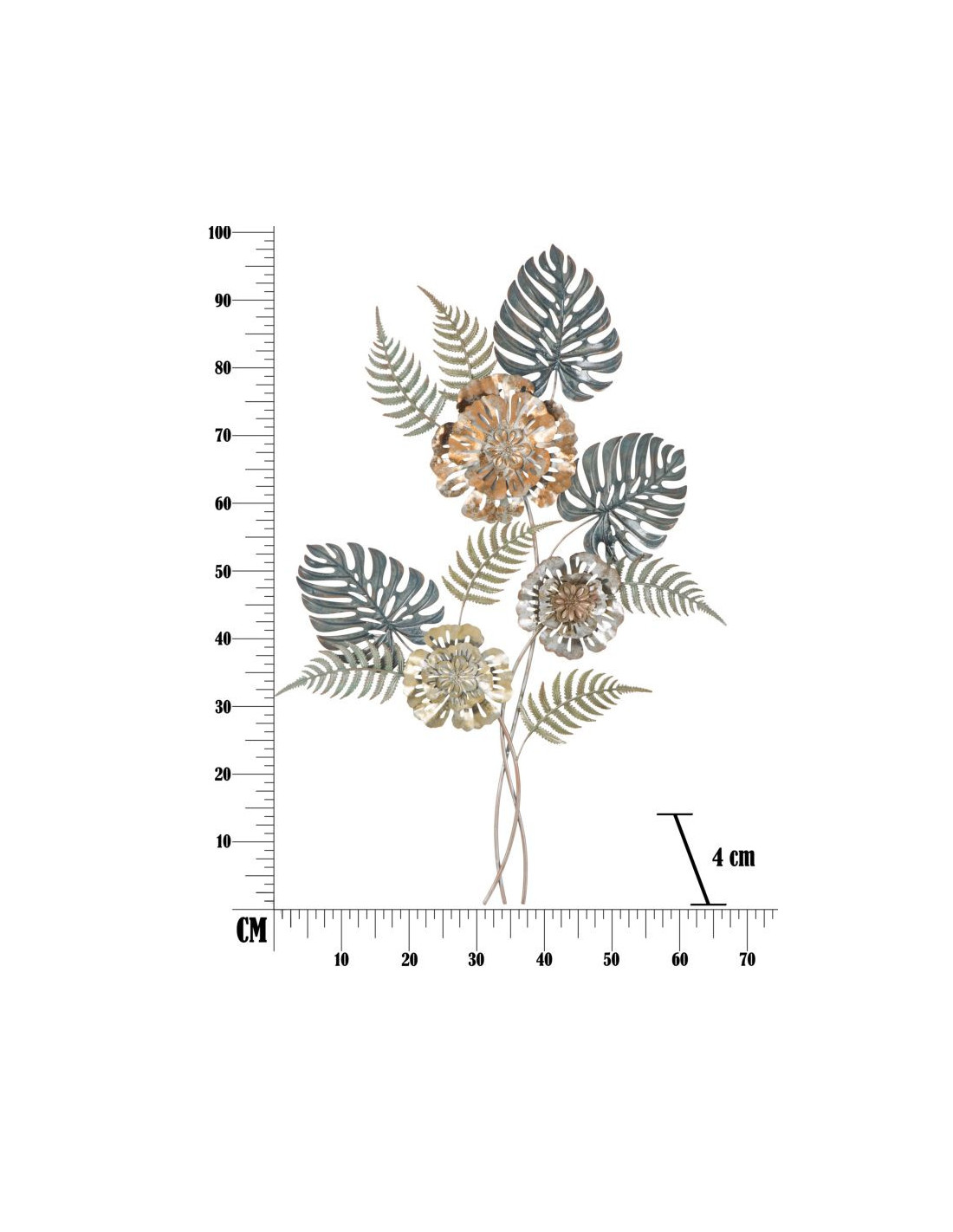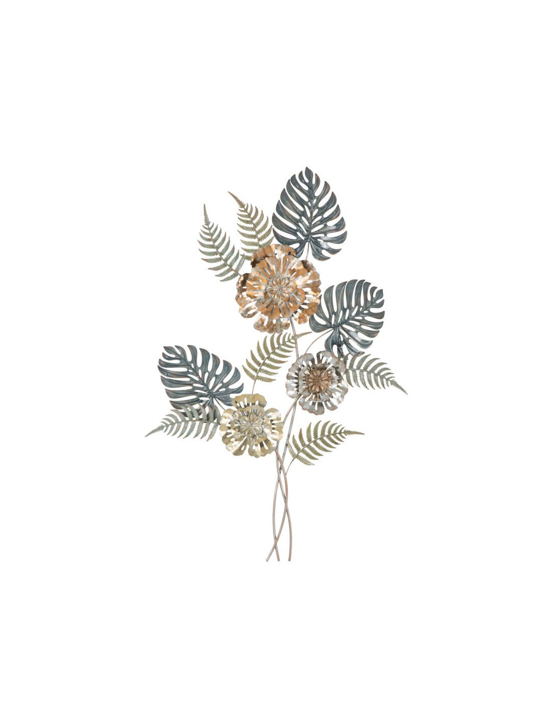 Grande Déco murale moderne Bouquet de fleurs 66x98 en Métal Doré Cuivré Bleu Nelya
