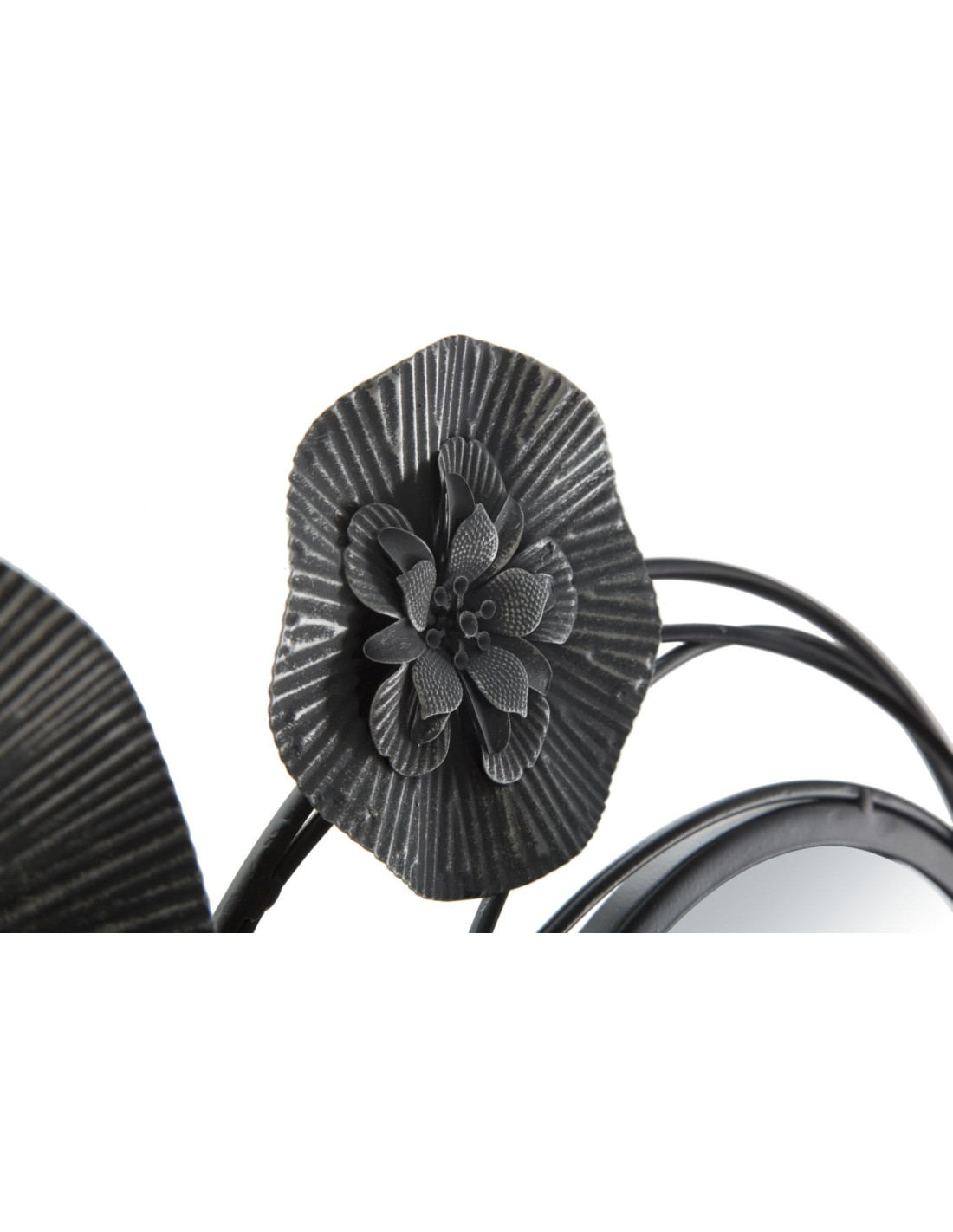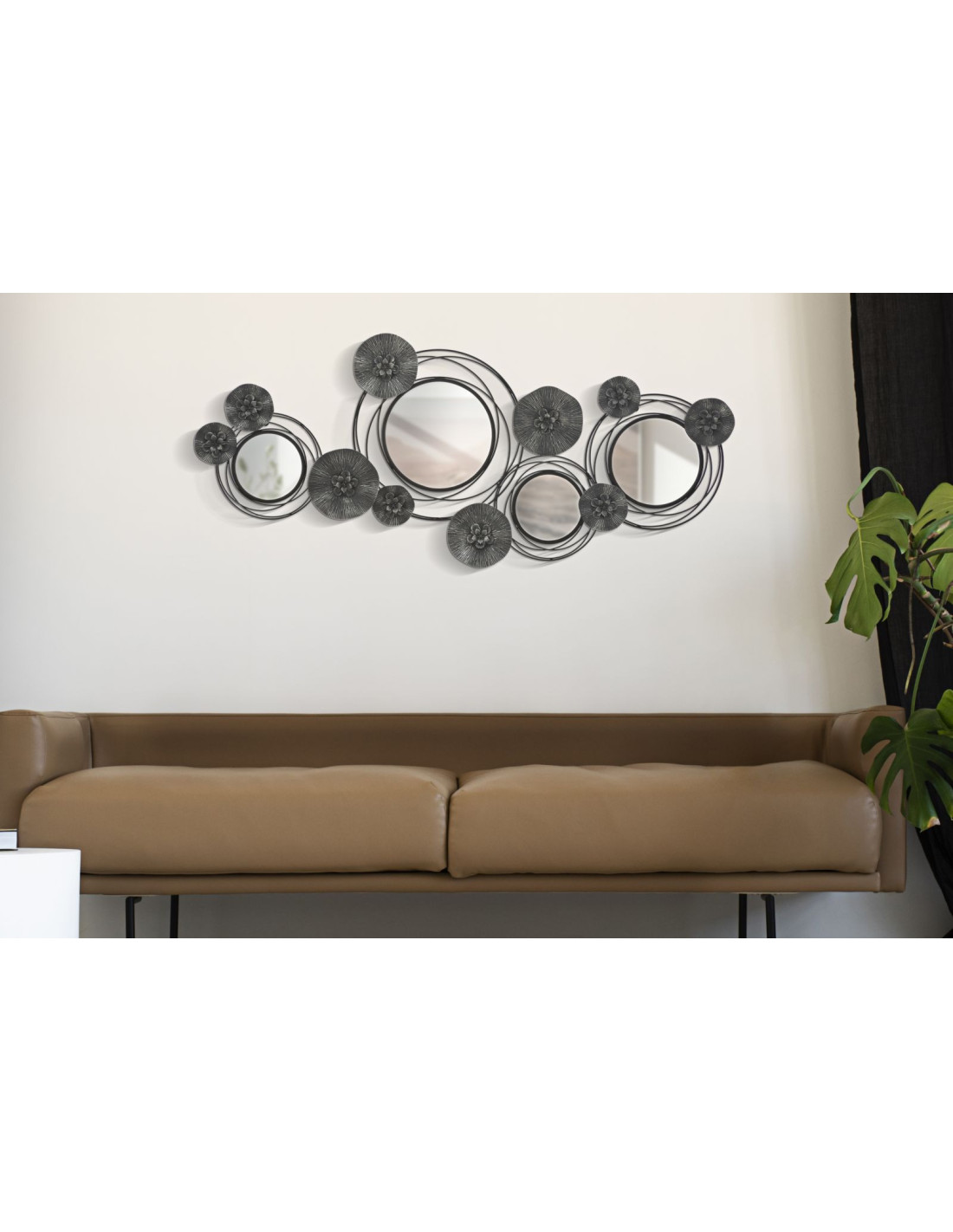 Grande déco murale moderne Cercles & Fleurs 117x49 en Métal Noir Gris Miroir Dark