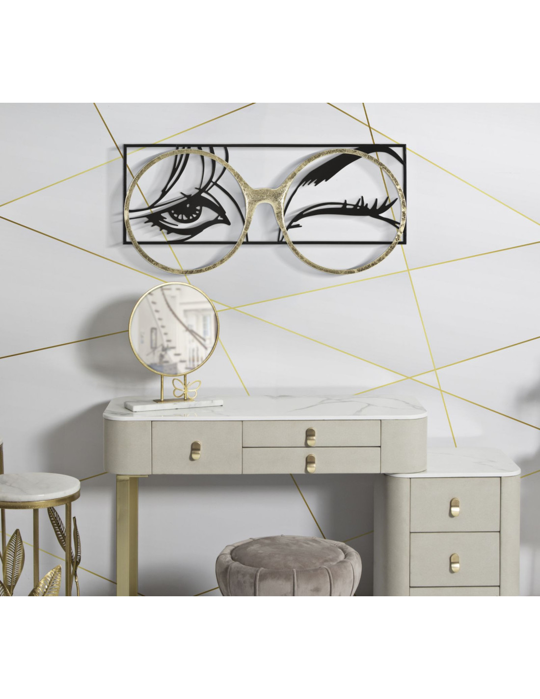 Grande déco murale moderne Clin d'oeil 89x41 en Métal Noir Doré Eyewear