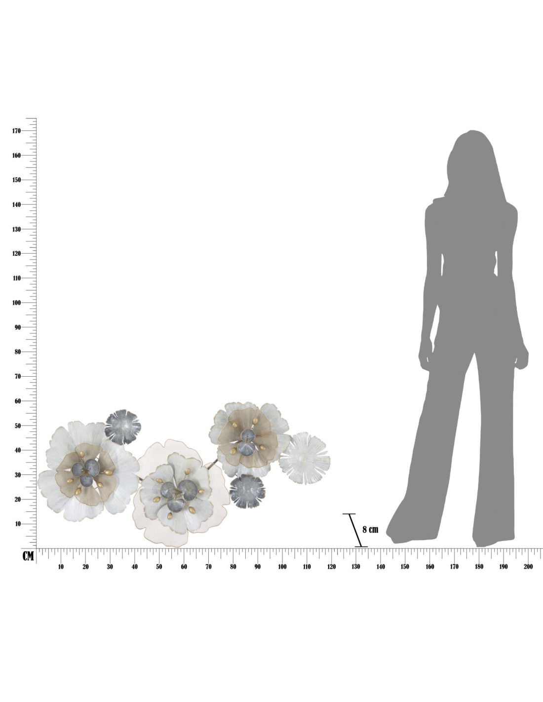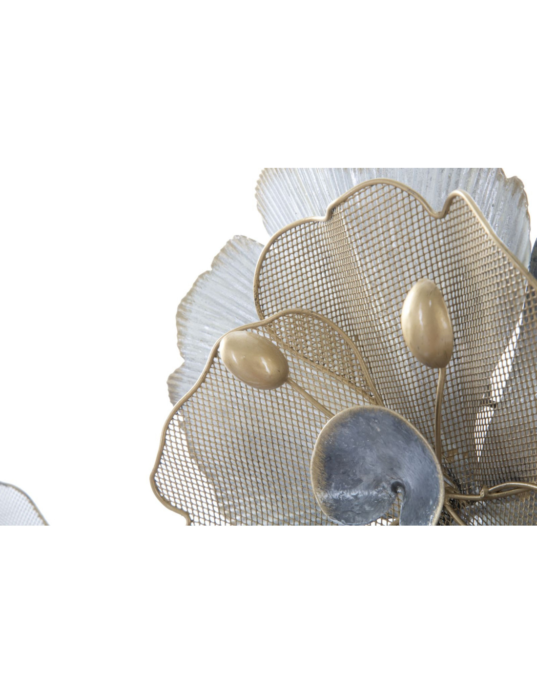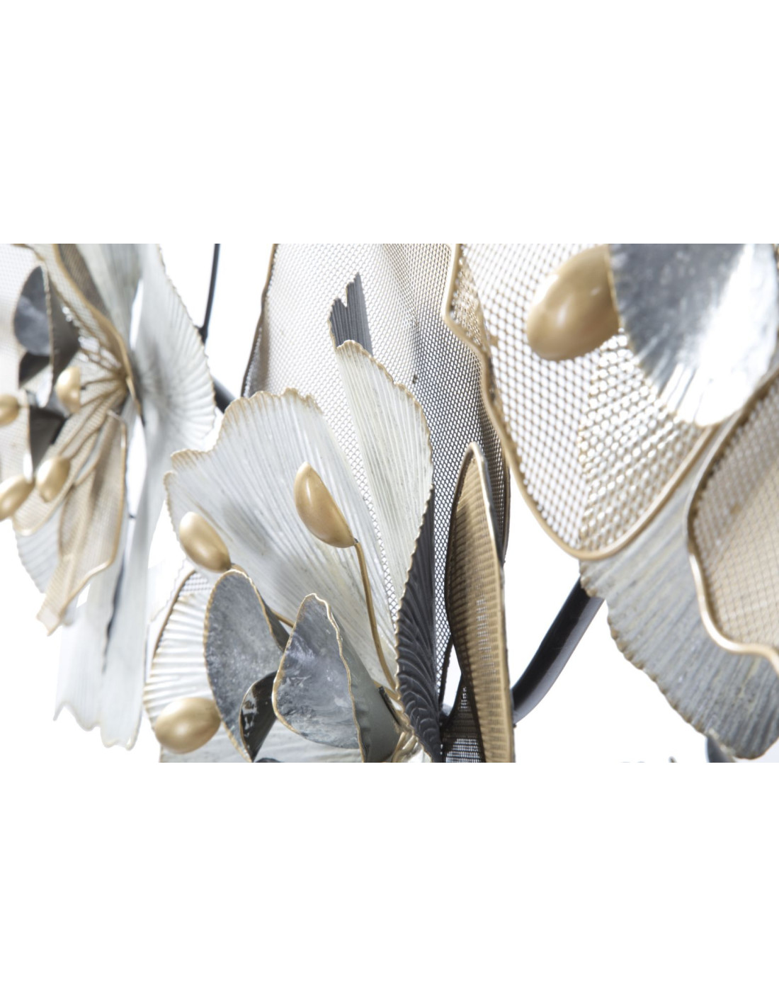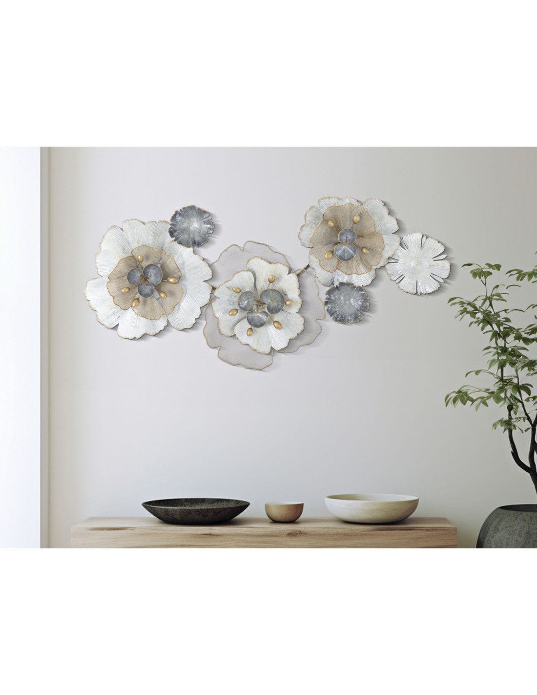Grande Déco murale moderne Fleurs 119x60 en Métal Argenté Doré Blanc Rorvin