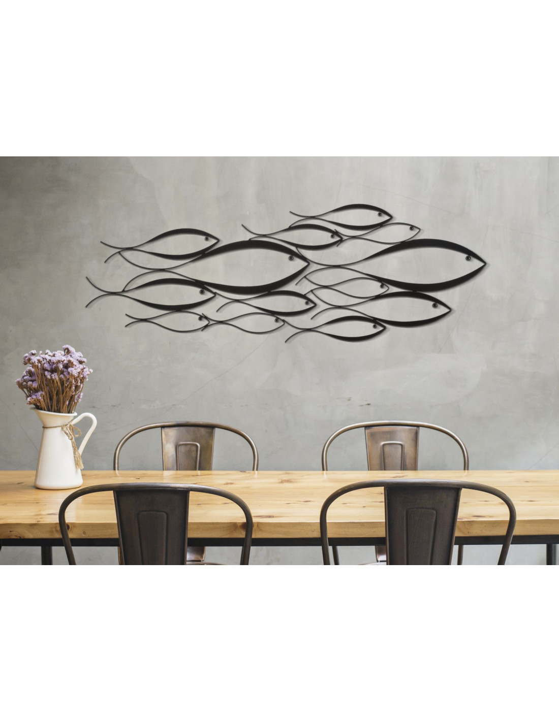 Grande Déco murale moderne Poisson 100x35 en Métal Noir Ceron