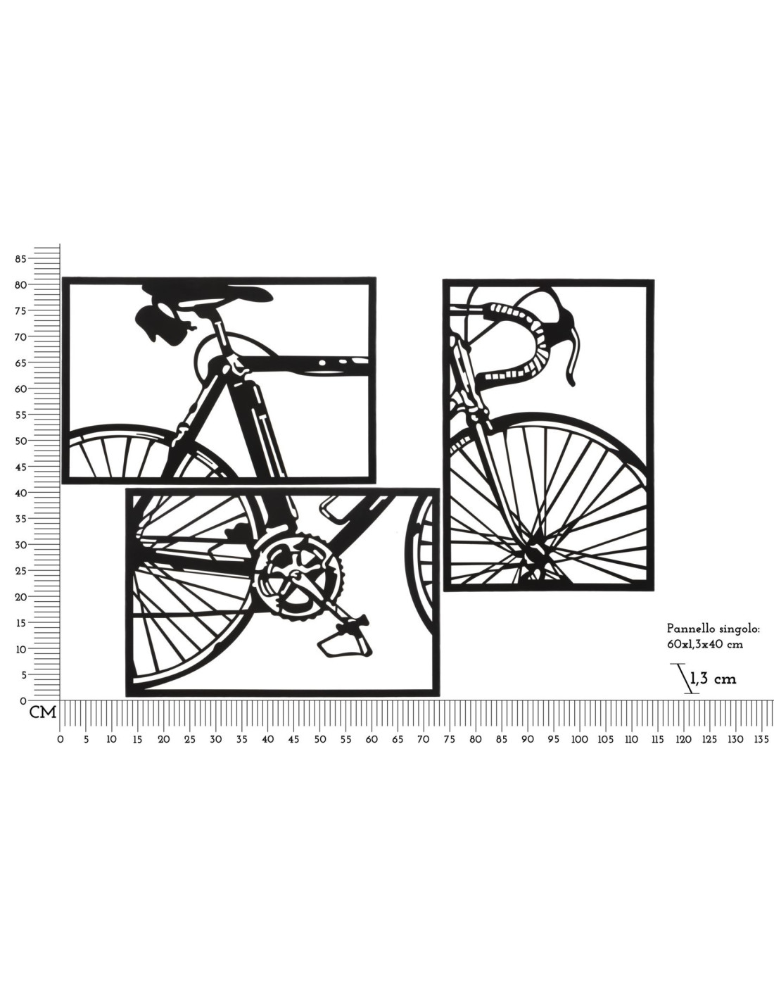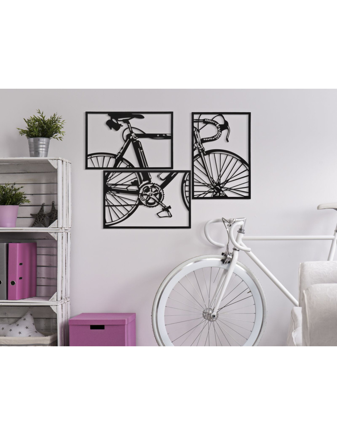 Grande Déco murale moderne triptyque Vélo 115x80 en Métal Noir Eryan