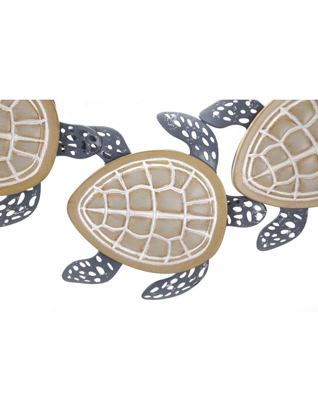 Grande Déco murale originale Tortues 111x43 en Métal Bleu Bois Naturel Nylia