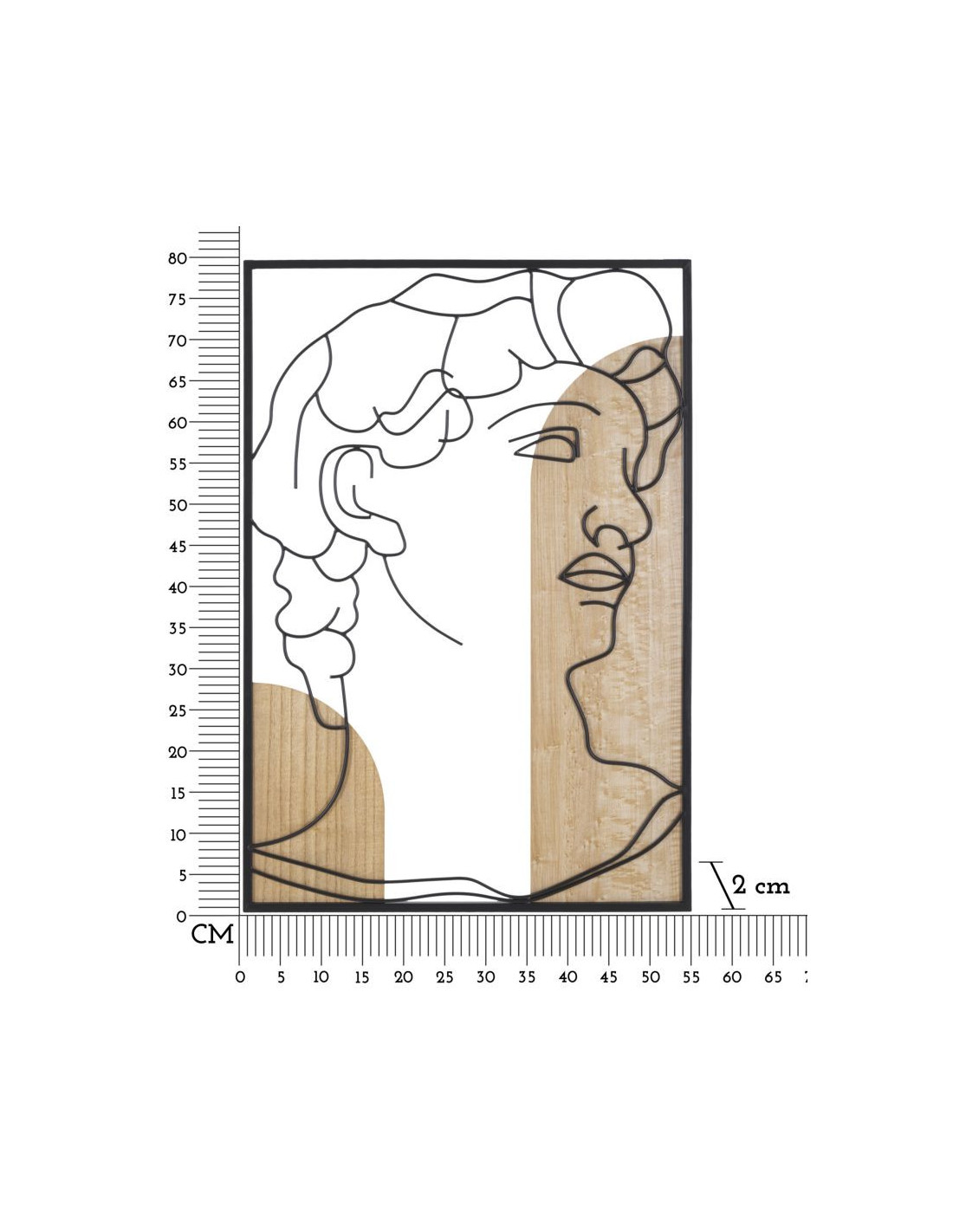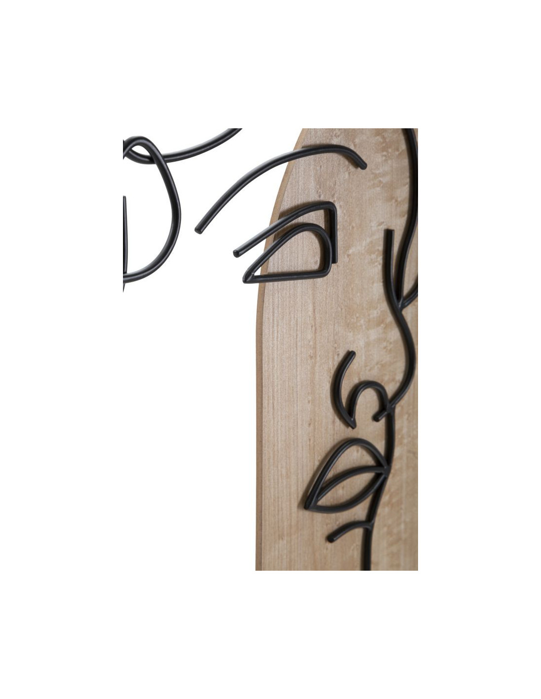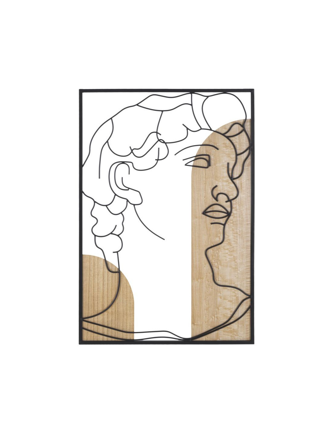 Grande Déco murale Visage antique 55x80 en Métal Noir Bois Naturel Sorla
