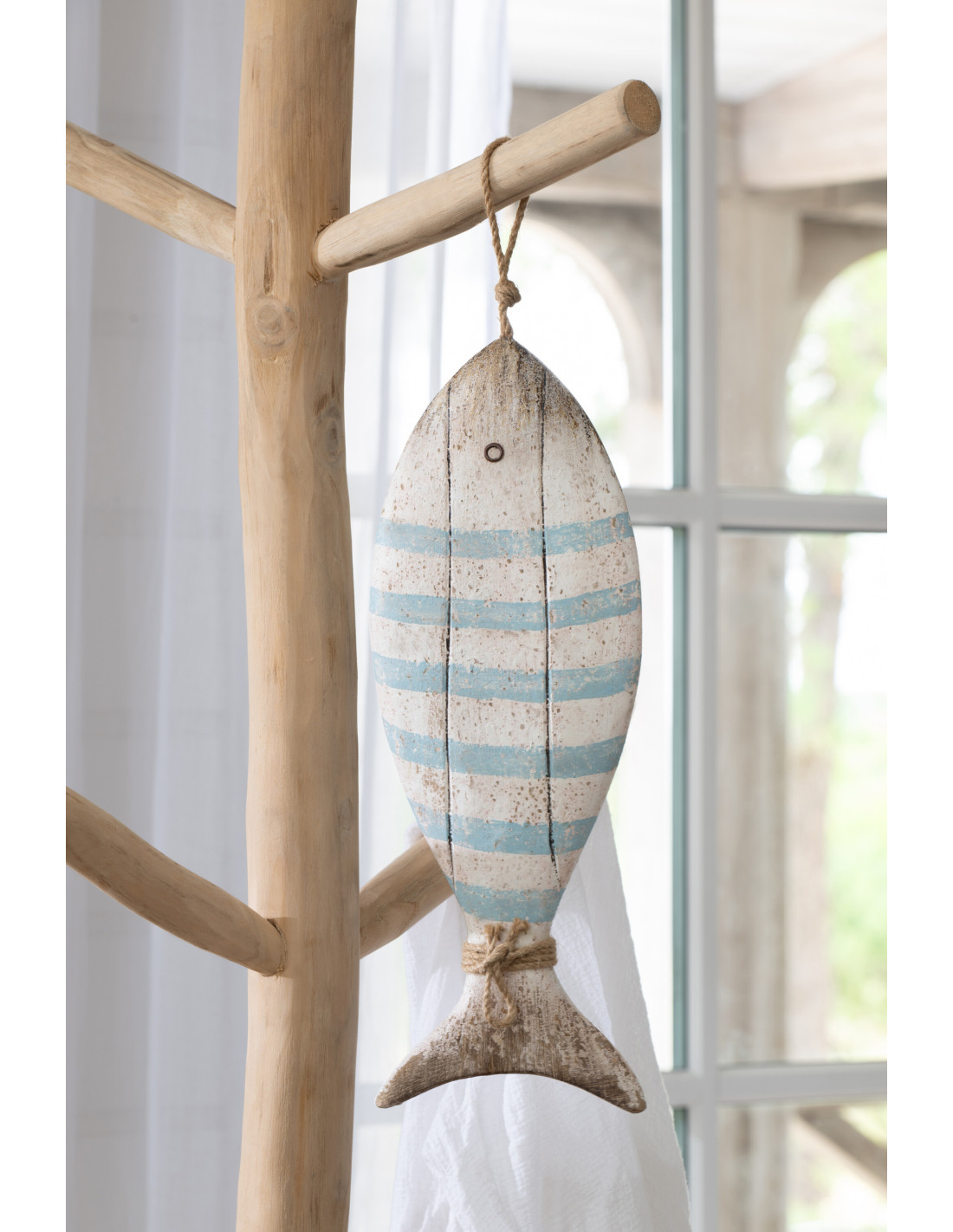 Grande Décoration à suspendre Poisson H 52 cm Bois de paulownia Bleu clair Blanc Naturel Nautina