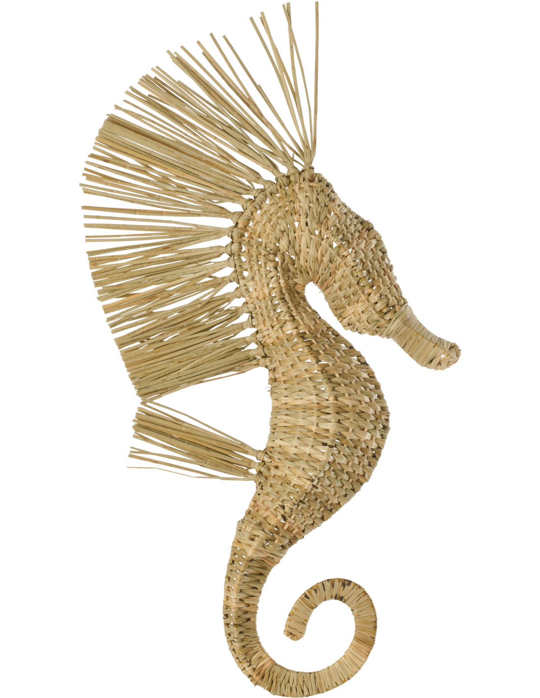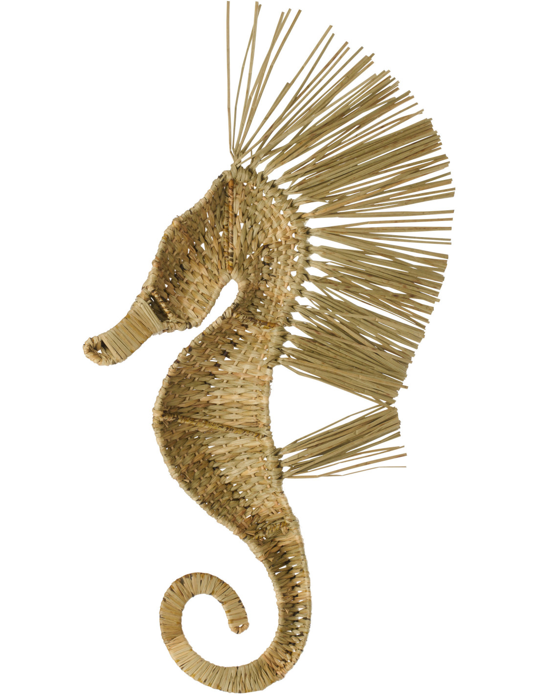 Grande Décoration murale bord de mer Hippocampe H 66 cm Herbe Naturel Tressé Abyssino