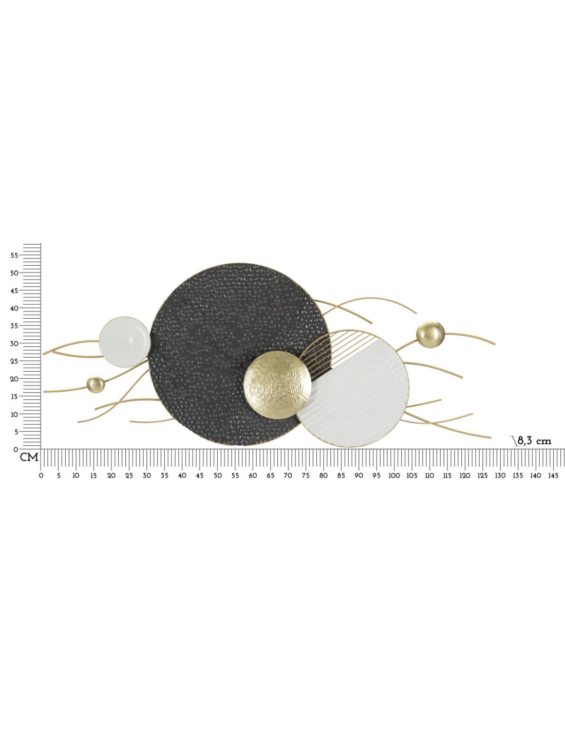 Grande Décoration murale design abstrait Métal Doré Blanc Noir Boly 129 cm