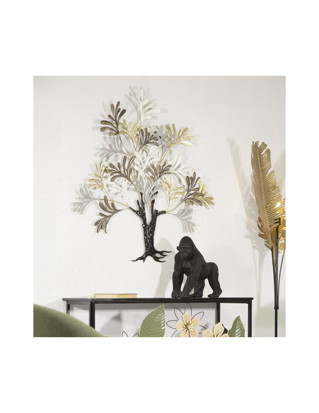 Grande Décoration murale design Arbre Métal Noir Doré Blanc crème Albero H 100 cm