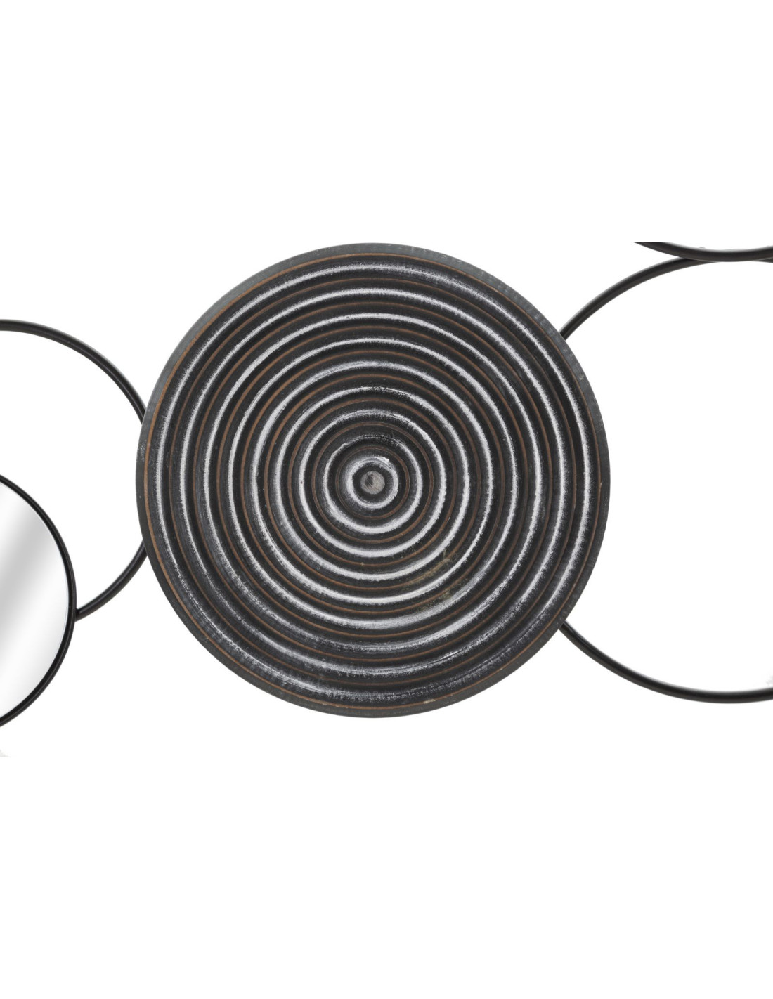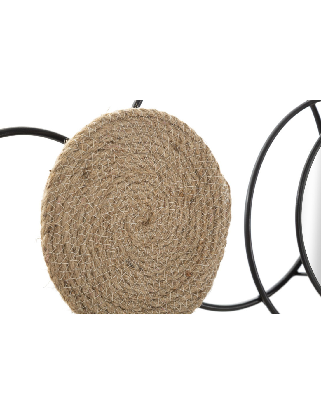 Grande Décoration murale design ethnique chic Métal Noir Rotin Naturel Tressé Miroir Triby