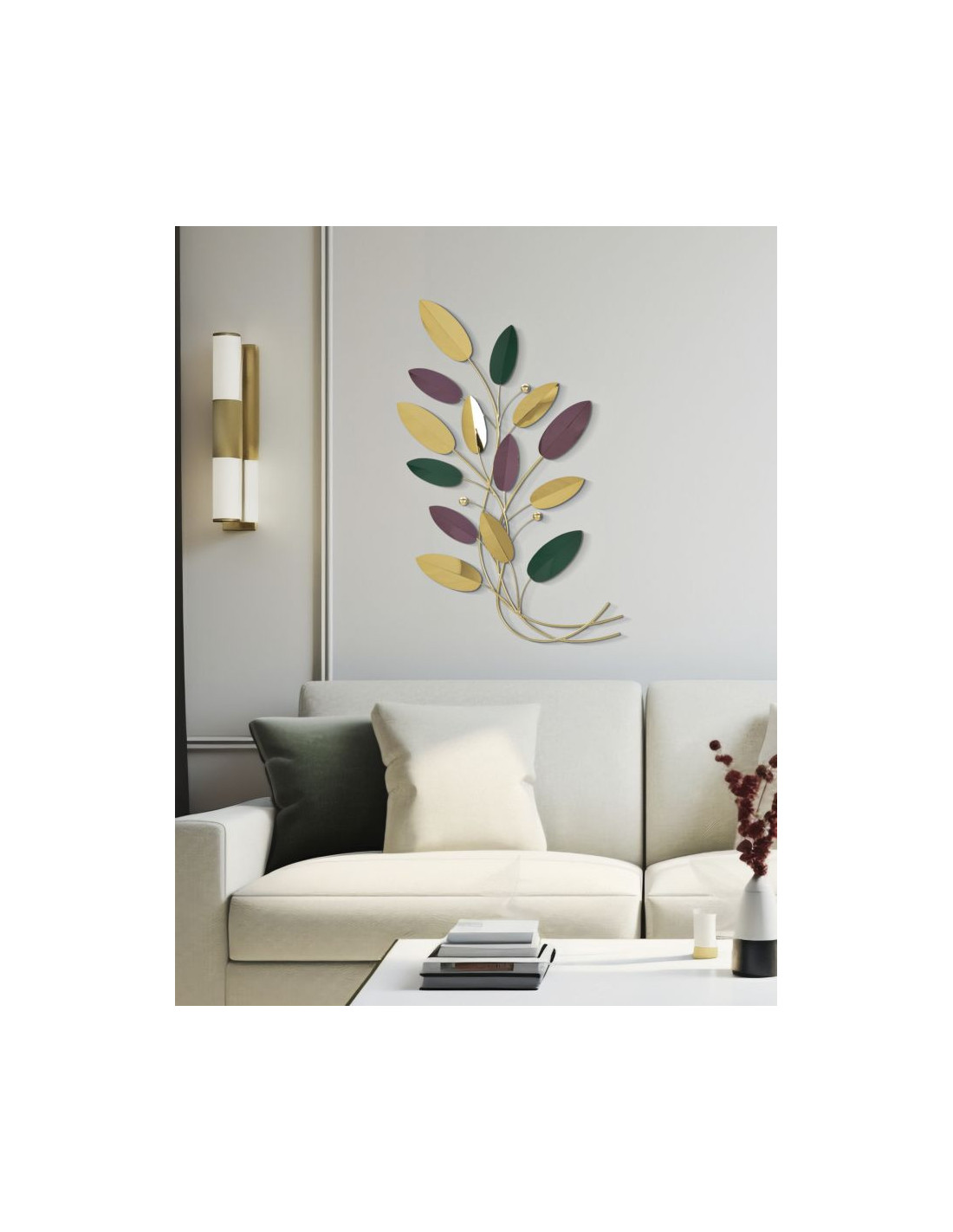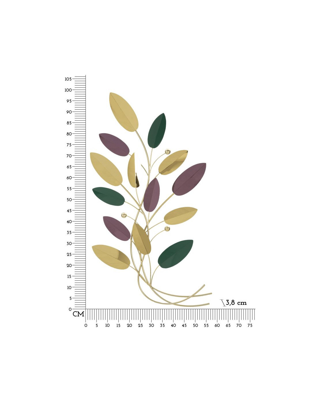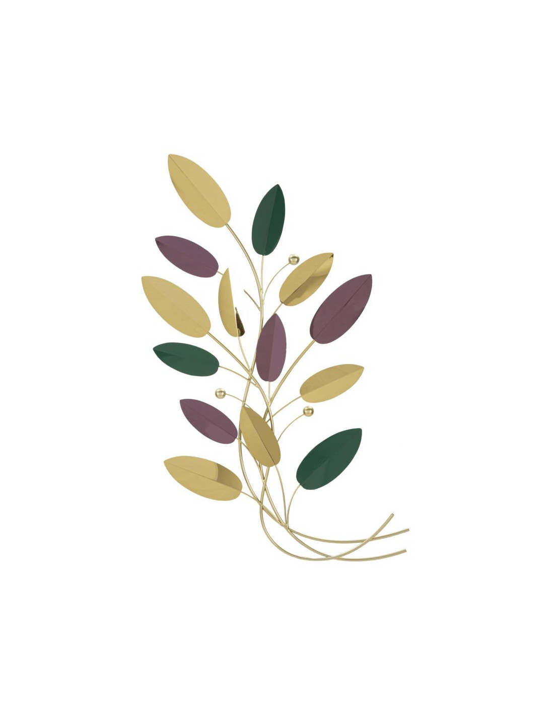Grande Décoration murale design Feuilles 59x98 Métal Doré Vert Marron Colorful