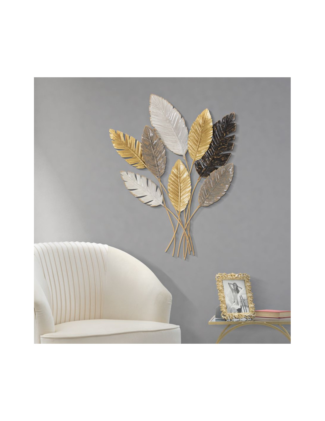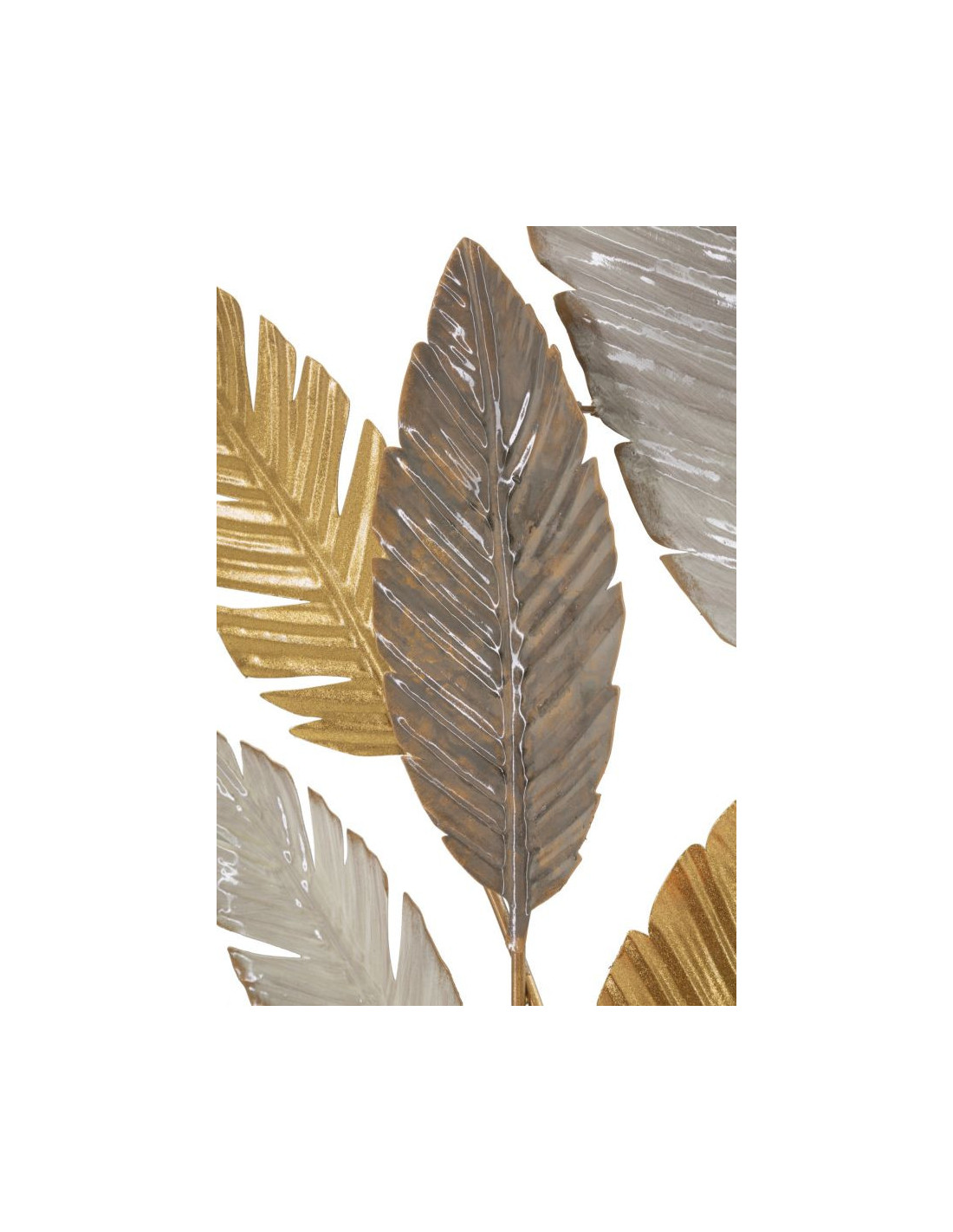 Grande Décoration murale design Feuilles tropicales Métal Doré Blanc cassé Marron Palmy