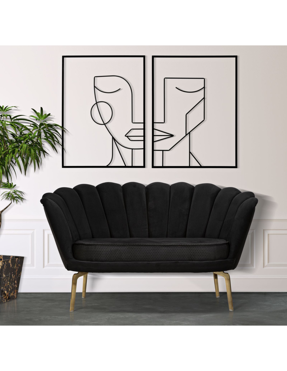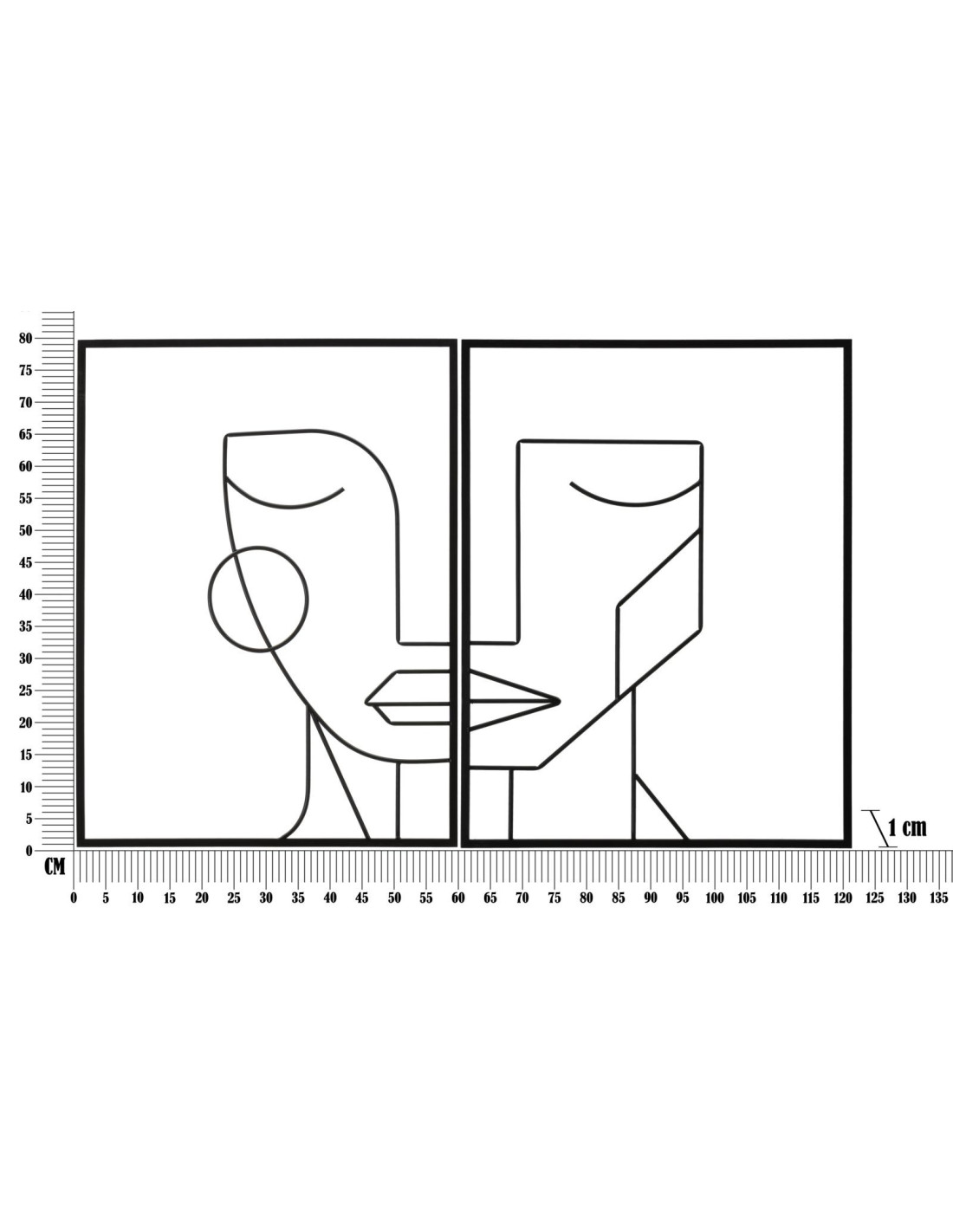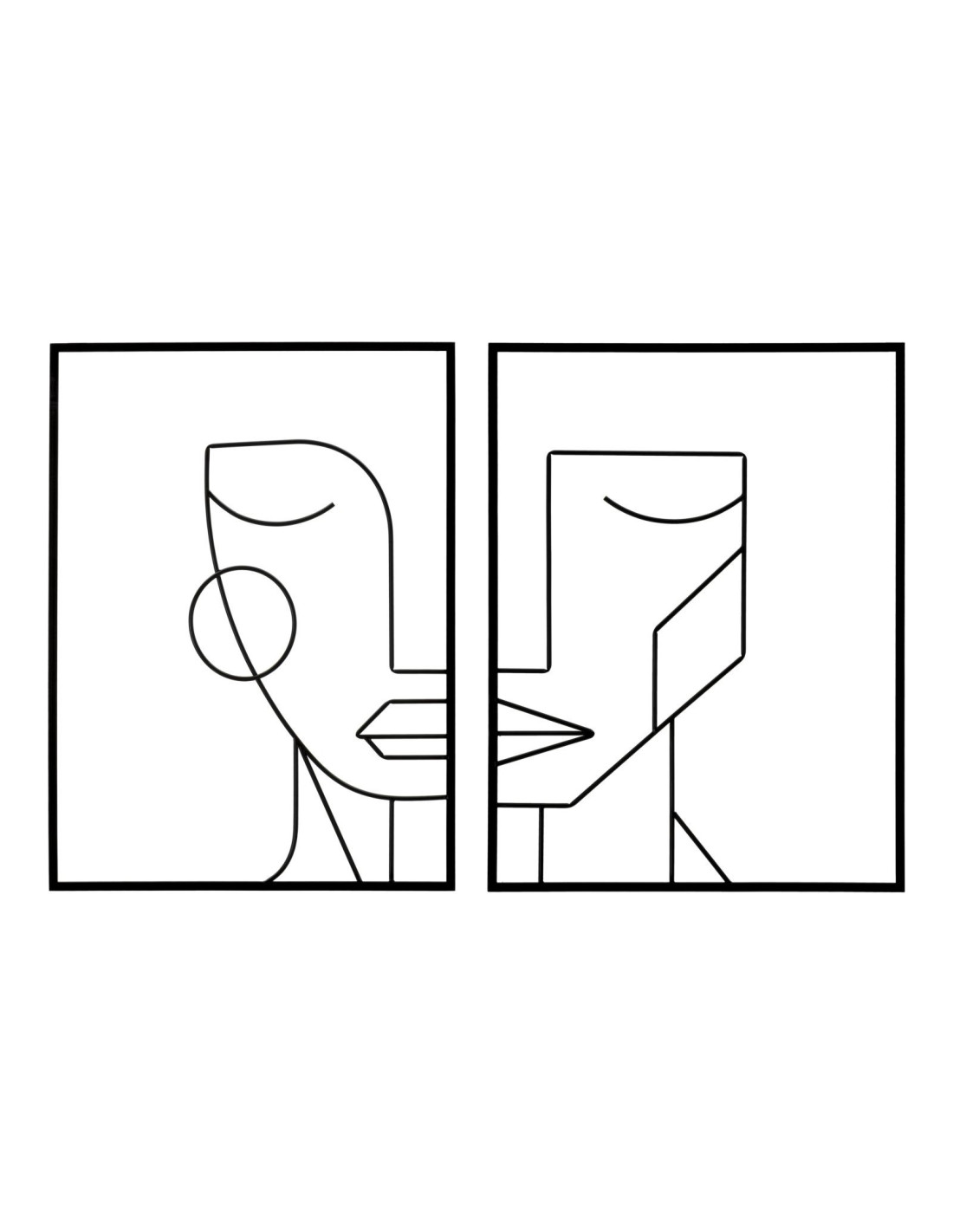 Grande Décoration murale diptyque minimaliste Visages 120x80 Métal Noir Tribal