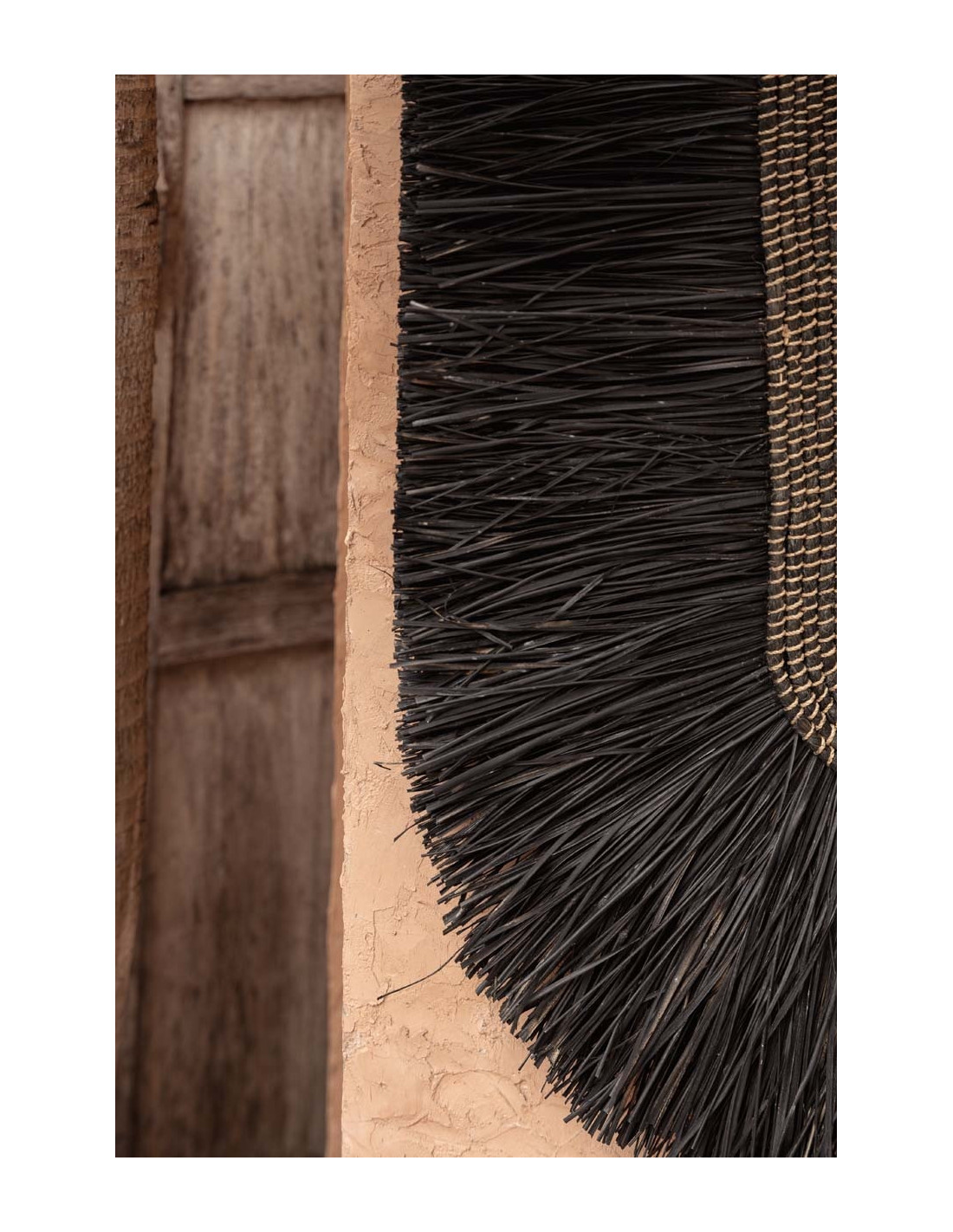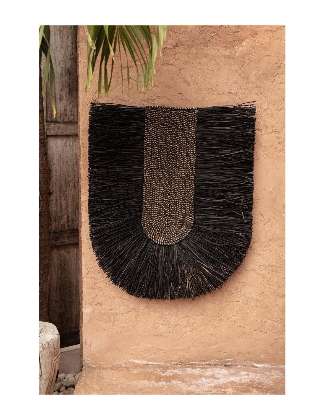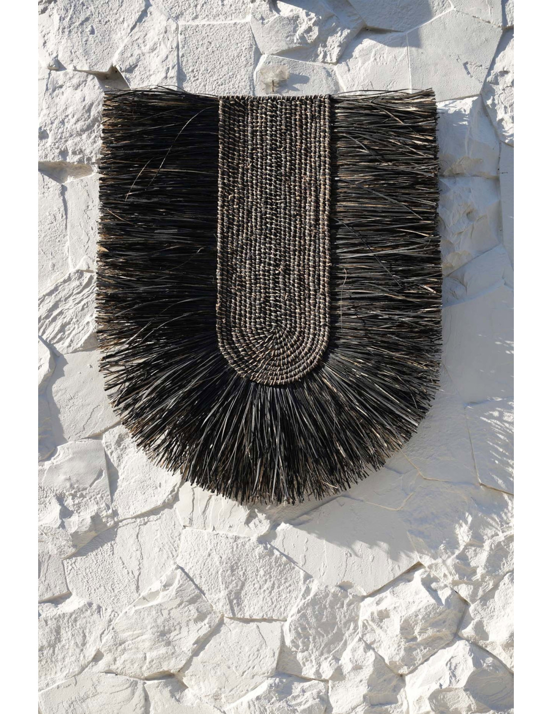 Grande décoration murale ethnique bohème H 87 cm Herbe Noir Tressé The Dada