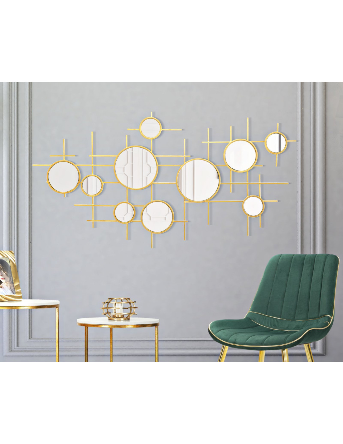 Grande Décoration murale moderne chic Miroirs 177x61 Métal Doré Gloxy