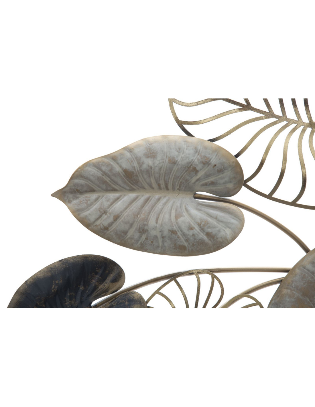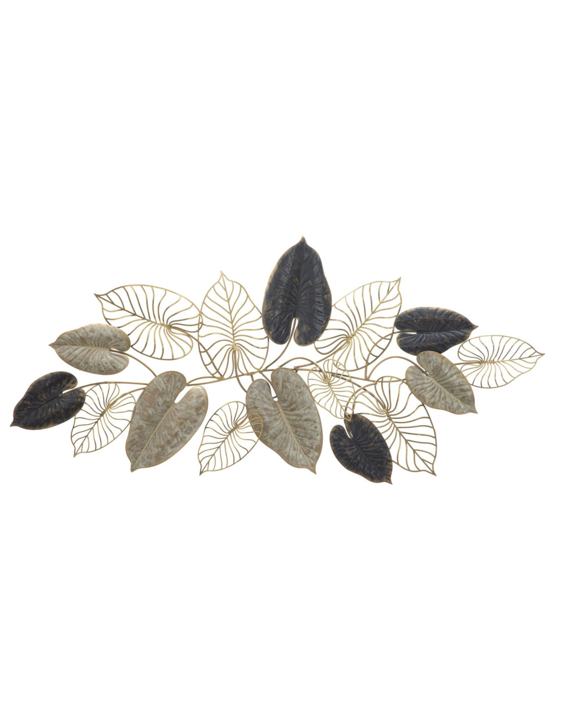 Grande décoration murale moderne Feuilles 131x61 Métal Doré Beige Noir Century