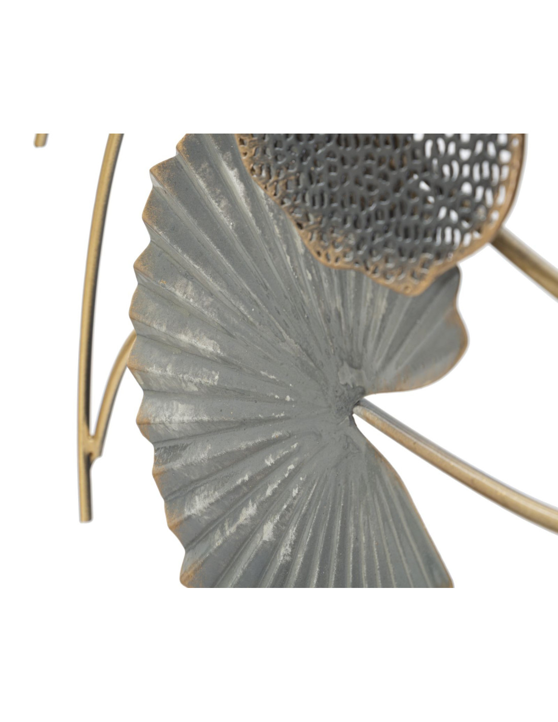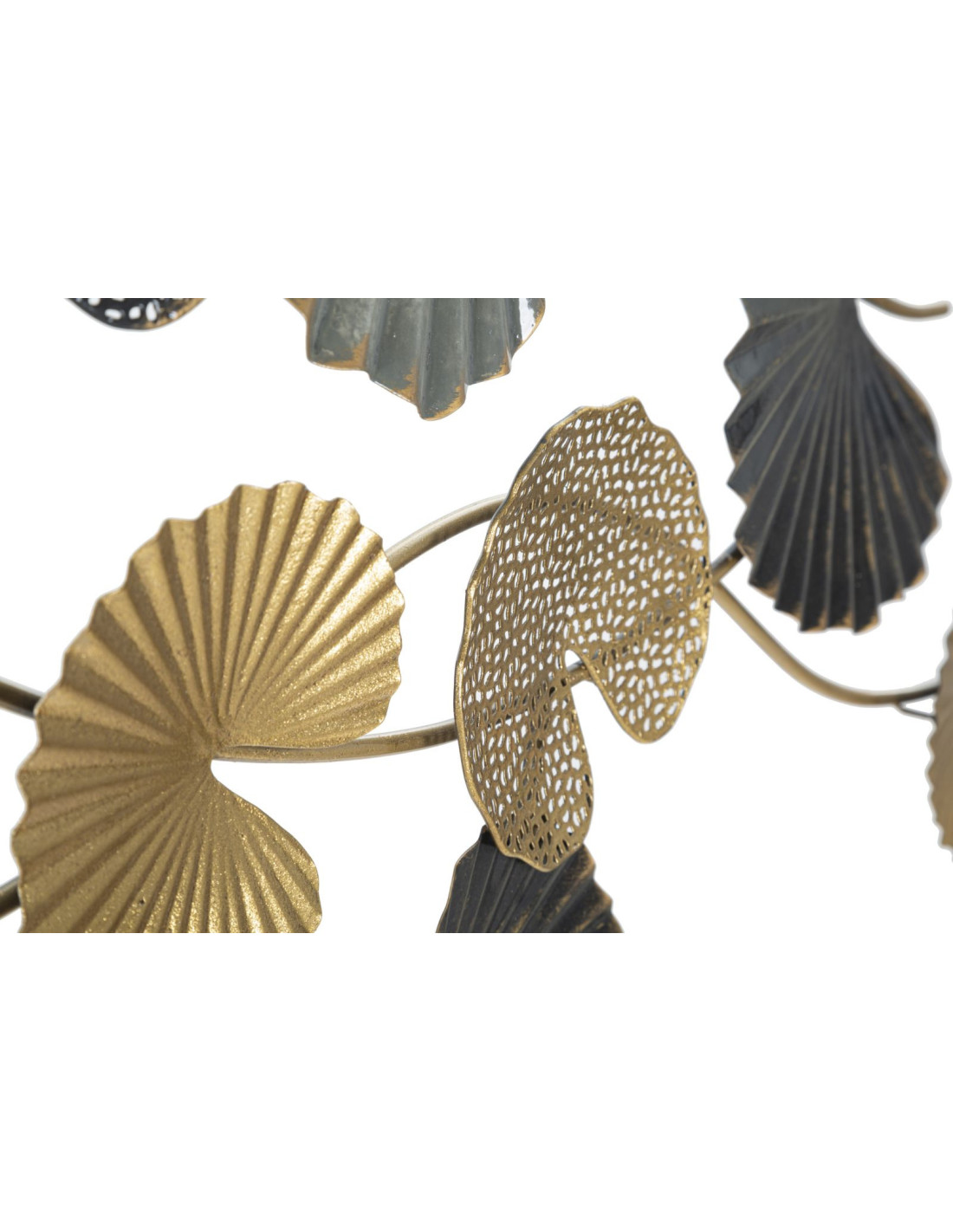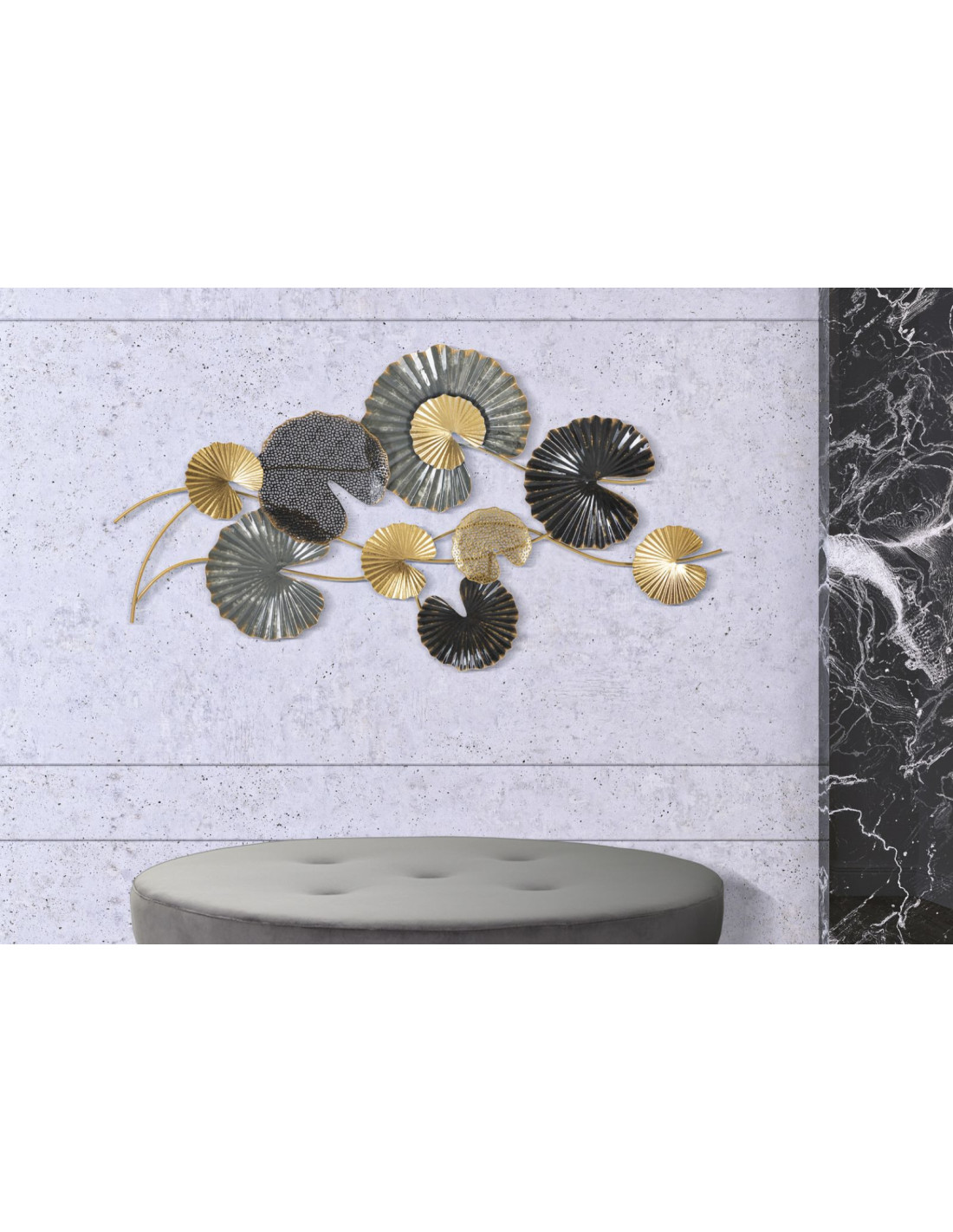 Grande Décoration murale moderne Feuilles de lotus 105x56 Métal Doré Noir Gris Web