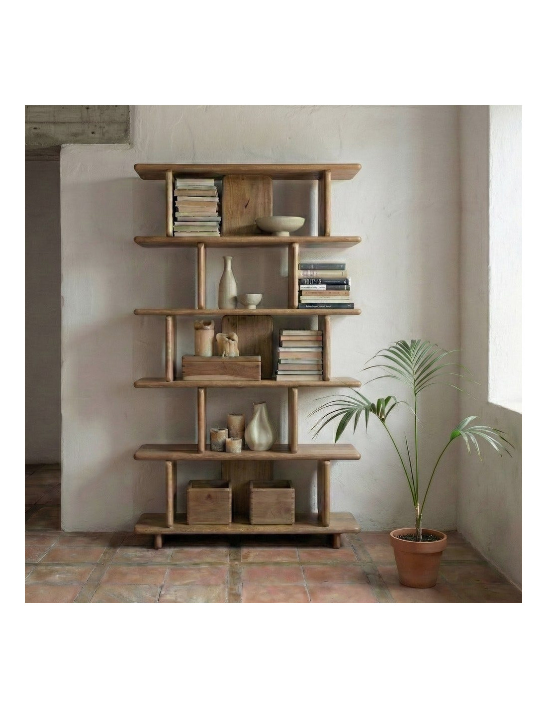 Grande Étagère asymétrique Wabi-sabi 6 niveaux Bois de manguier Naturel Eje