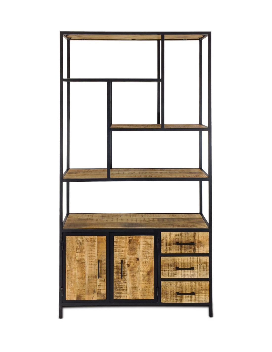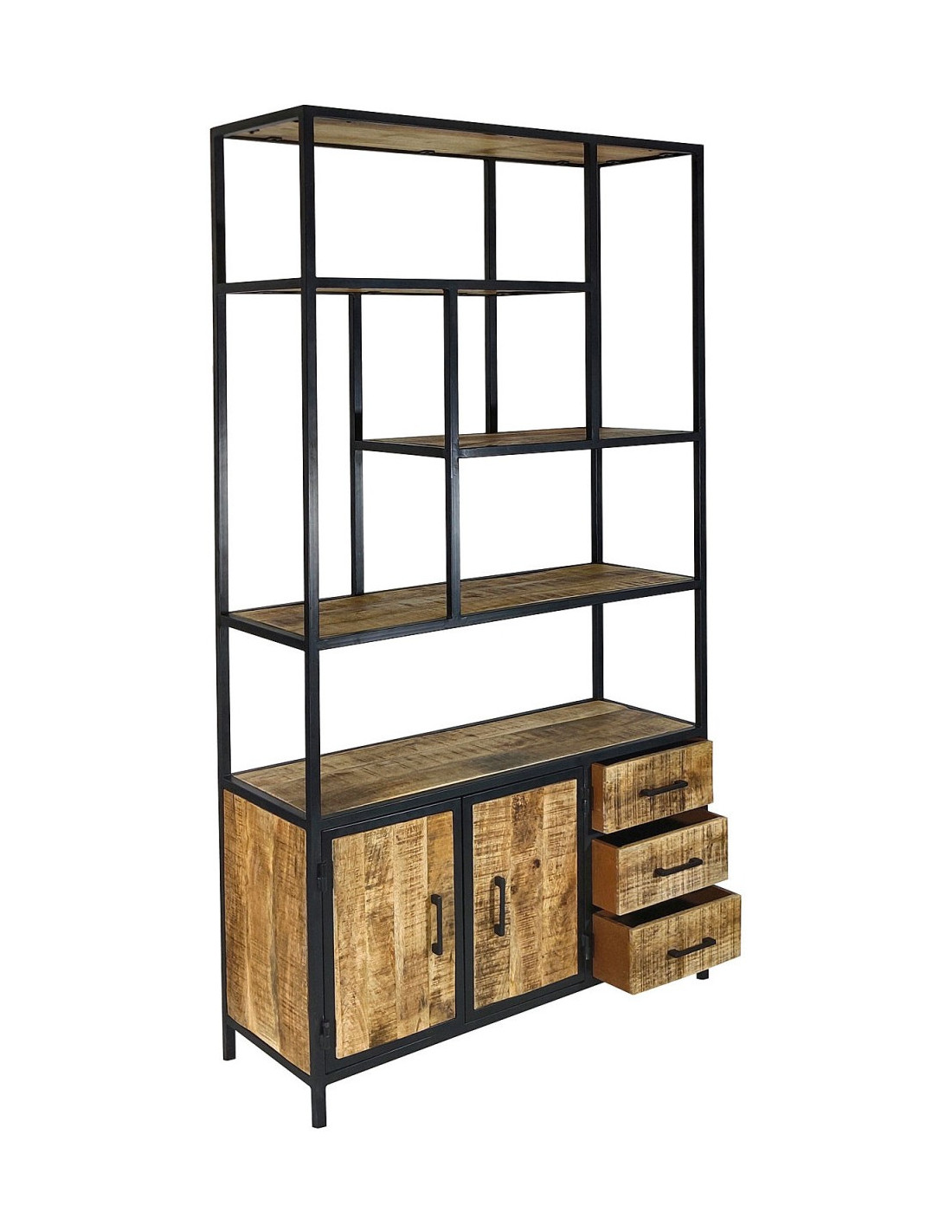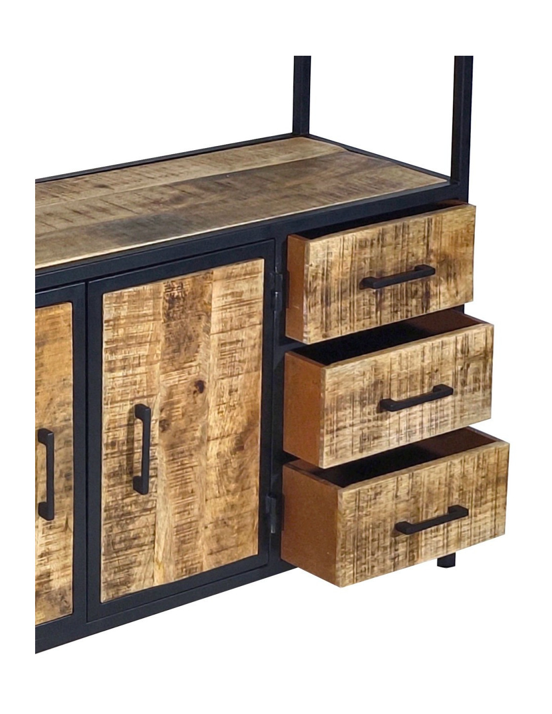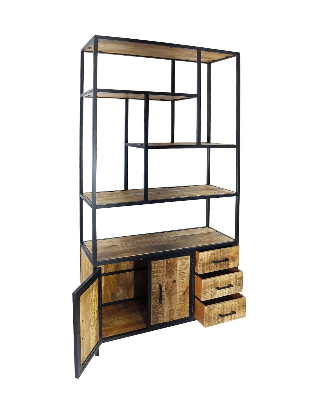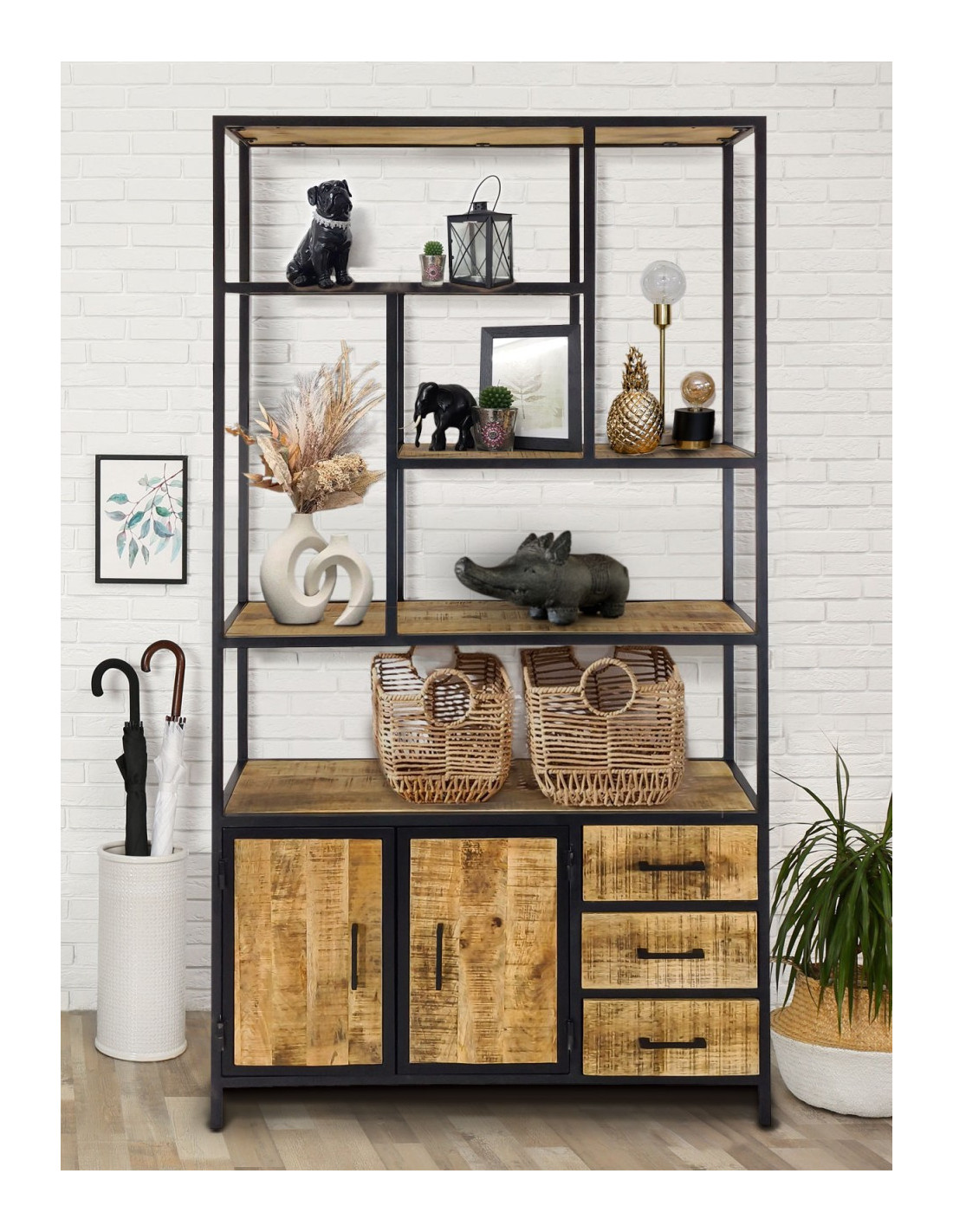 Structure en métal avec éléments en bois. Des variations naturelles peuvent apparaître sur le bois et renforcent l’authenticité du meuble.