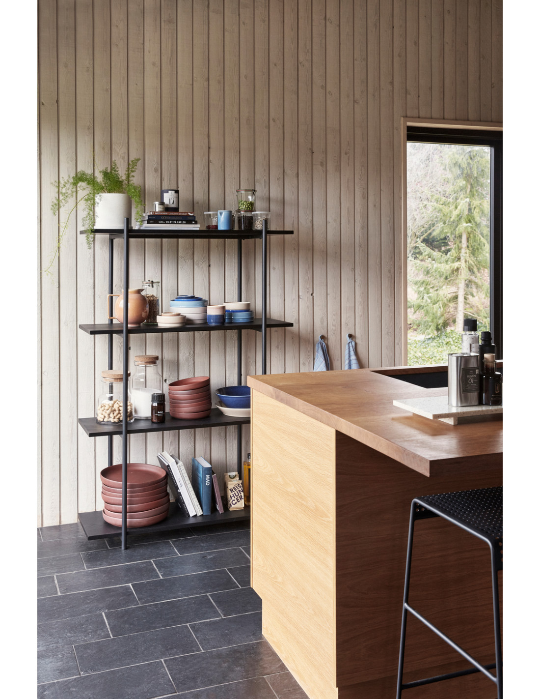 Grande Étagère moderne 4 niveaux en Bois de frêne Métal Noir Norm - 1