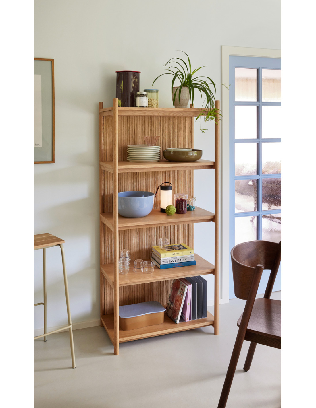 Grande Étagère moderne 5 niveaux en Bois MDF Naturel Effet chêne Corde en papier Heritage - 5