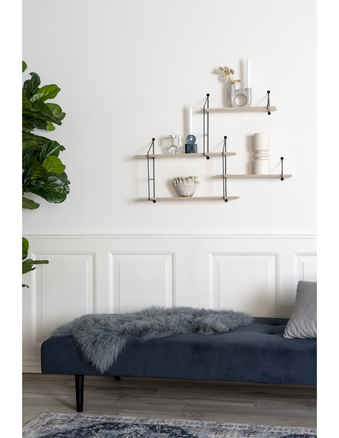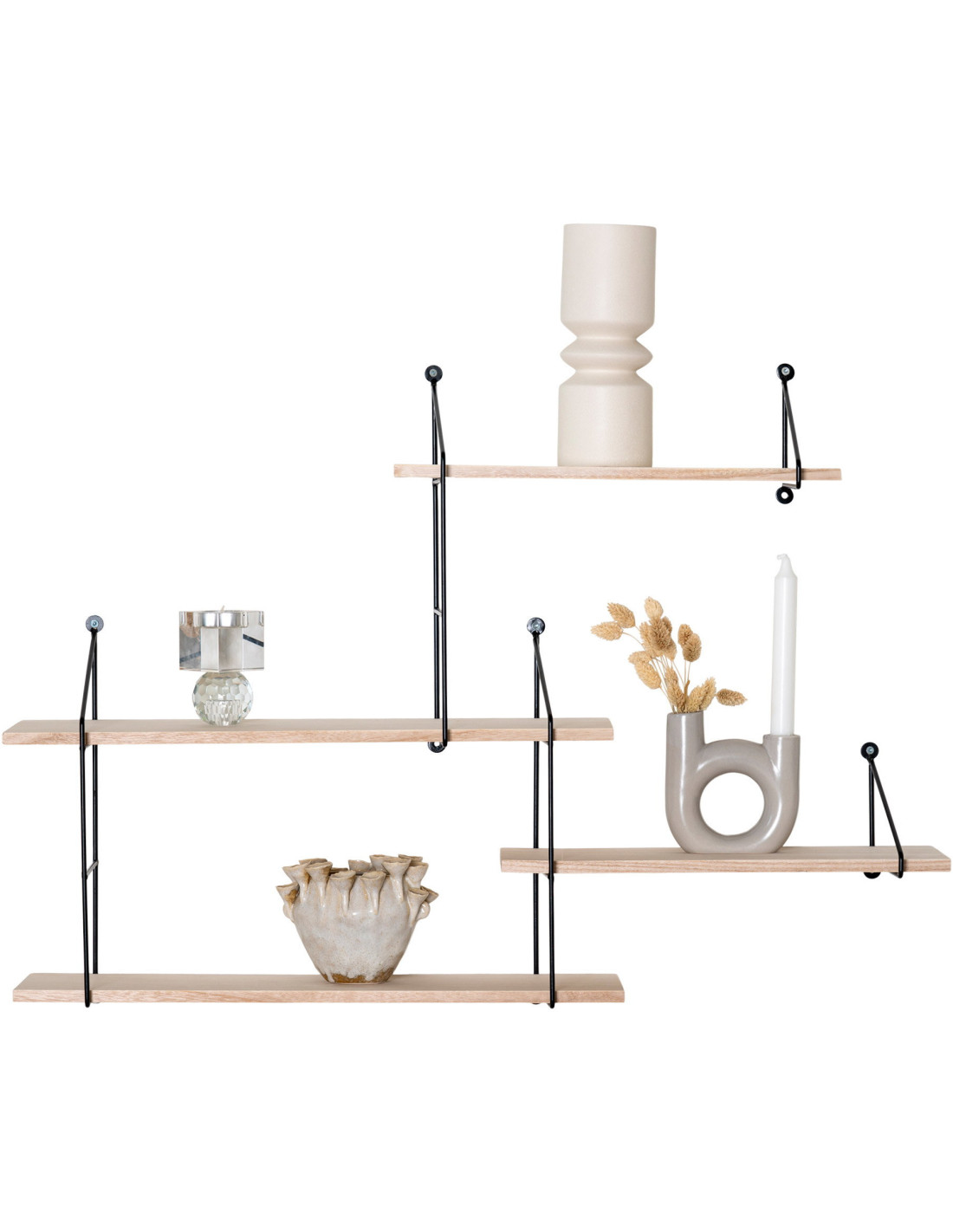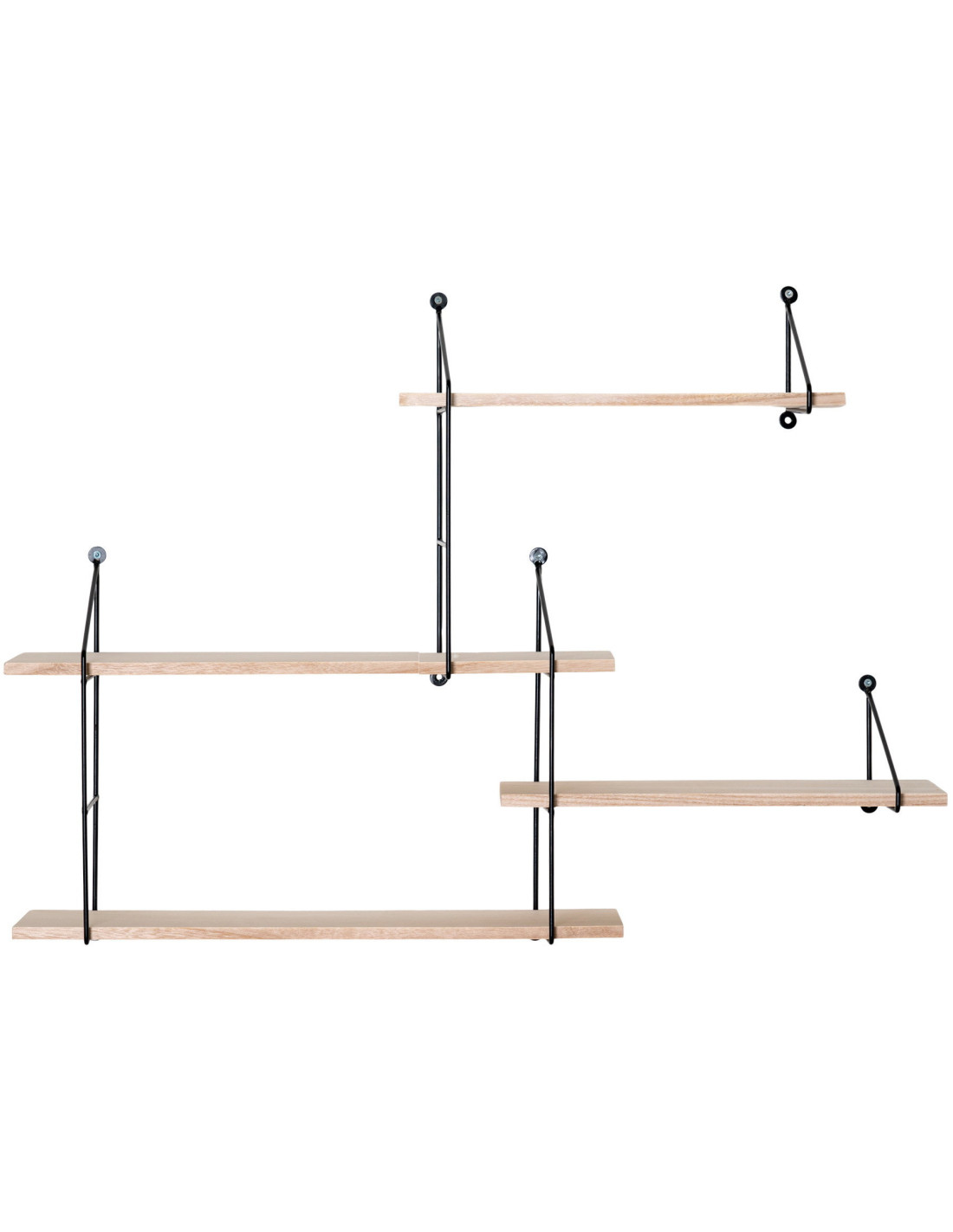 Grande Étagère murale asymétrique 4 niveaux Bois de paulownia Naturel Métal Noir Harlem