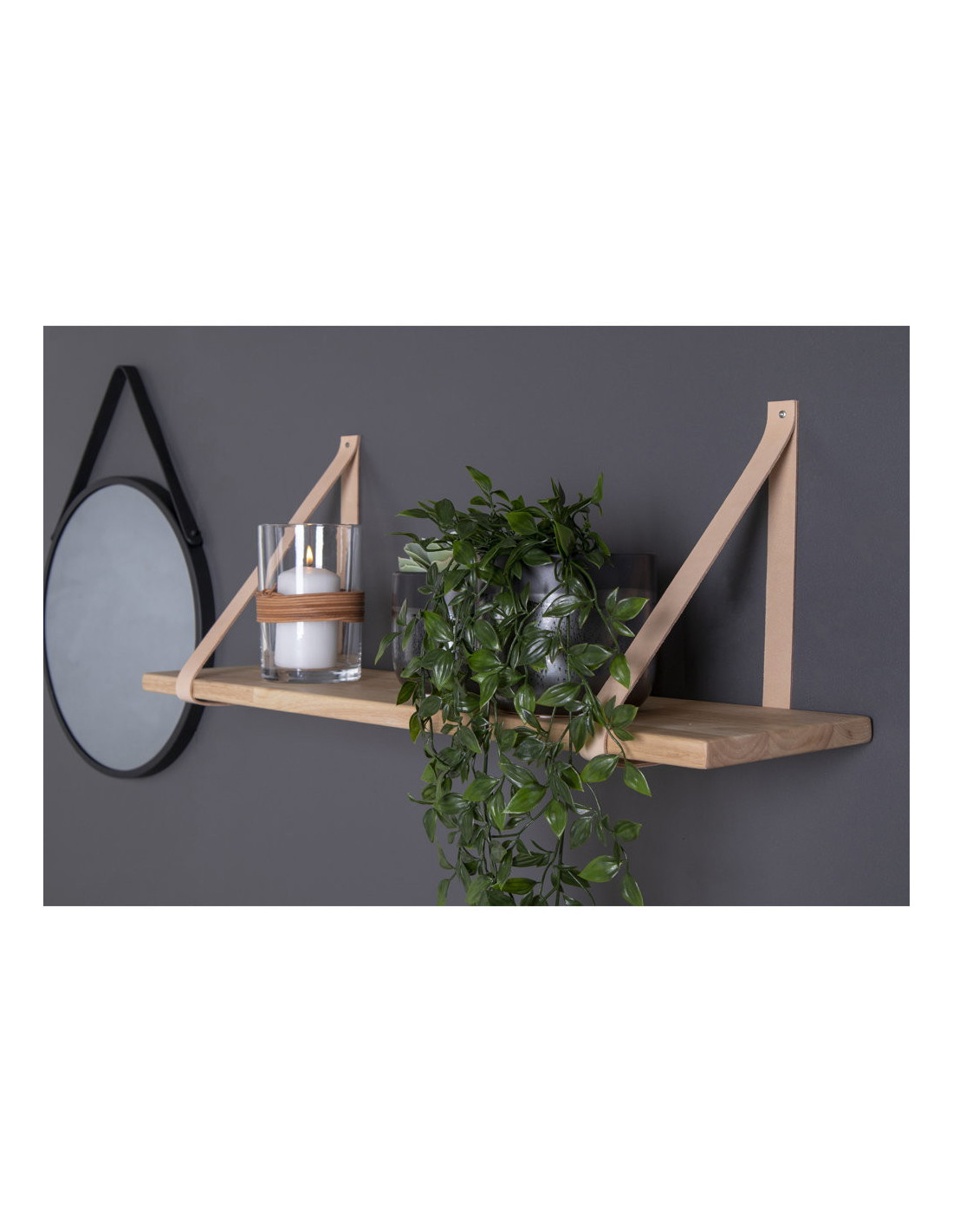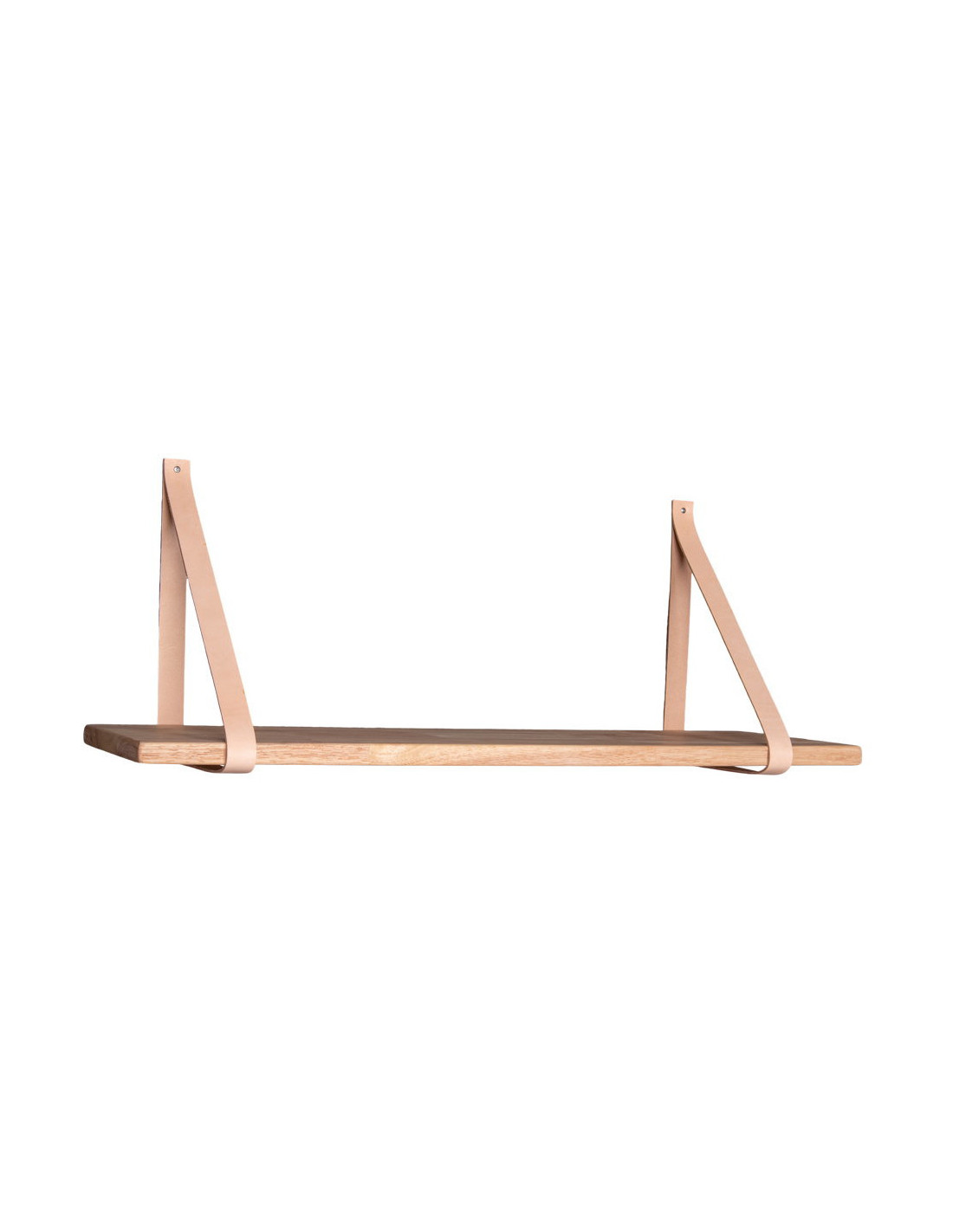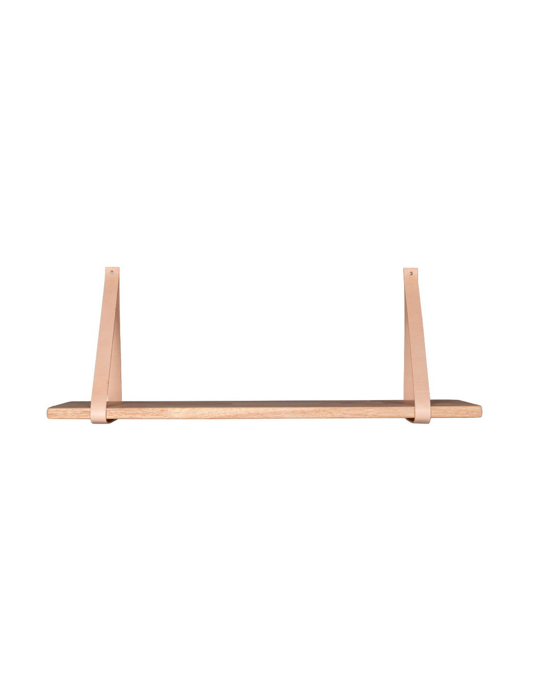 Grande Étagère murale moderne 120 cm Bois d'hévéa Naturel Cuir véritable Marron Forno