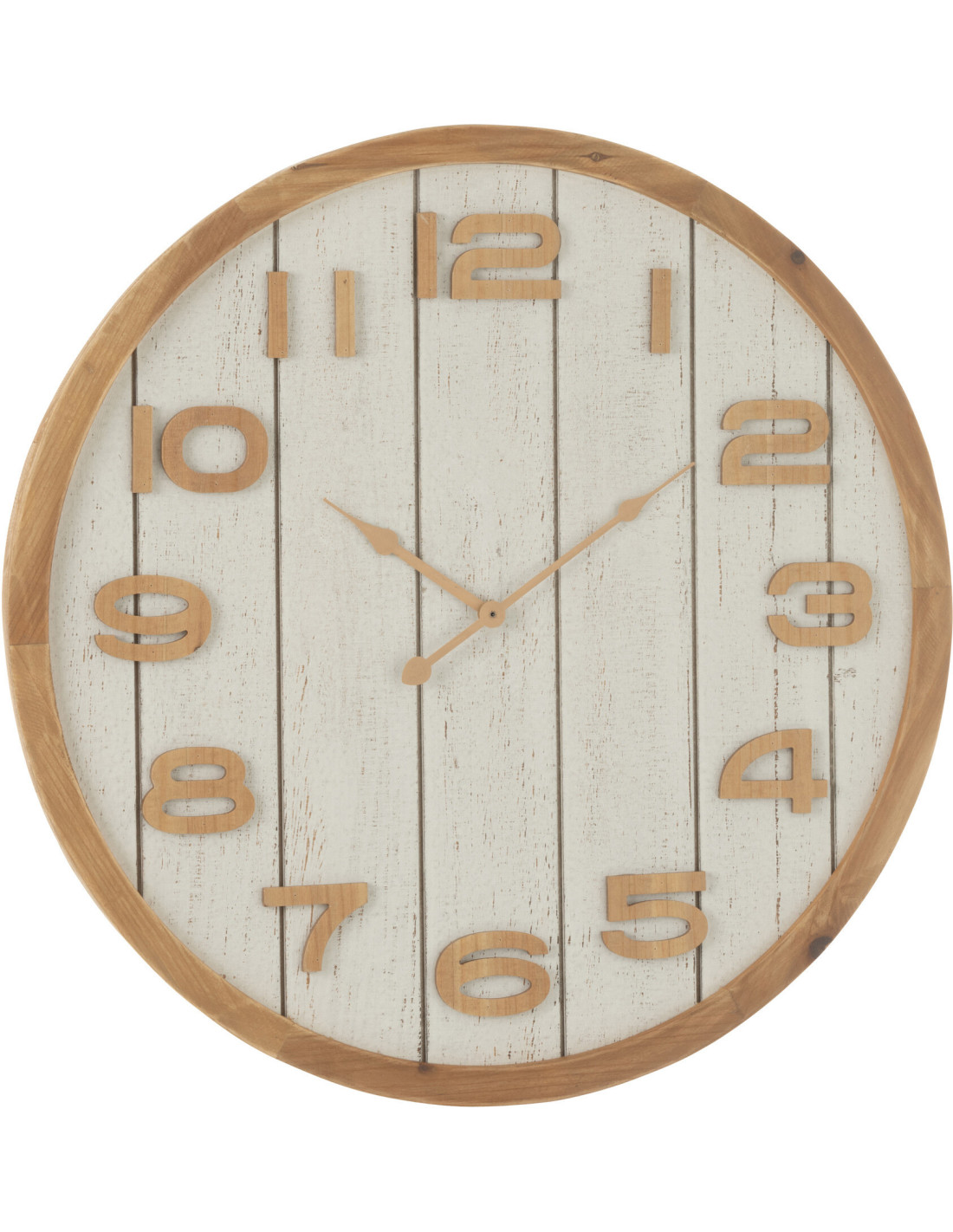 Grande Horloge murale bord de mer Ronde 60 cm Bois Bois MDF Naturel Blanc Casania