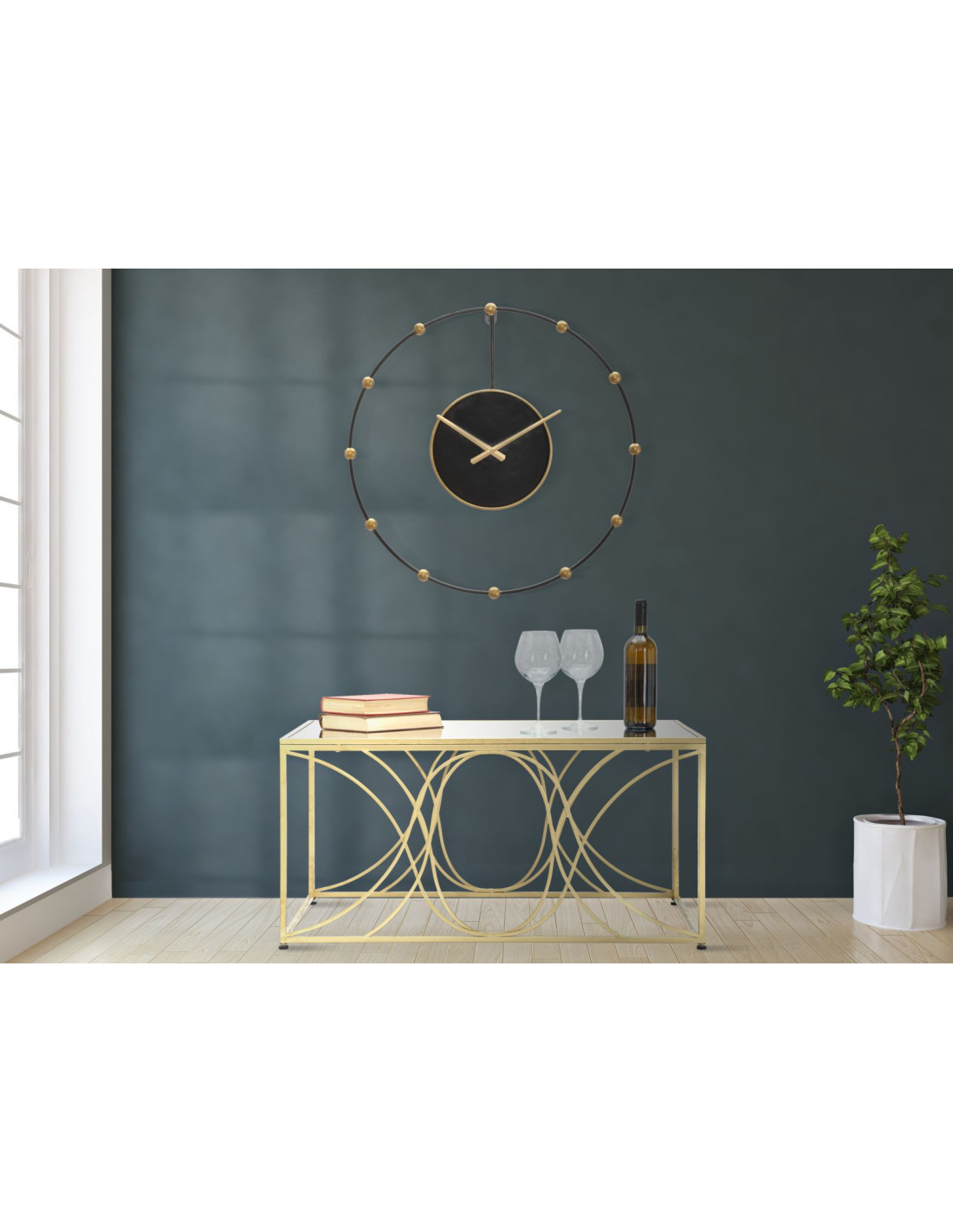Grande Horloge murale design art déco Ronde Métal Noir Doré Pearl