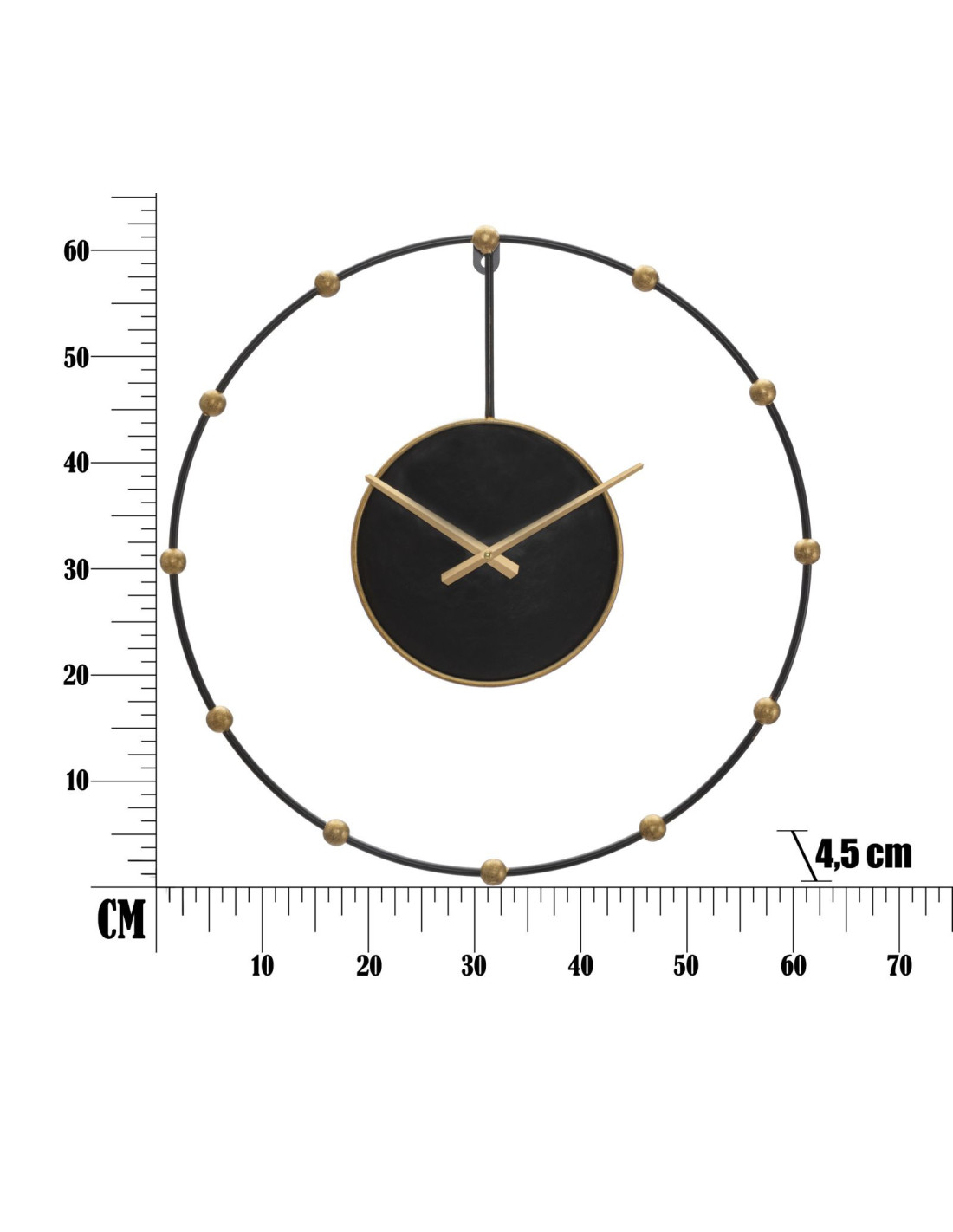 Grande Horloge murale design art déco Ronde Métal Noir Doré Pearl 61 cm