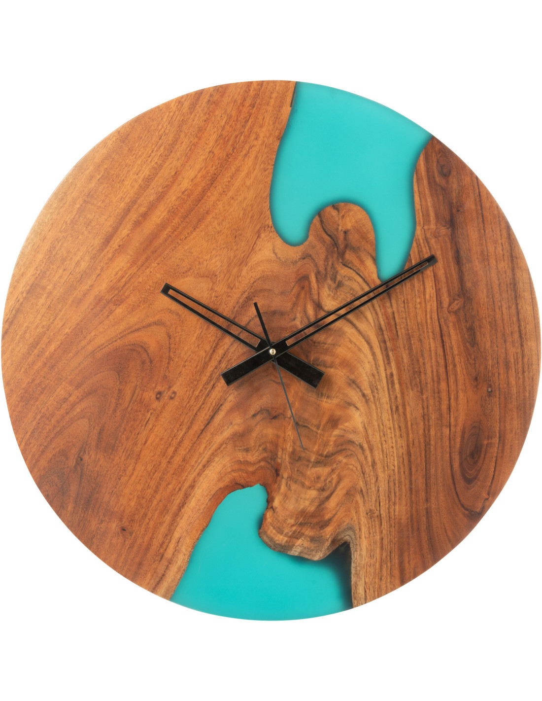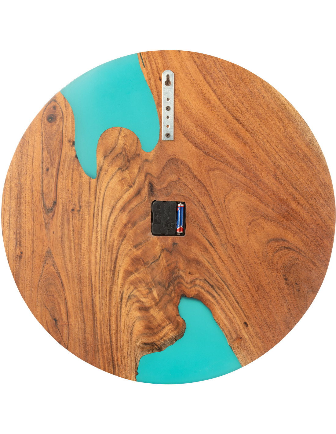 Grande Horloge murale originale ronde 55 cm en Bois d'acacia Naturel Résine Bleu Noaïra - 1