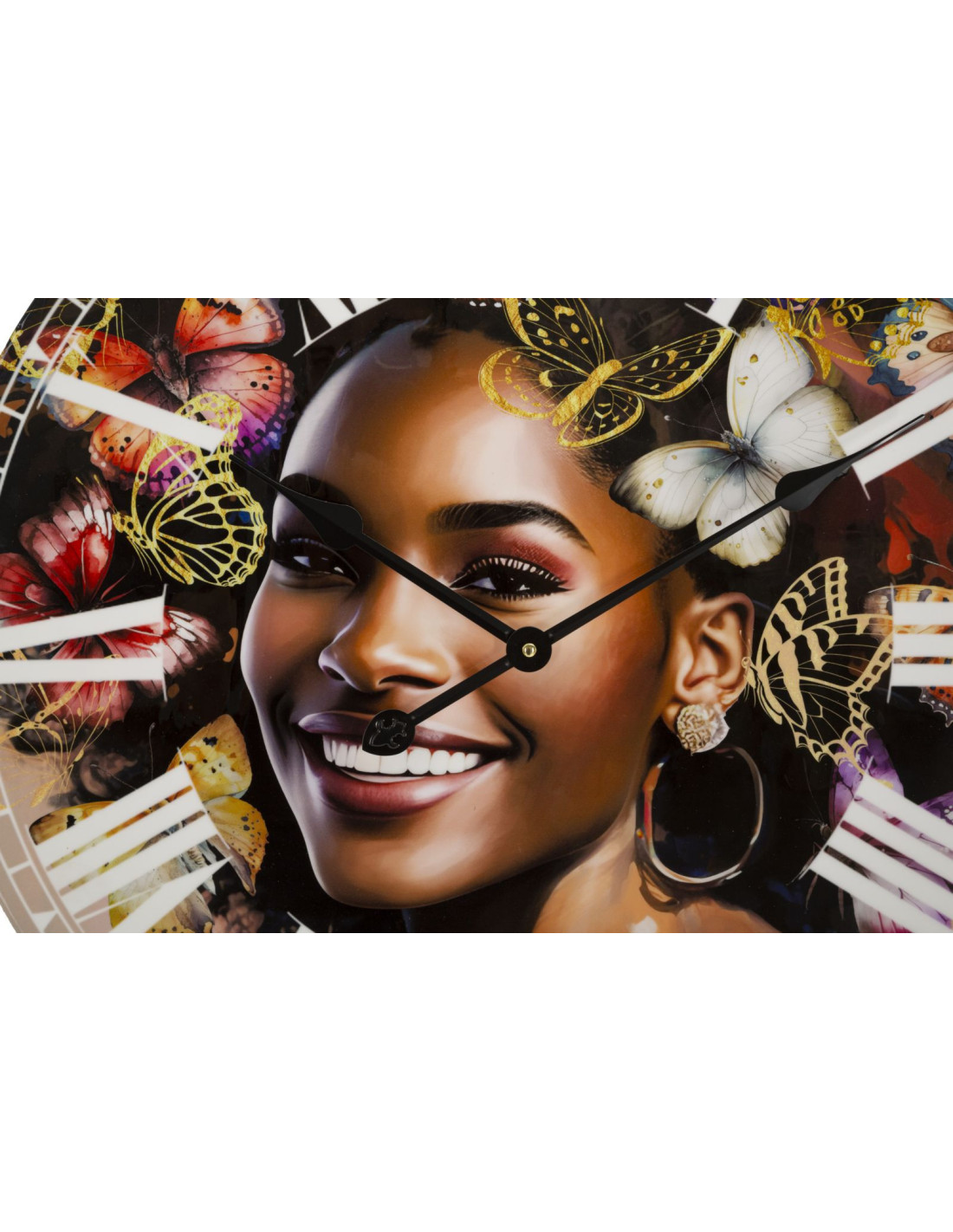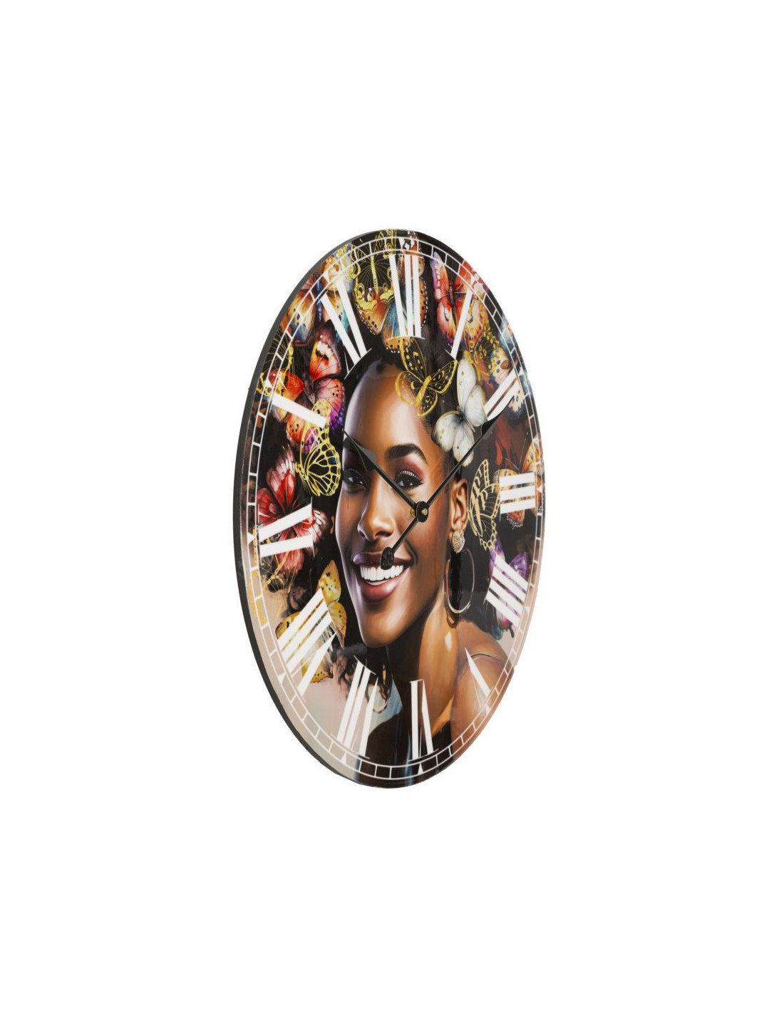 Grande Horloge murale ronde Femme africaine 60 cm en Bois MDF Kourt