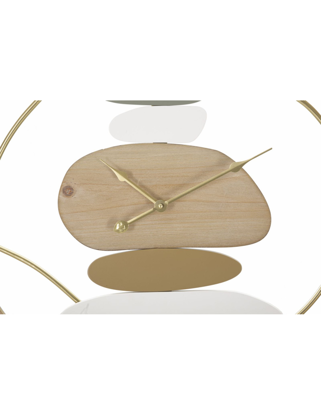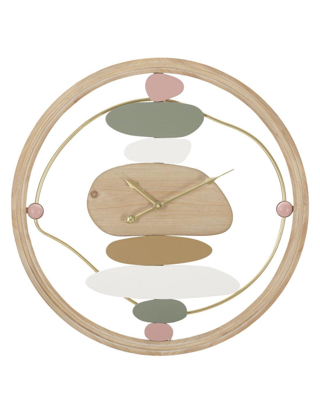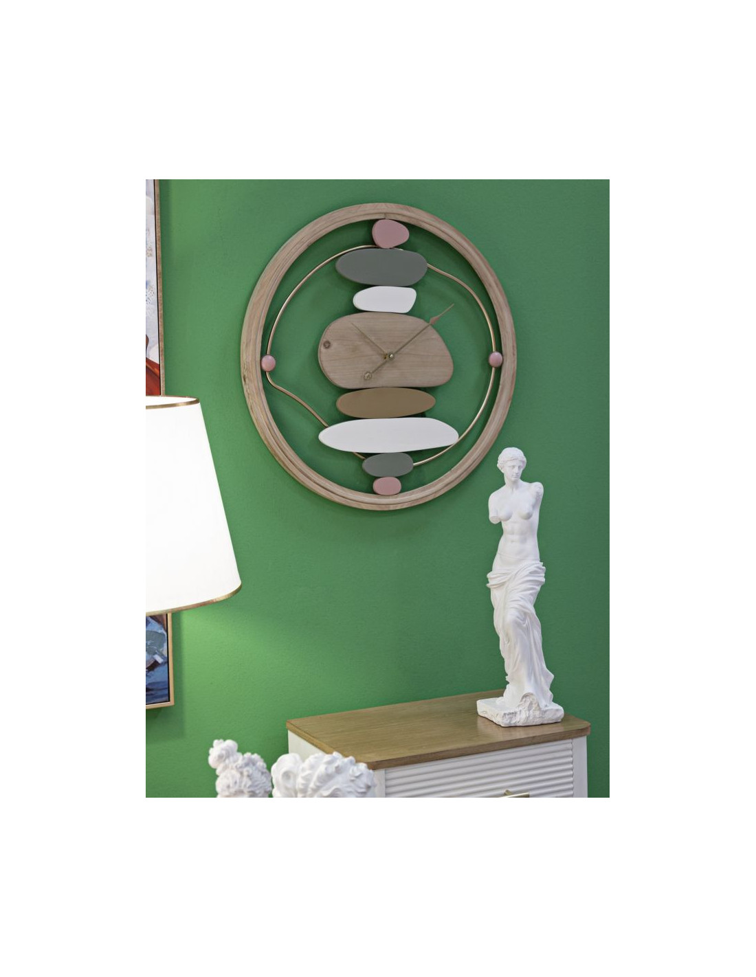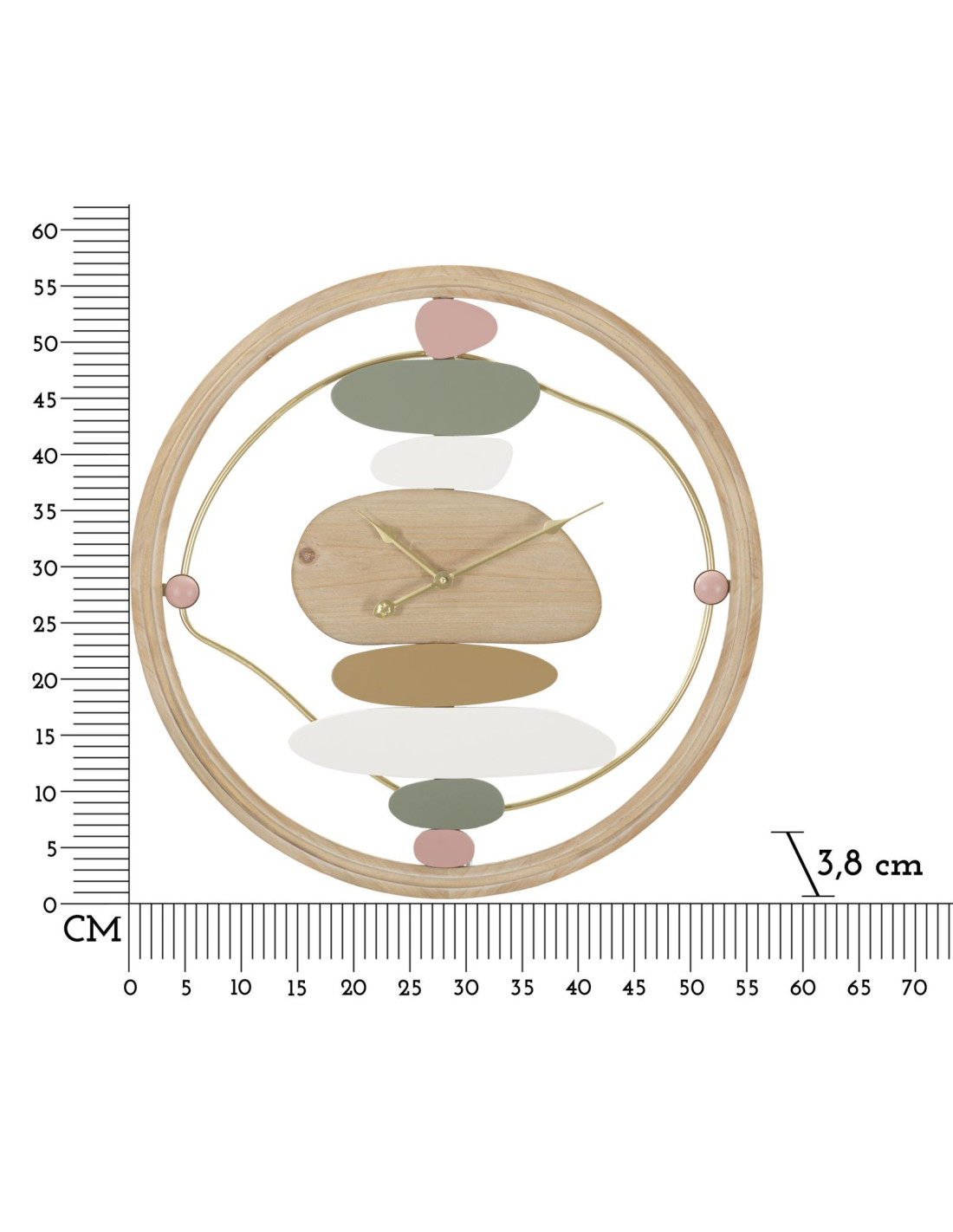 Grande Horloge murale ronde moderne 57 cm en Bois MDF Naturel Métal Doré Colorful