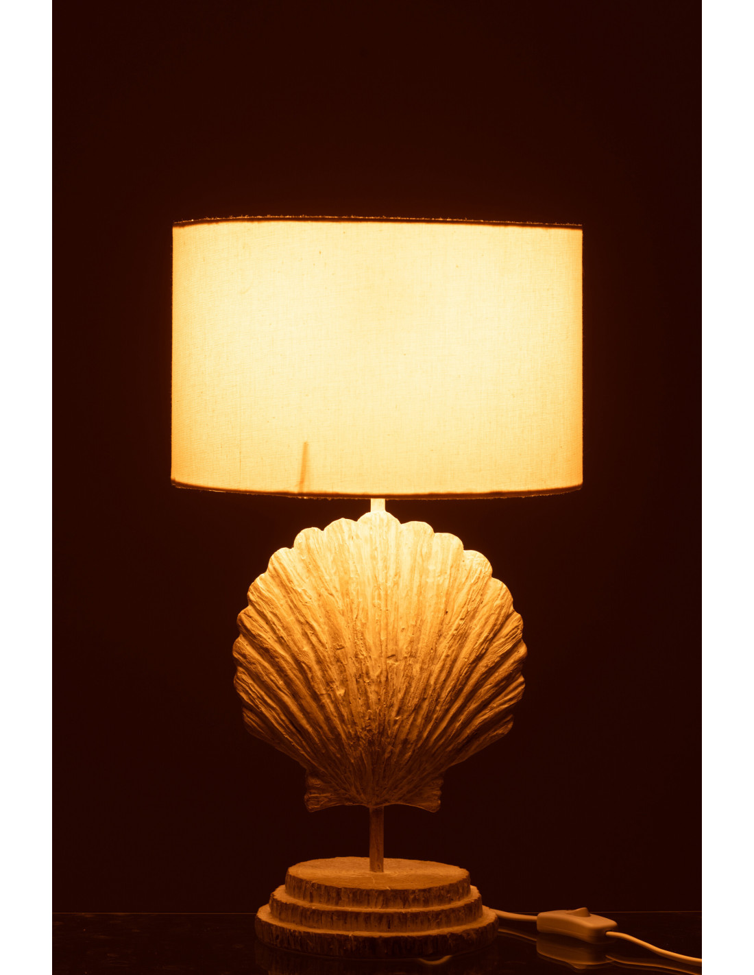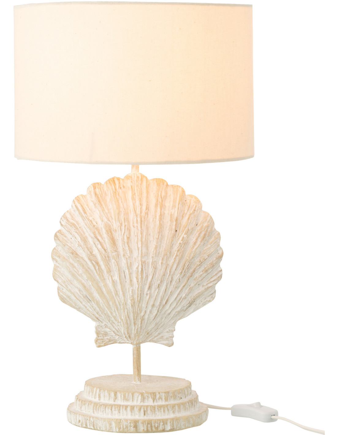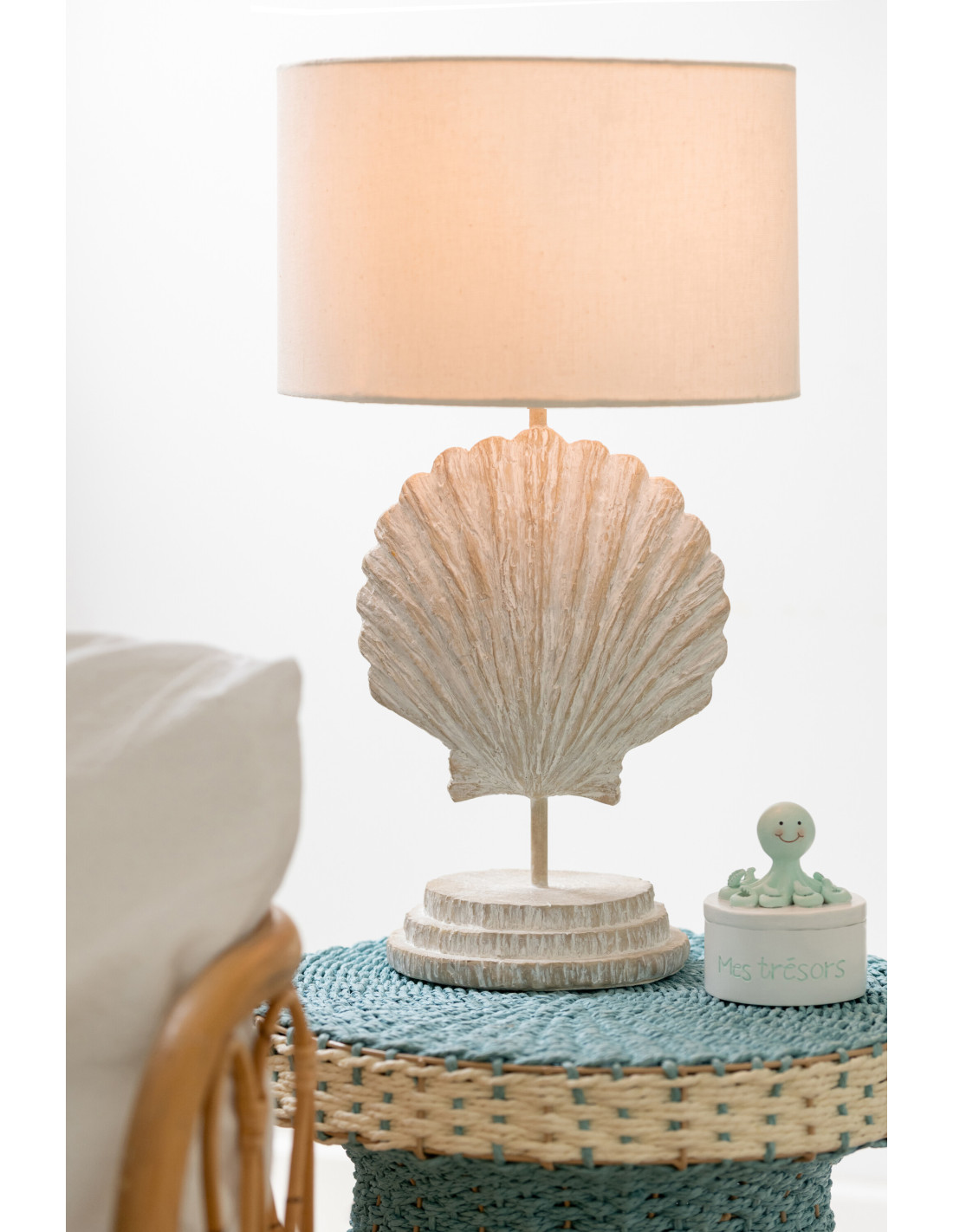 Grande Lampe à poser Coquillage bord de mer H 47 cm Résine Blanc crème Tissu Naturel Loravia