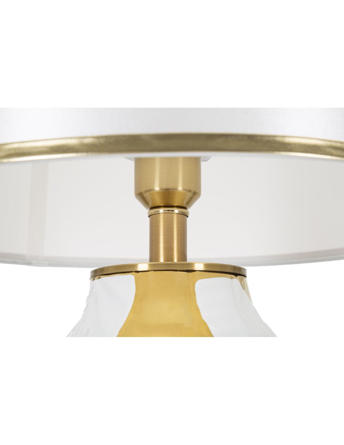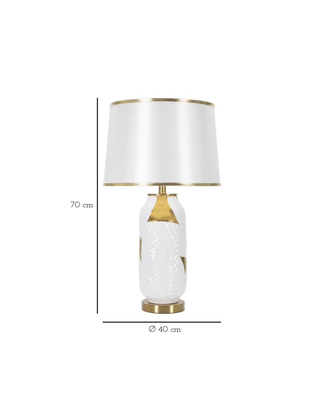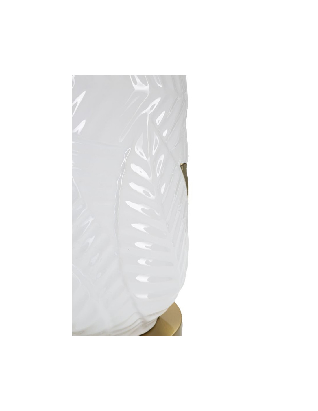 Grande Lampe à poser design art déco Céramique Métal Tissu Blanc Doré Motif feuilles Leaves