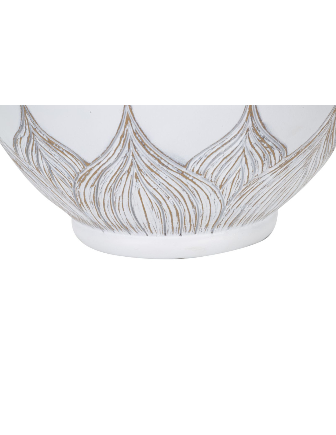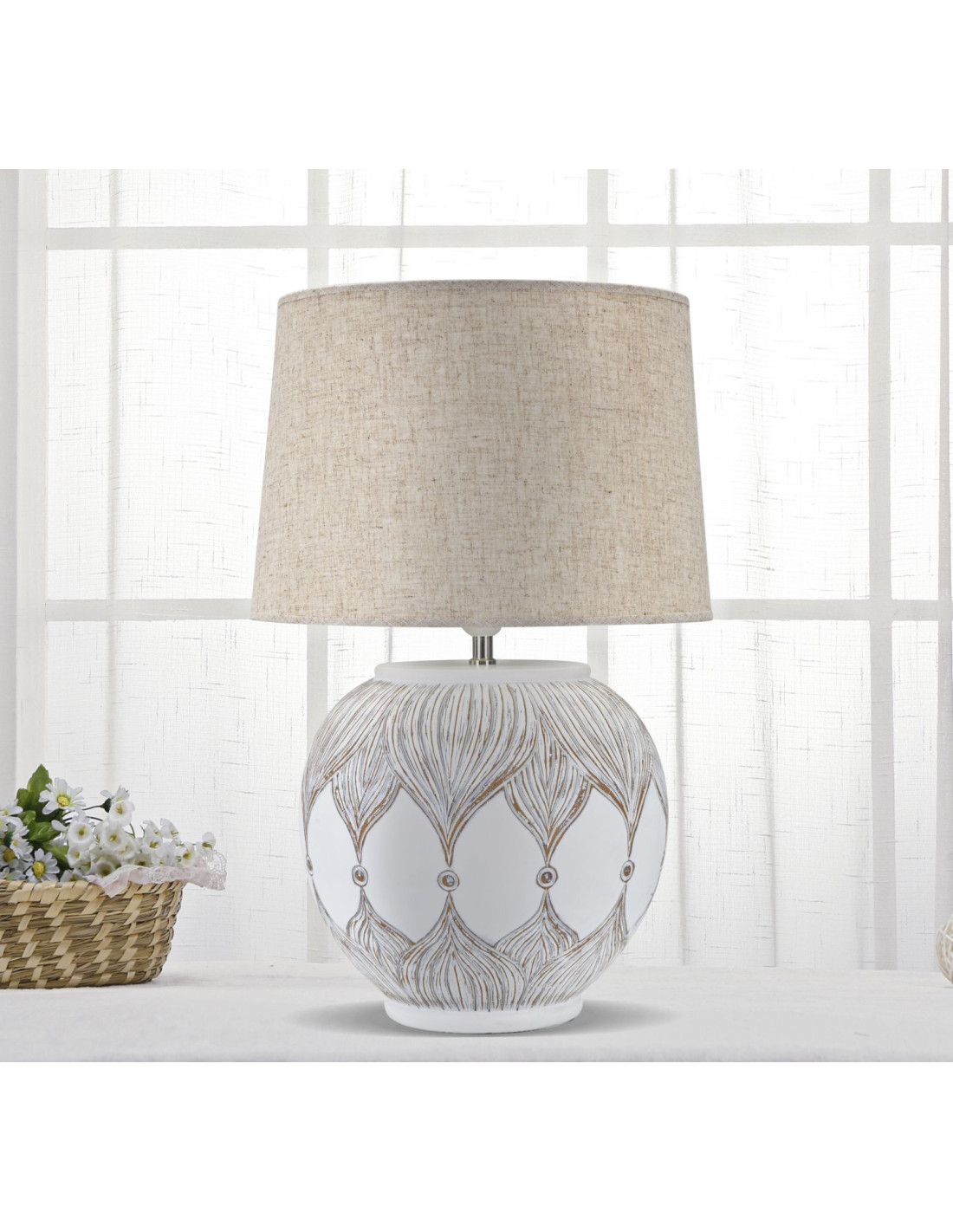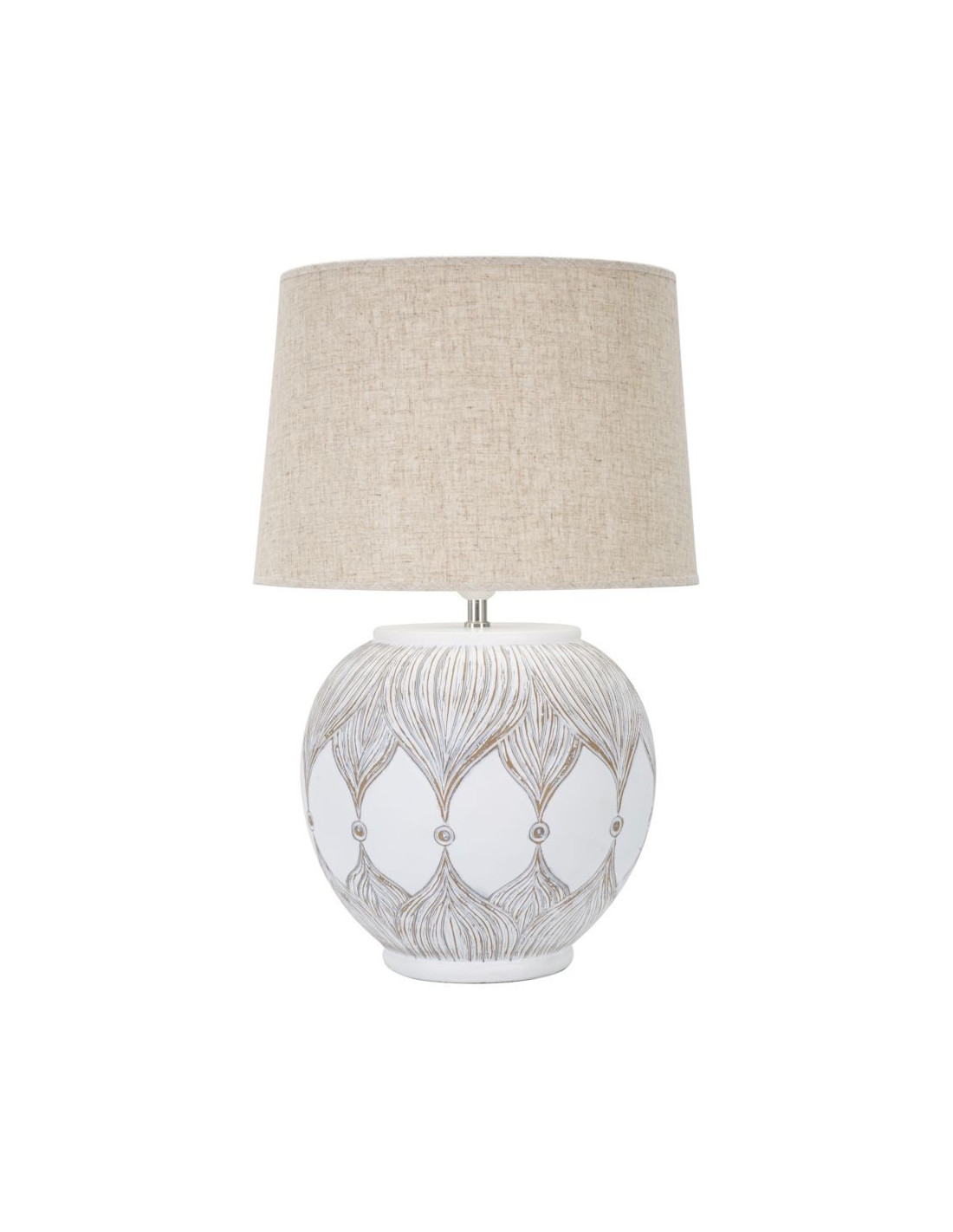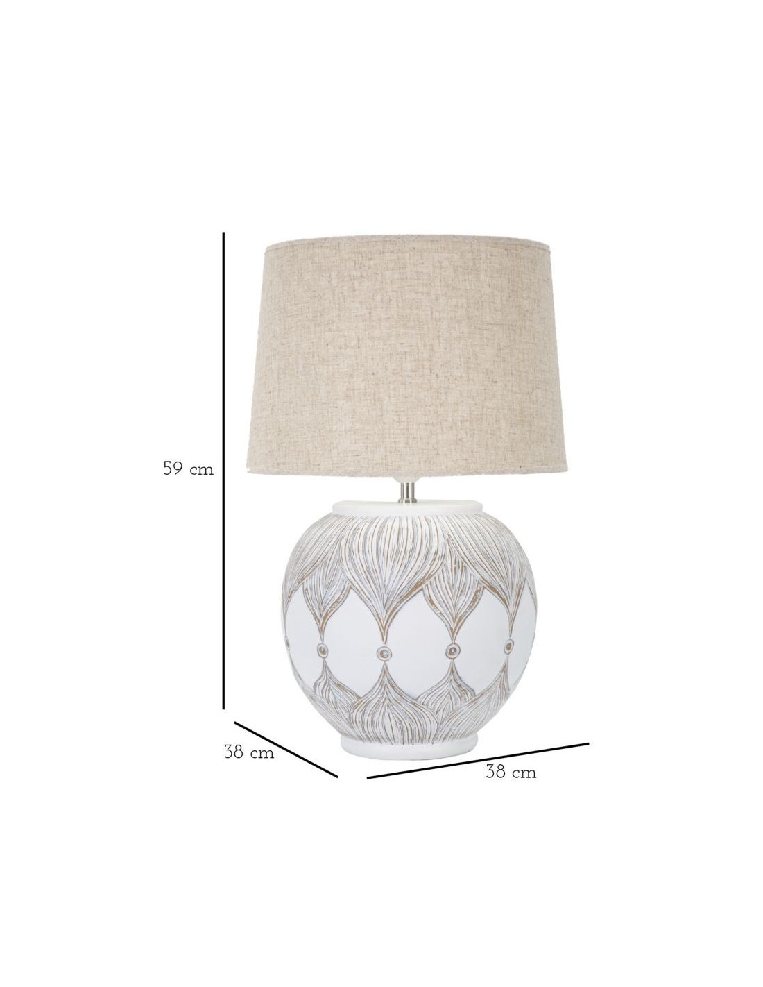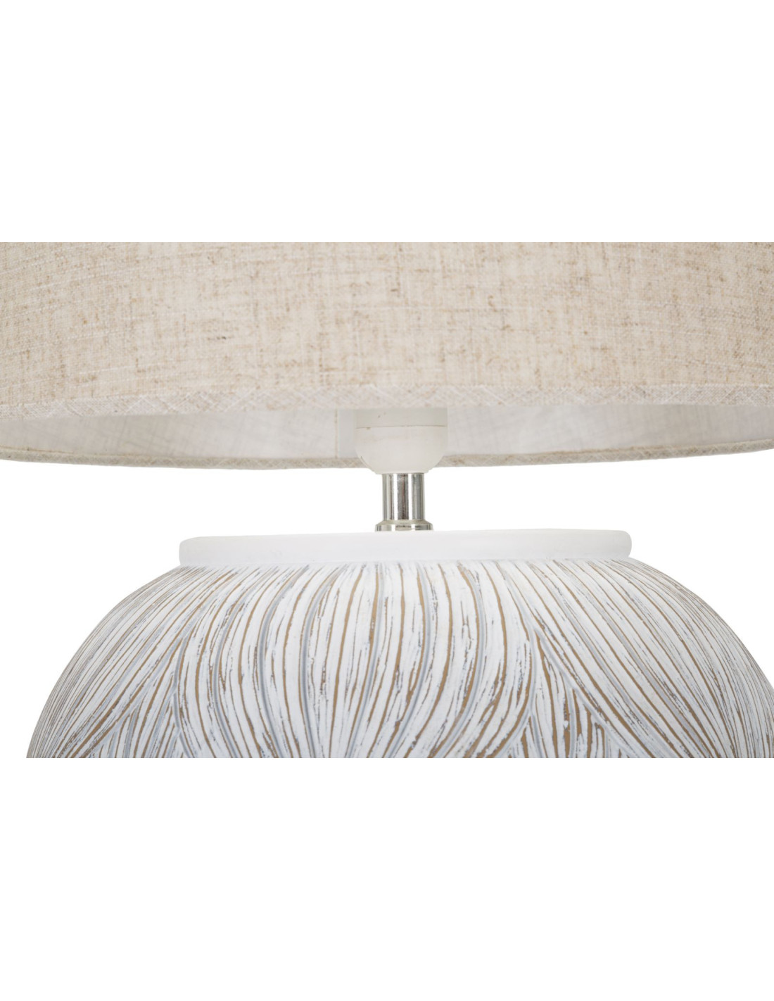 Grande Lampe à poser design art déco Résine Blanc Marron clair Tissu Beige Atene H 59 cm