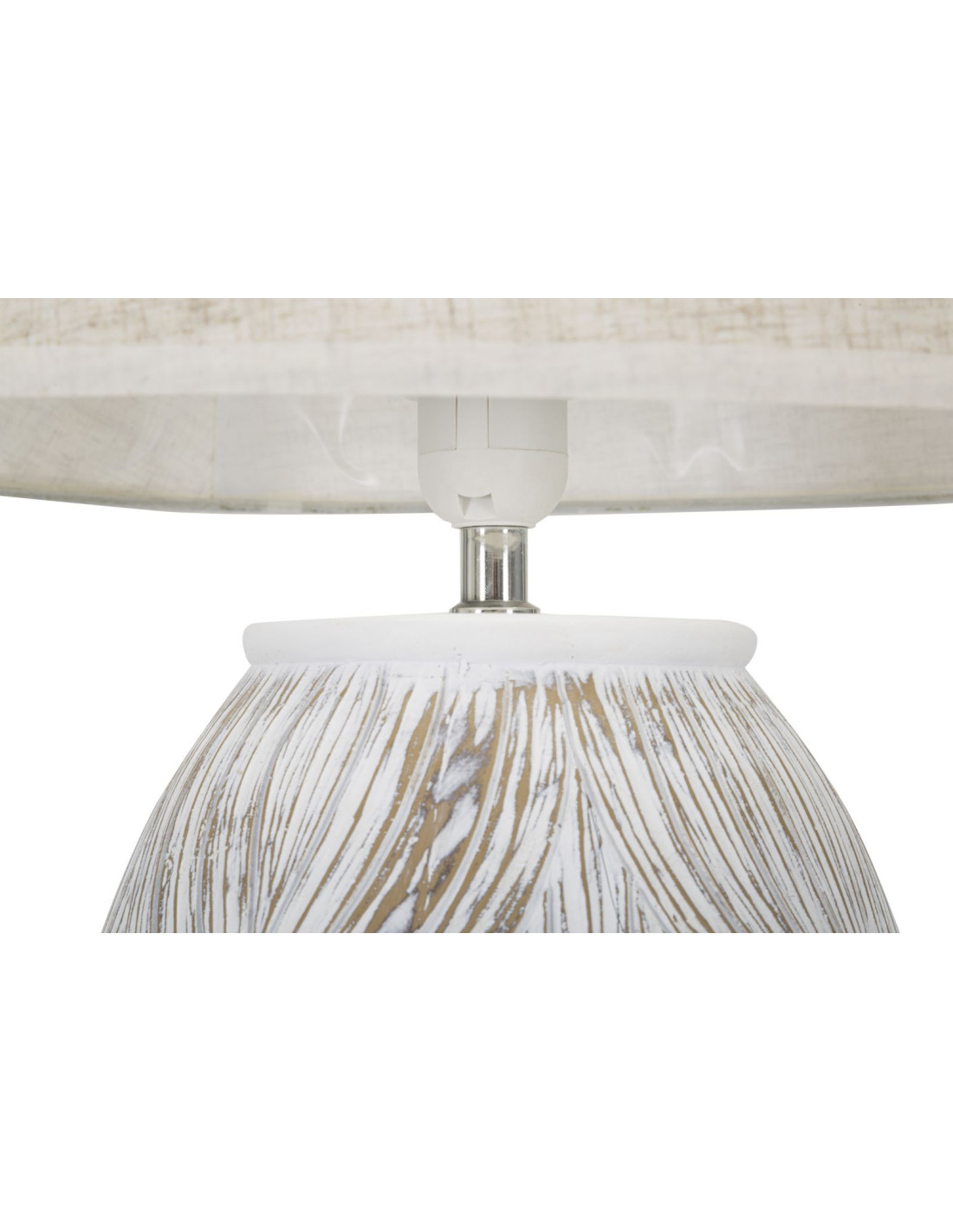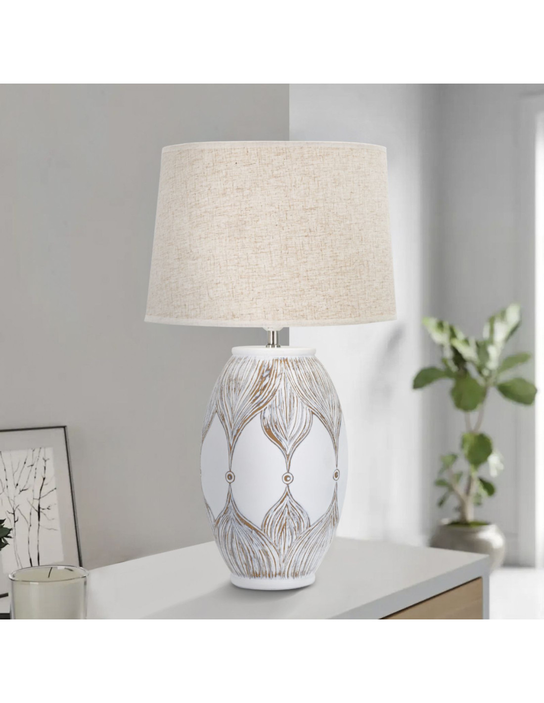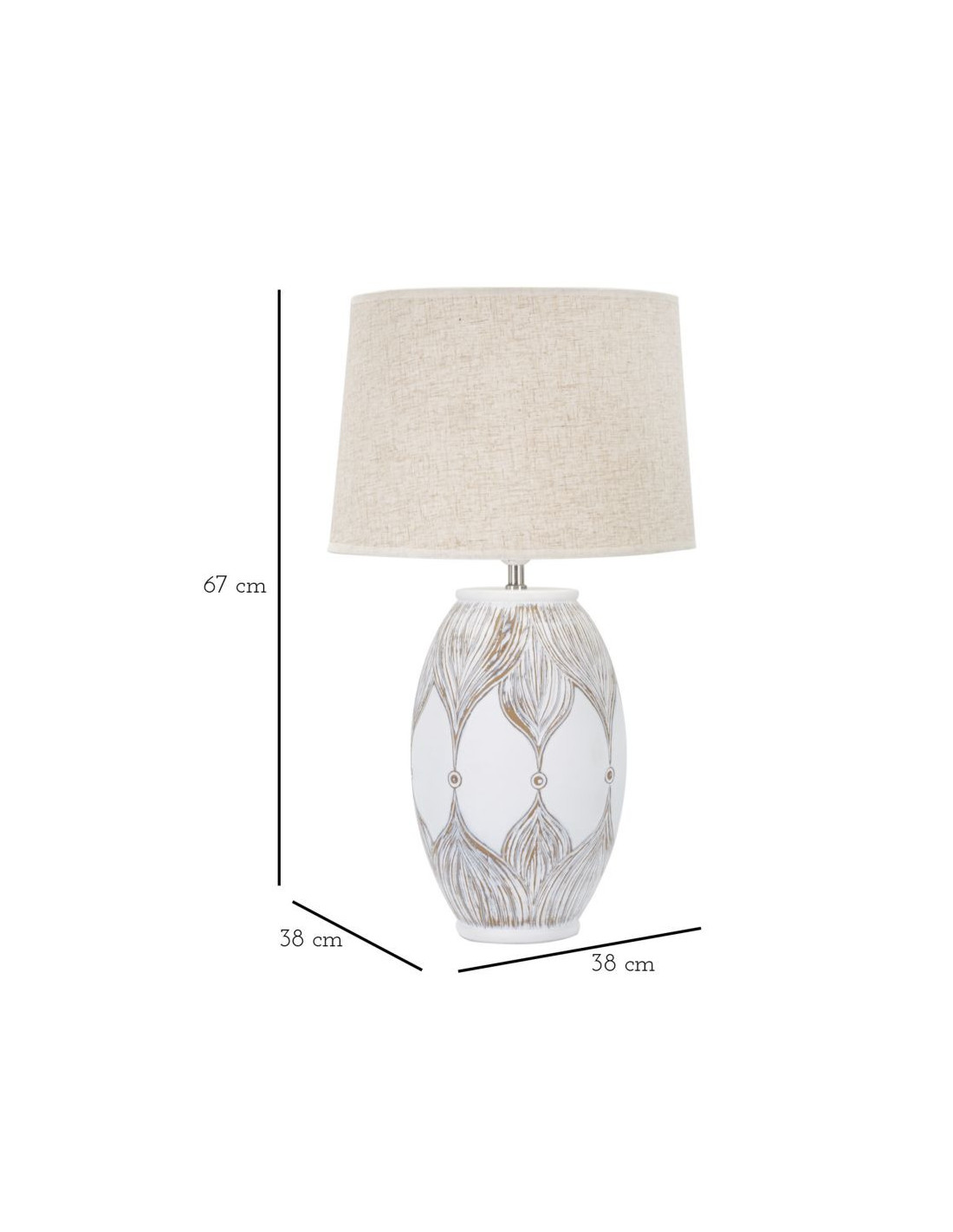 Grande Lampe à poser design art déco Résine Blanc Marron clair Tissu Beige Atene H 67 cm
