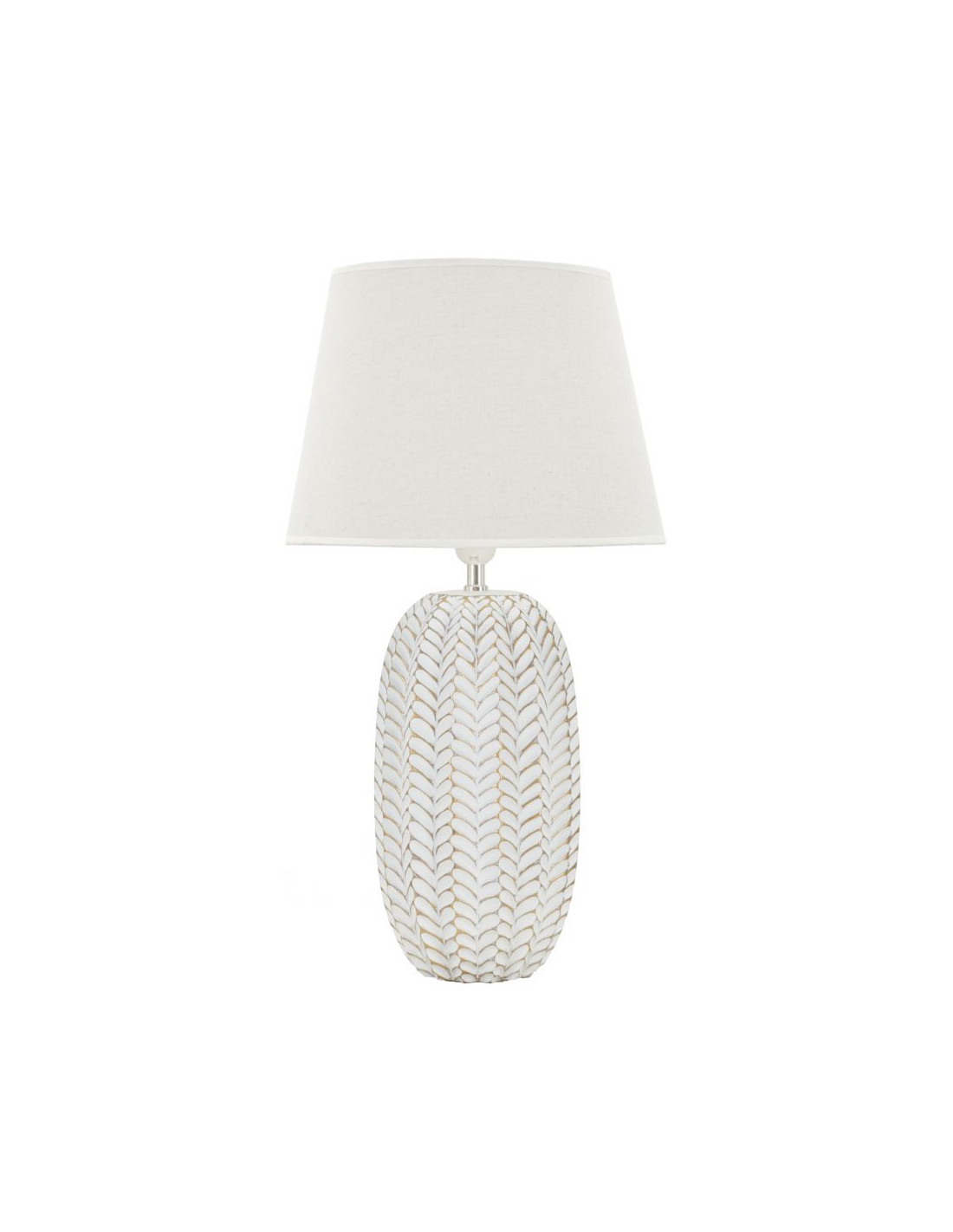 Grande Lampe à poser design bohème Résine Motif feuilles Tissu Blanc Leaf