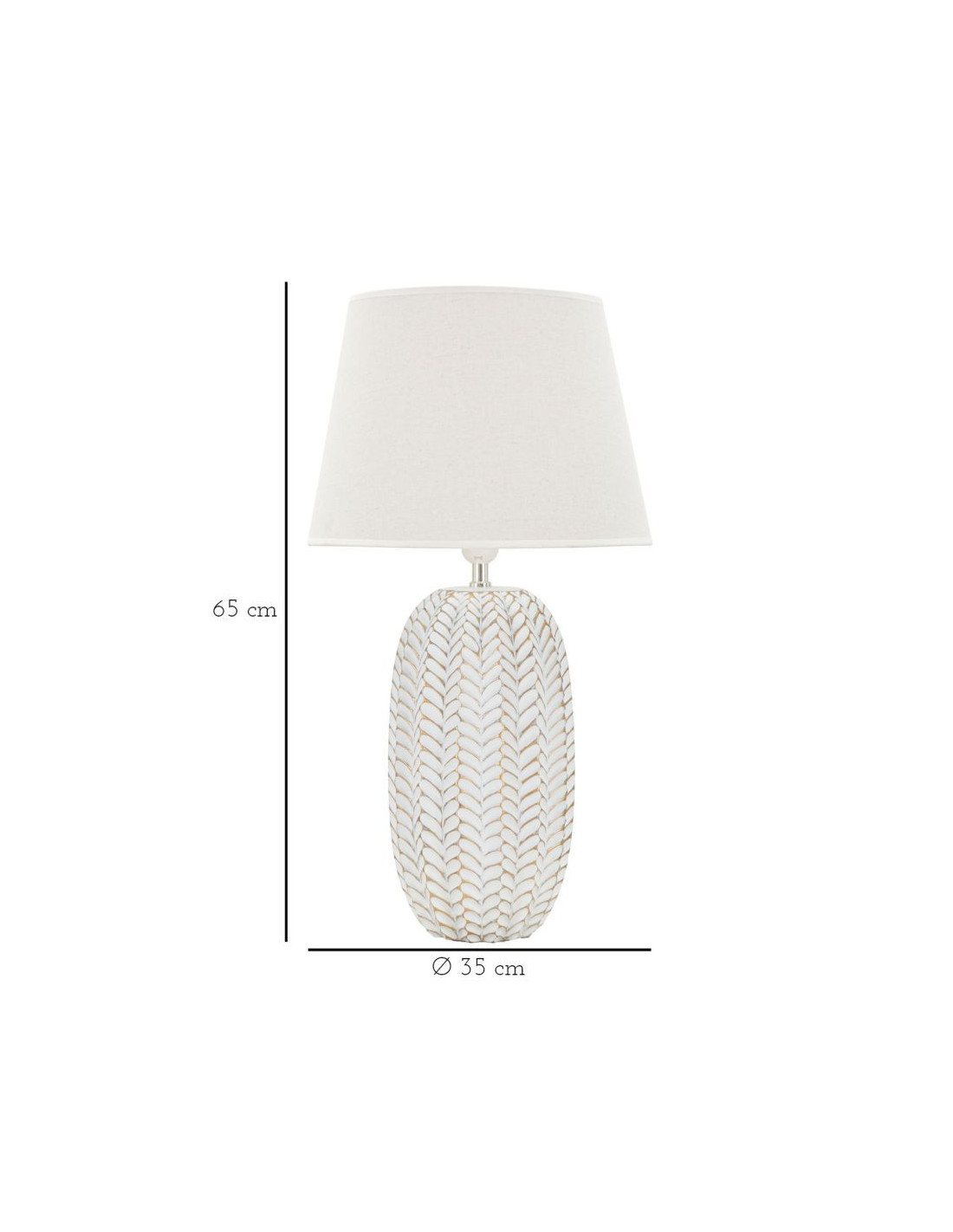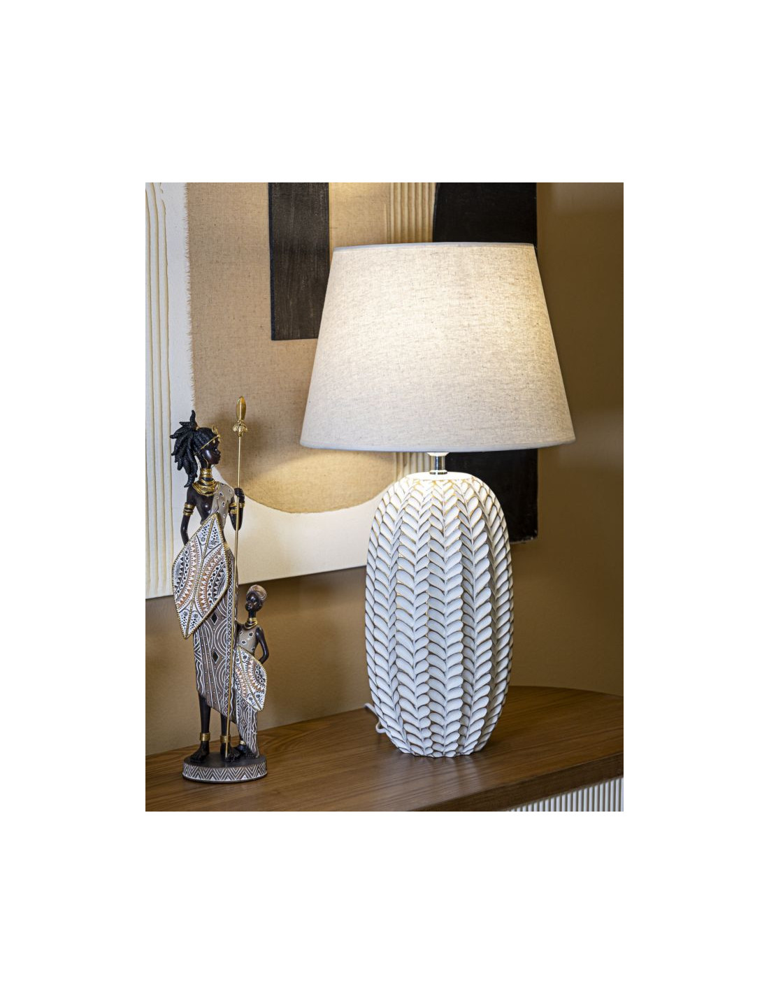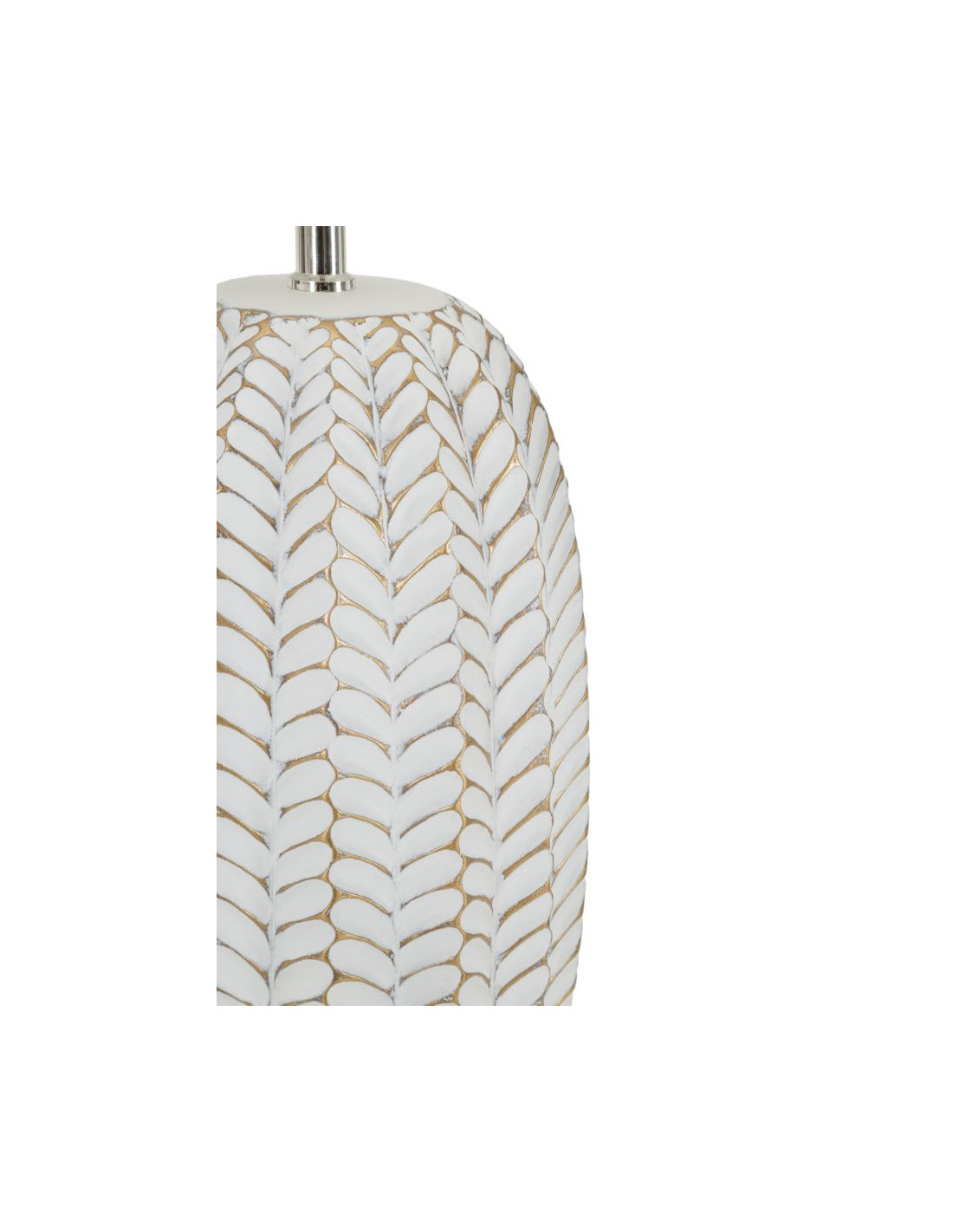 Grande Lampe à poser design bohème Résine Motif feuilles Tissu Blanc Leaf H 65 cm