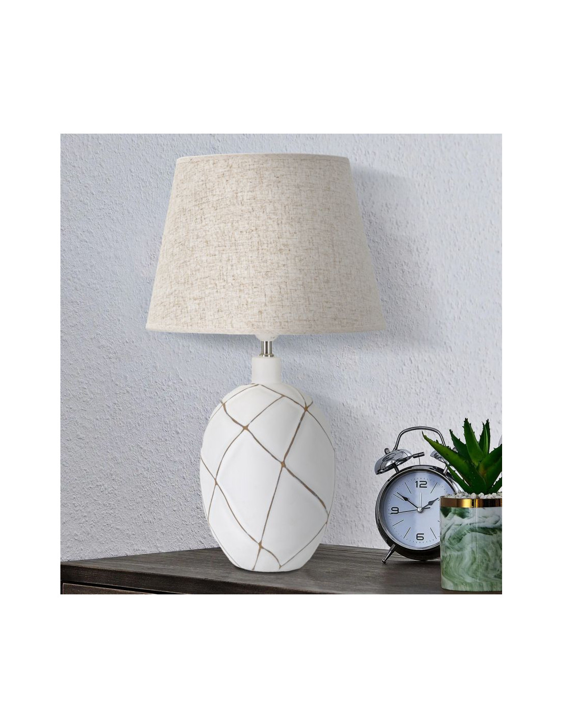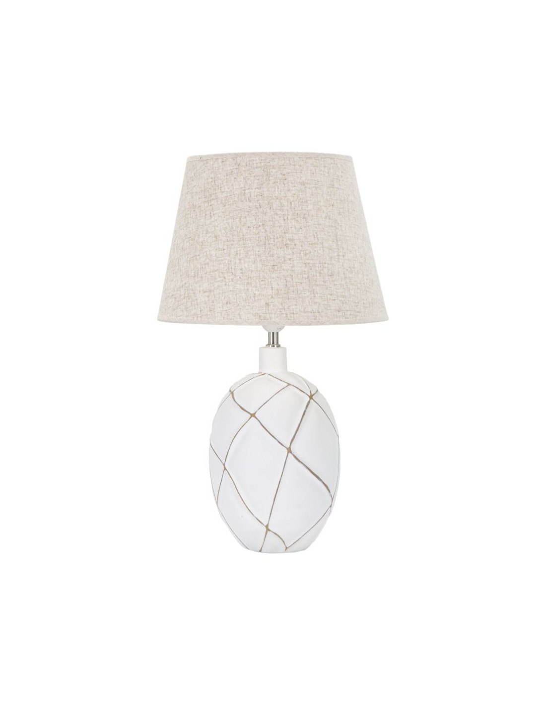 Grande Lampe à poser design contemporain Résine Blanc Motif lignes Tissu Beige Lines