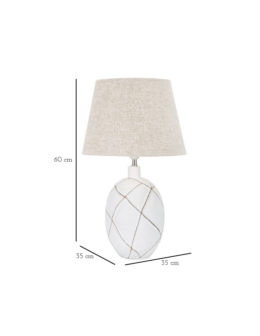 Grande Lampe à poser design contemporain Résine Blanc Motif lignes Tissu Beige Lines H 60 cm