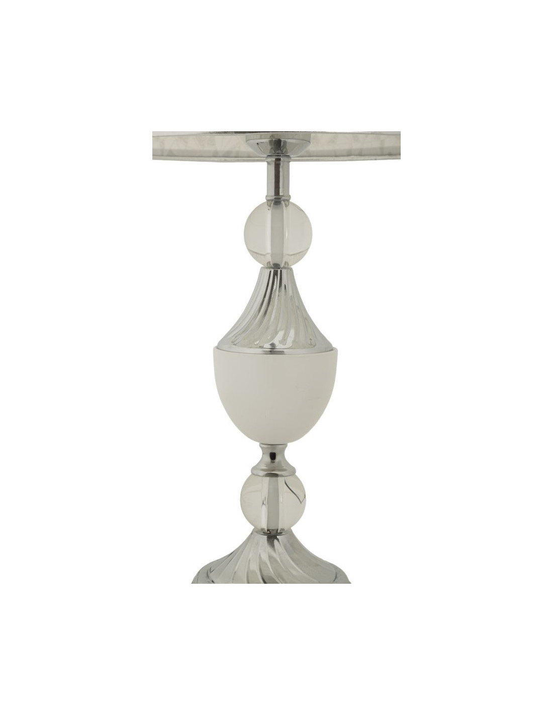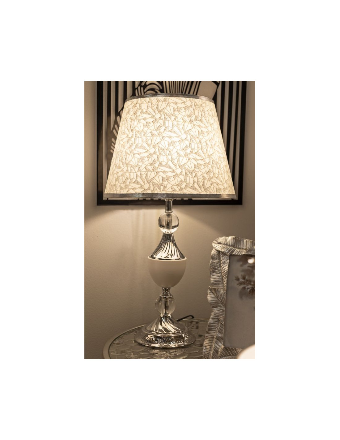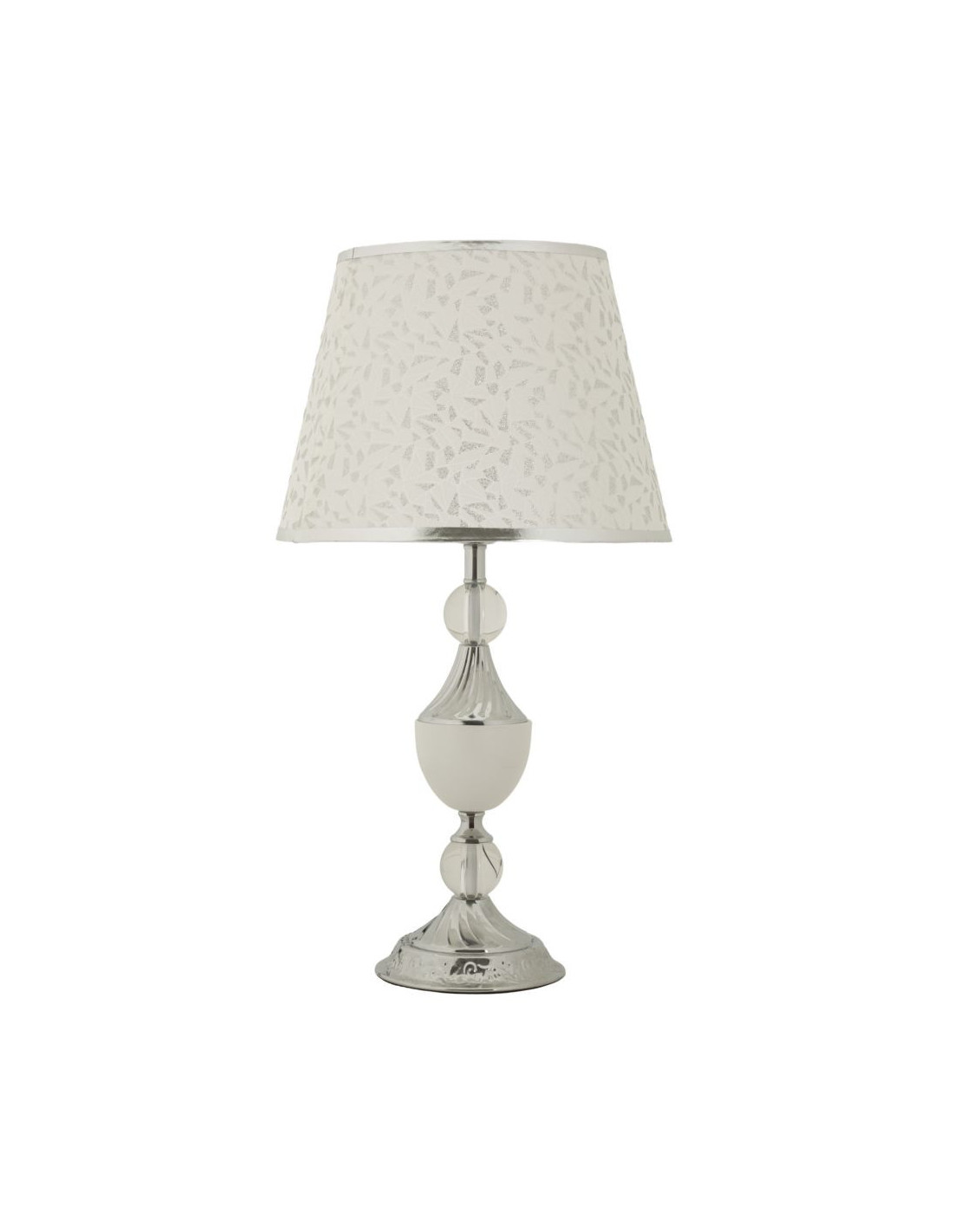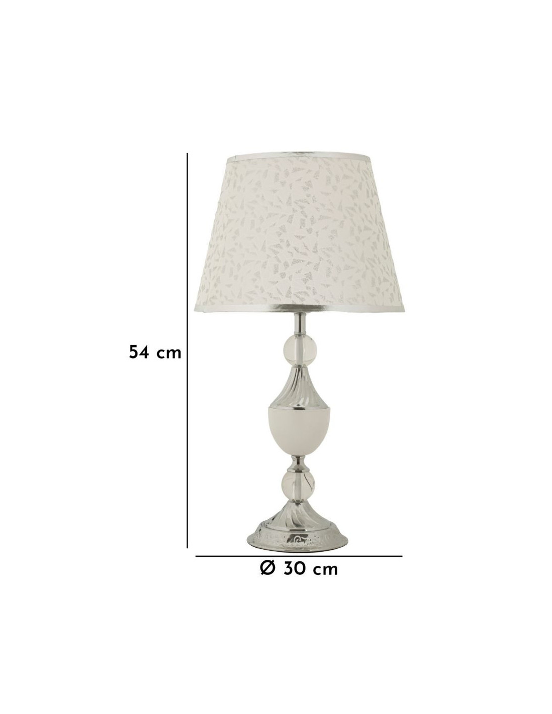 Grande Lampe à poser hôtel chic Hauteur 54 cm Métal Argenté Tissu Blanc Kody