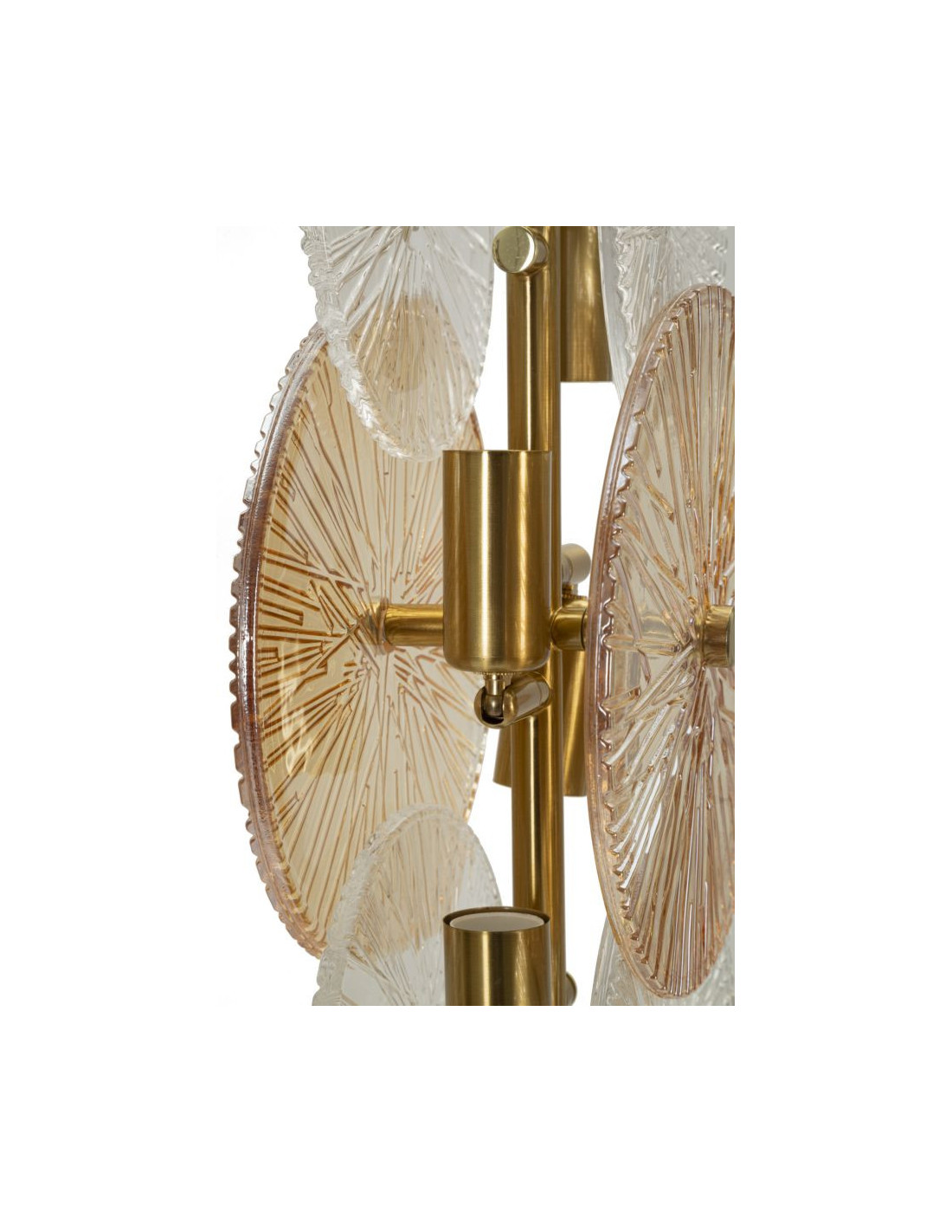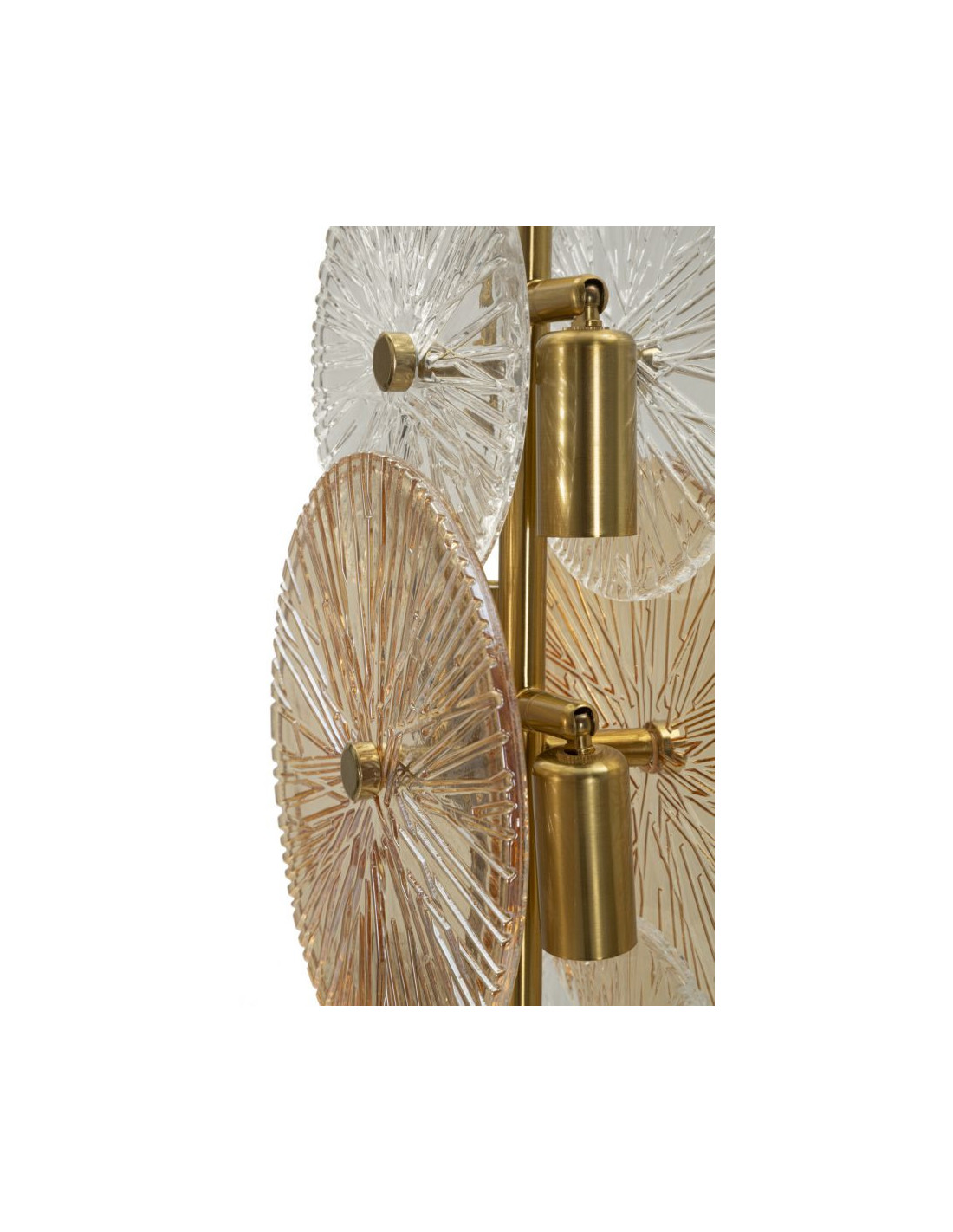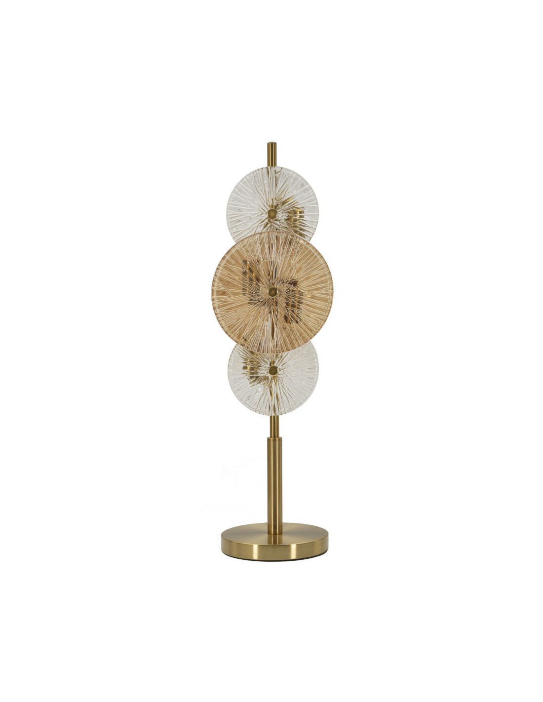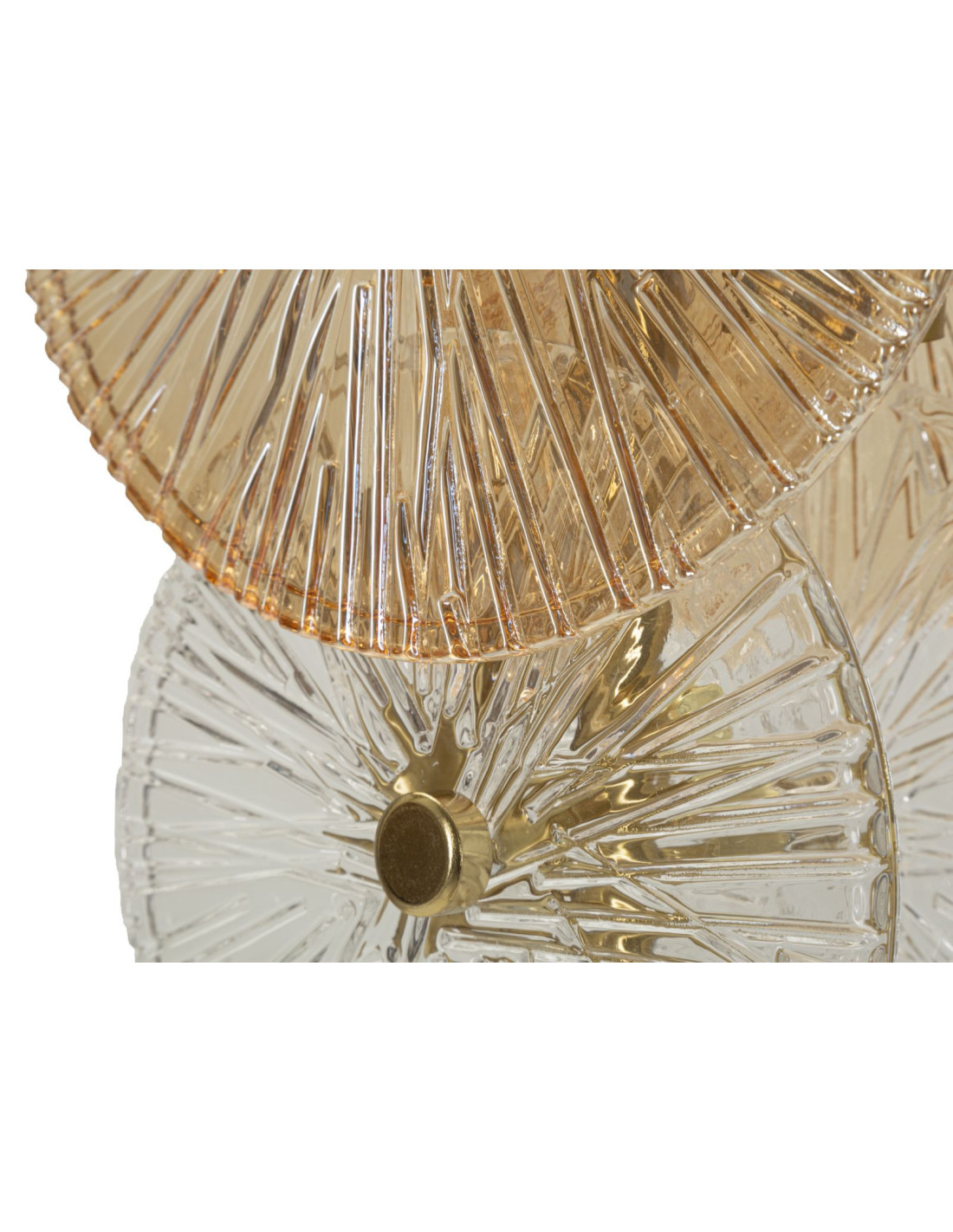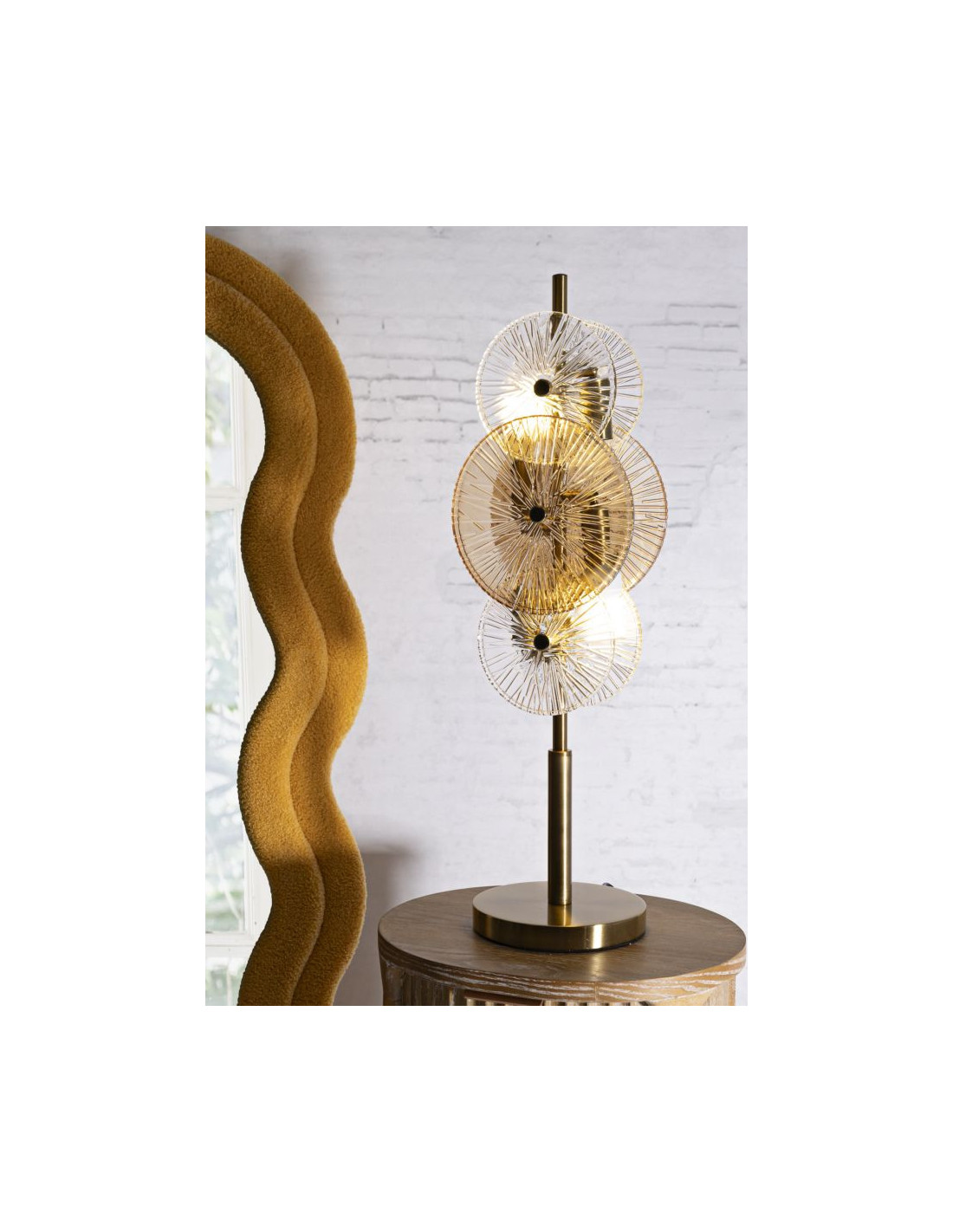 Grande Lampe à poser japonaise éventails Hauteur 66 cm Verre Blanc Ambré Métal Doré Osaka