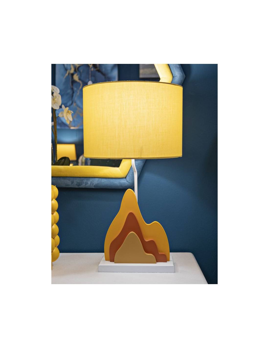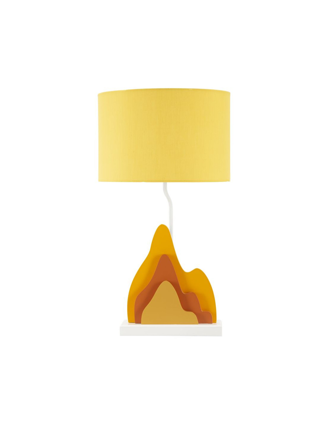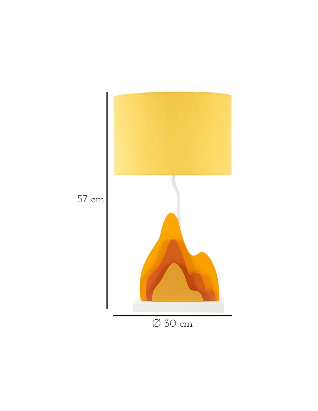 Grande Lampe à poser moderne abstraite Hauteur 57 cm Bois MDF Orange Ocre Tissu Jaune Color