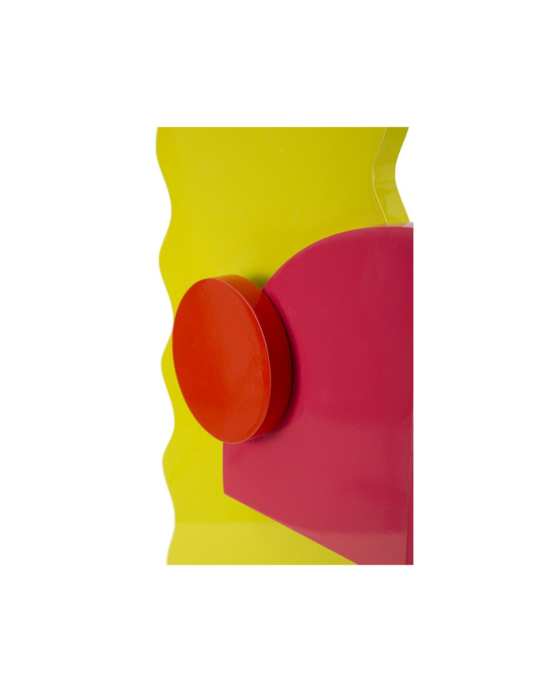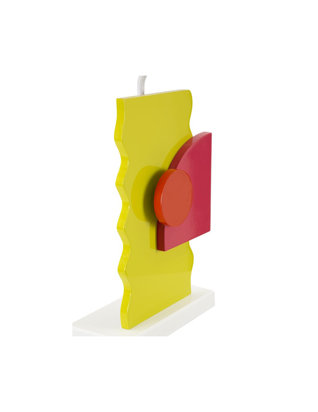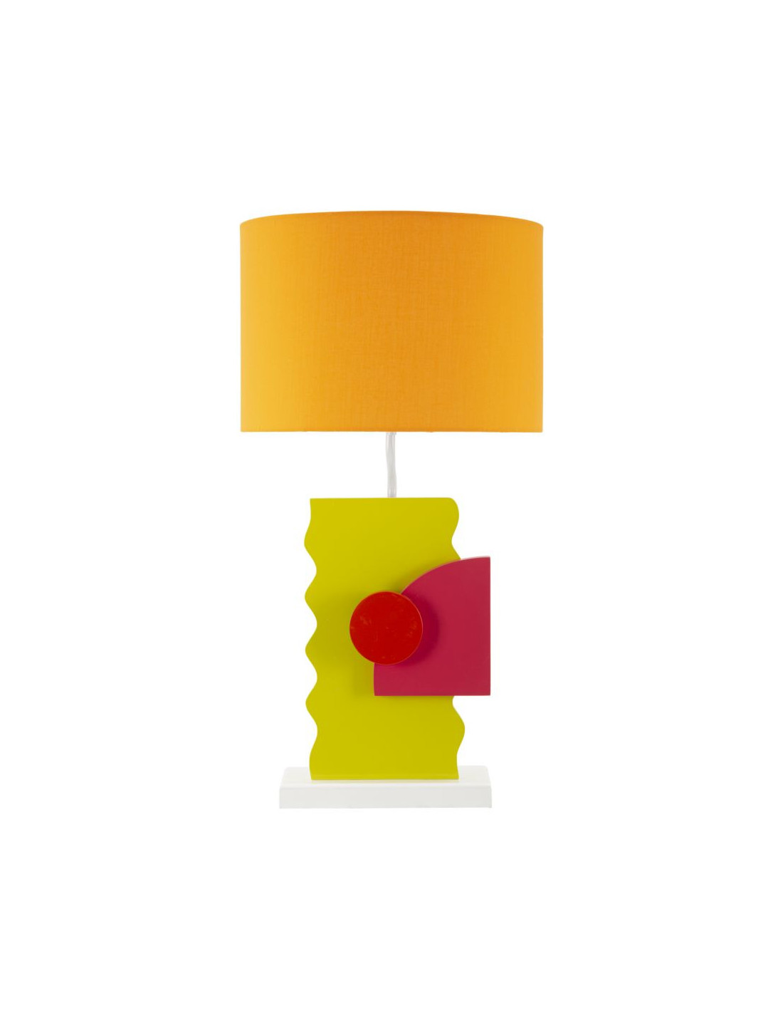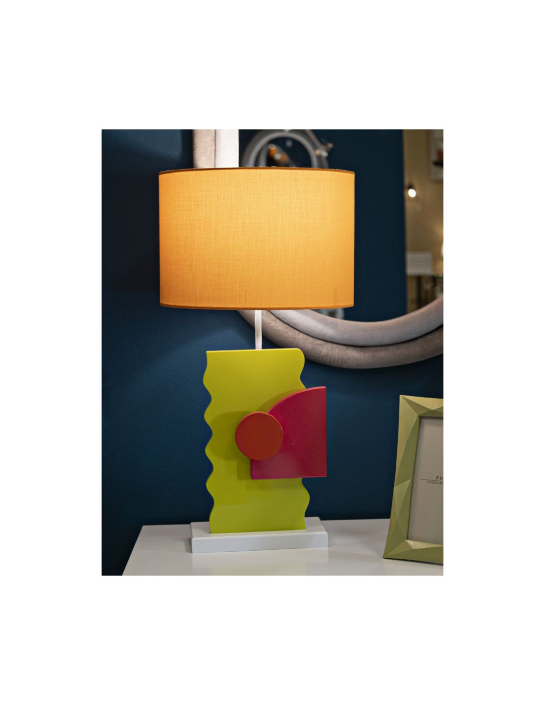Grande Lampe à poser moderne abstraite Hauteur 60 cm Bois MDF Vert Rose Tissu Orange Color