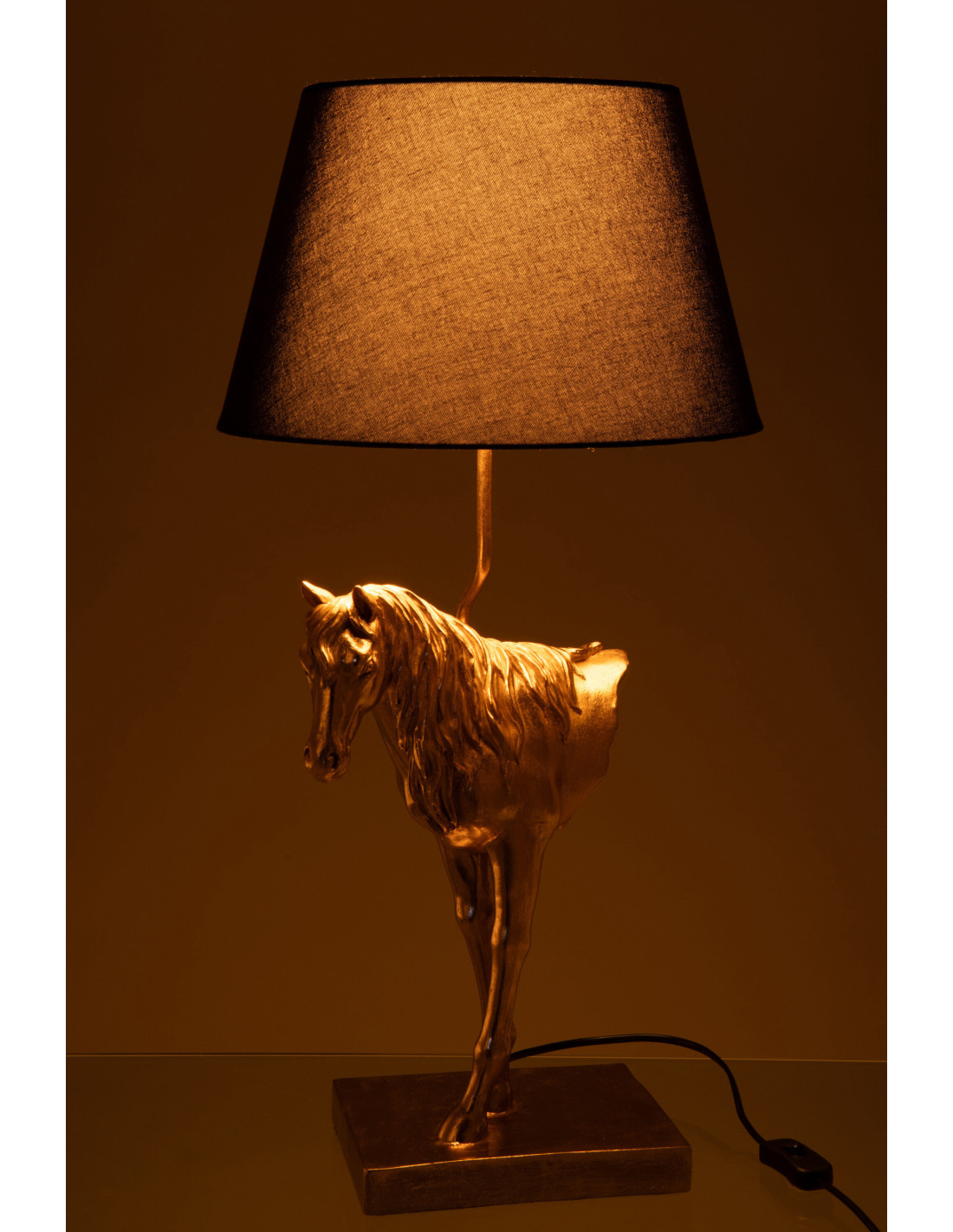 Grande Lampe à poser moderne Cheval Hauteur 70 cm en Résine Doré Tissu Noir Horson - 1